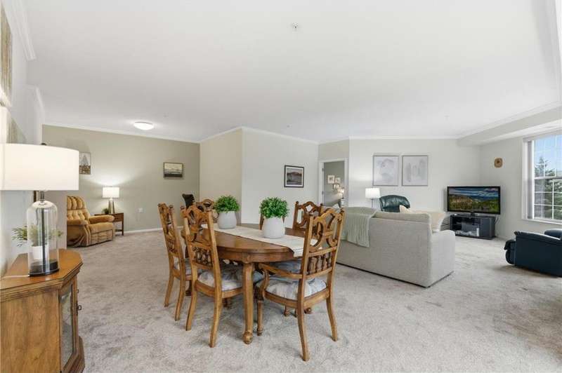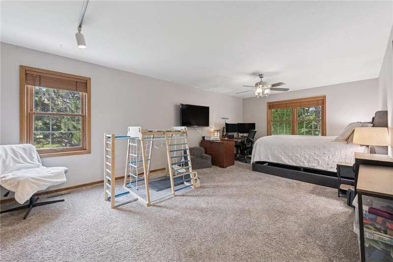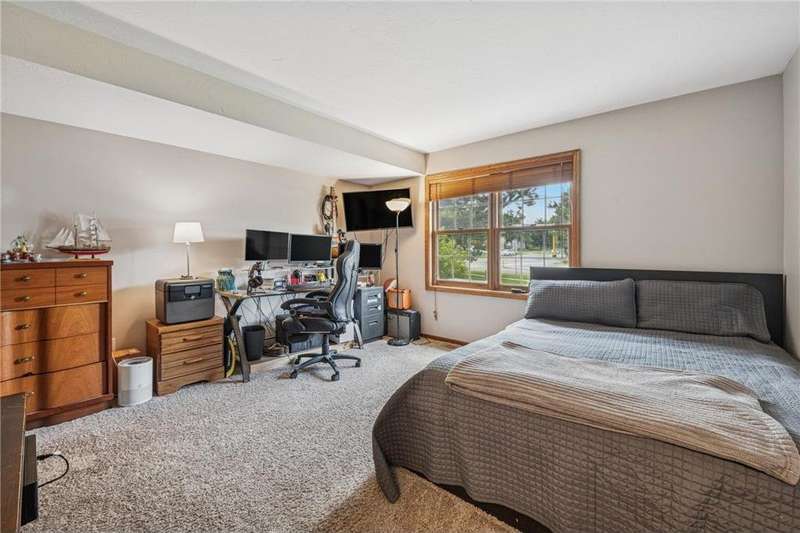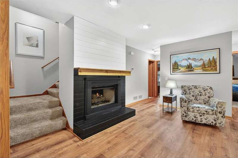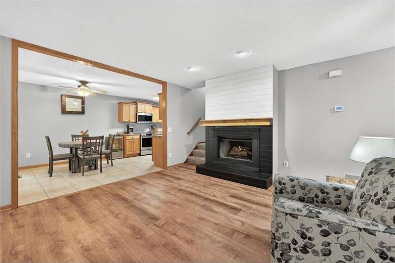 Spacious End Unit Townhome with Main-Level Living & Bonus upstairs Suite! Beautifully maintained home featuring an open-concept Great Room with cozy fireplace and new LVT flooring. The updated Kitchen includes an informal Dining area and flows seamlessly into the main living space—perfect for entertaining or relaxing. The main level also offers two Bedrooms, including one with French doors, ideal as a home office or guest room, full Bathroom, and separate Laundry Room for added convenience. Upstairs, a private Primary Suite awaits with a spacious Bedroom, a stunning Bath, and abundant storage—perfect for guests or your personal retreat. Bright natural light fills the home, and the generous yard space offers room to relax or play. Located in demand neighborhood close to retail, grocery stores, parks, and Crystal Lake with its beach and picnic areas. This home blends comfort and convenience in a truly special setting.