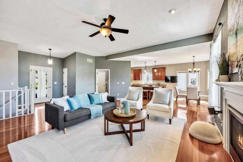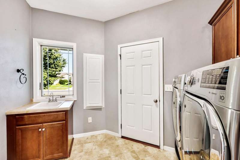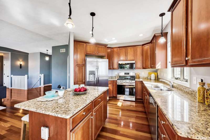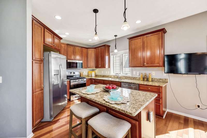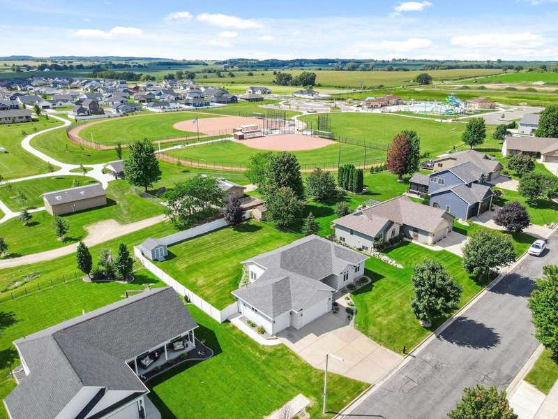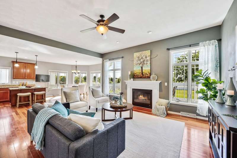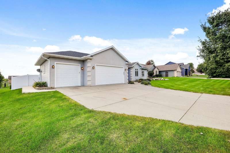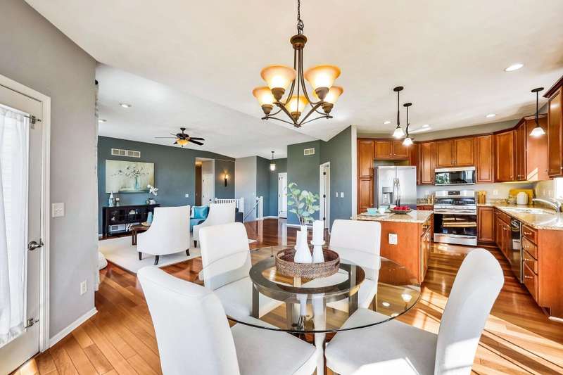 Beautifully maintained 3-bdrm, 3 full bath ranch. Every detail has been thoughtfully considered, incl a new roof, siding, garage doors, & select windows for peace of mind & long-term value. Spacious 3-car heated garage w/finished flooring. Inside, you’ll be welcomed by Brazilian cherry hardwood floors, soaring 9-ft ceilings, & an abundance of natural light throughout. The kitchen boasts maple cabinetry, granite countertops, & stainless steel appliances—perfect for cooking, gathering & entertaining. The fully finished LL offers a generous rec rm, 3 versatile bonus spaces & a luxurious full bath w/Kohler soaking tub. 1st-floor laundry & a fenced backyard that backs up to a city park with amenities such as the community pool, waterpark, playground, and sports fields.