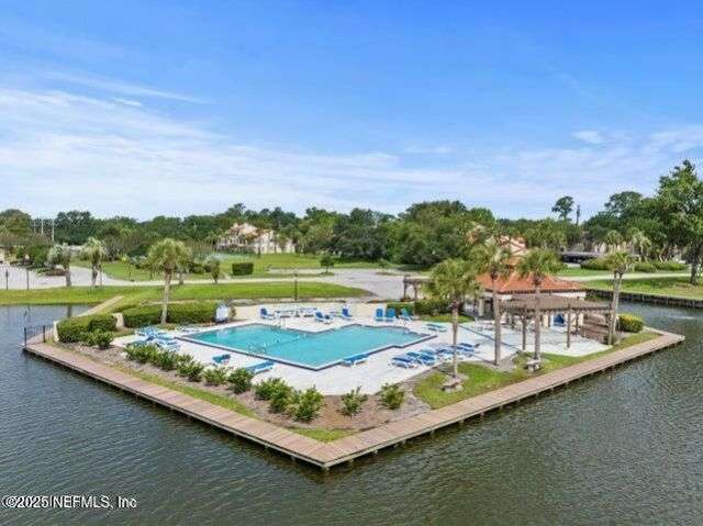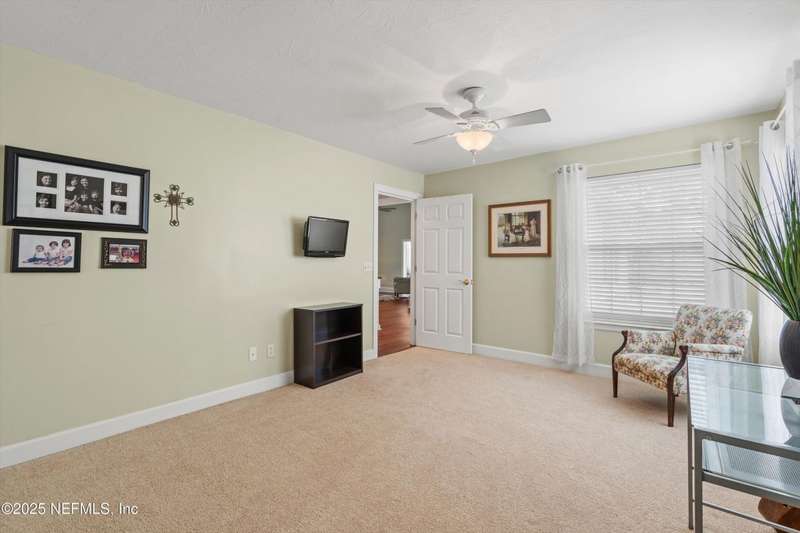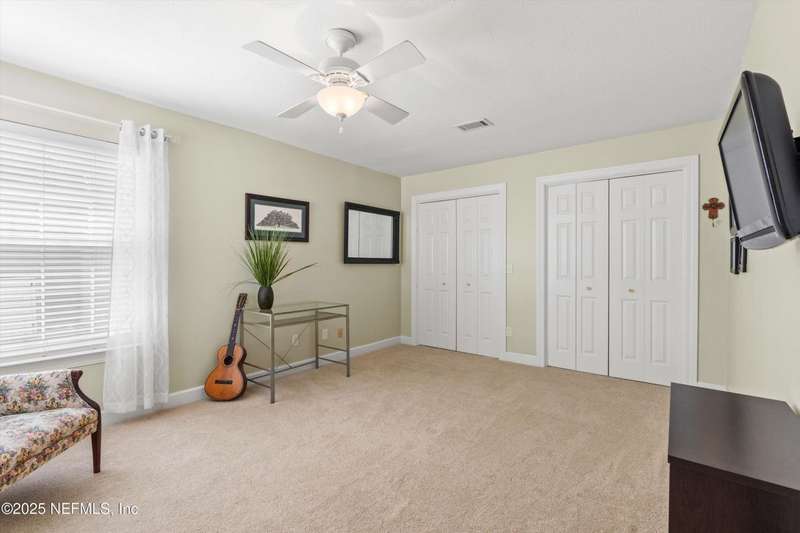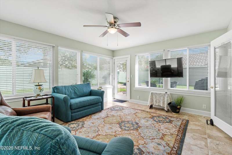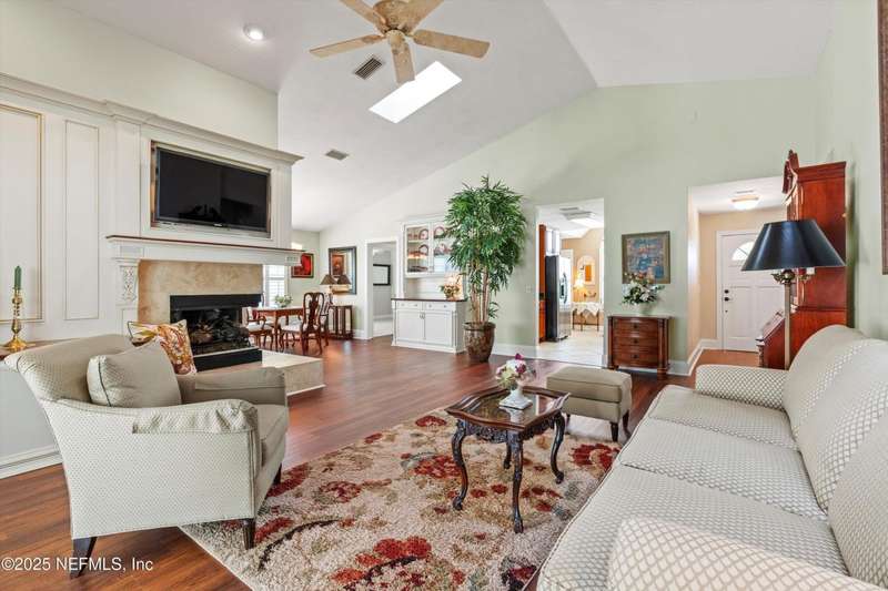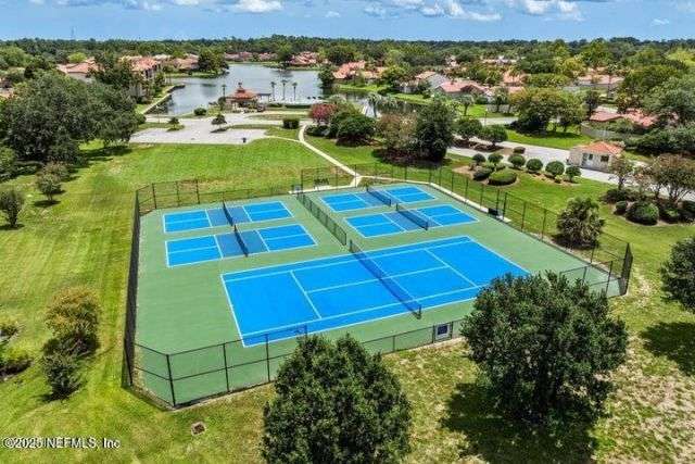 Welcome Home to the desirable gated community of Villages of San Jose. This elegant home offers 2021 sq ft (tax record sq ft of 1745 is incorrect) and many upgrades, freshly painted exterior, beautiful laminate wood looking flooring in foyer, living, dining rm, and flex rm. Kitchen w/cherry-stained cabinets, black granite counter tops, stainless appliances, plantation shutters and light filled breakfast nook. Master ensuite with double bowl vanity, garden tub and spacious shower. Living/dining rm w/gas fireplace and beautiful built-ins, French doors opening to sunrm overlooking walled rear yard w/ paver patio. Newer windows throughout, 2-car side entry garage, quiet Mizner Ct. park just across the street. Community amenities include GUARDED gated entrance, lake side swimming pool, tennis and pickleball courts. 4-pt/wind mit inspection and Citizens insurance quote available for review in documents. Seller offering a 2-10 Home Warranty Service Agreement for buyers' piece of min