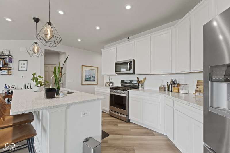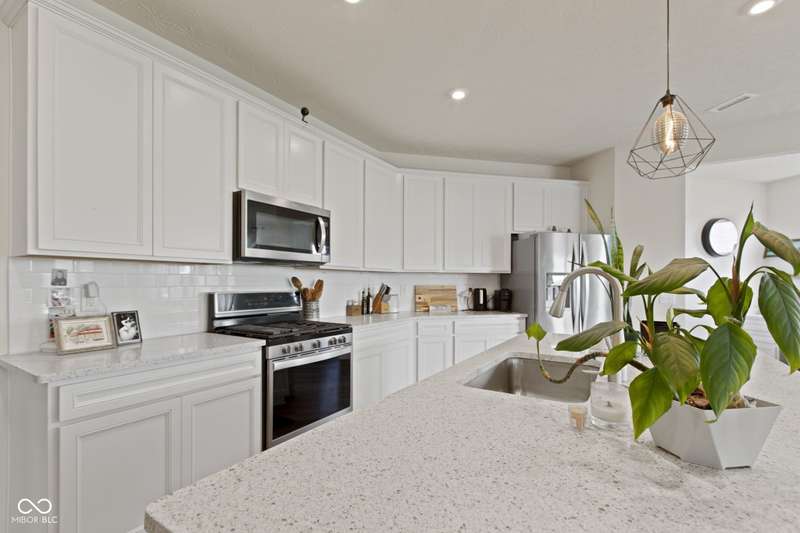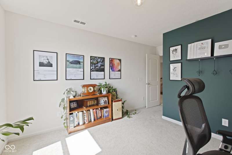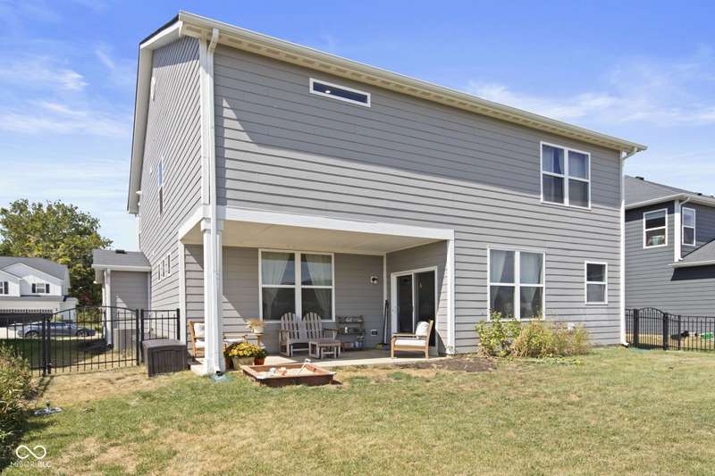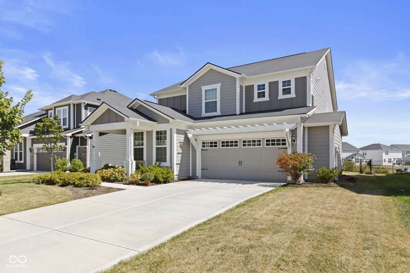 Welcome to this stunning, move in ready home in the desirable Hunter's Run neighborhood of Fishers! This move in ready modern two-story home offers an exceptional open-concept floor plan, perfect for both daily living and entertaining. Step inside and be greeted by a bright and airy main level featuring a spacious great room that flows seamlessly into the gourmet kitchen. The kitchen is a chef's dream, complete with stainless steel appliances, a large center island, and ample cabinet space. A dedicated main-floor office provides the ideal quiet space for remote work or study. Upstairs, you'll find a luxurious primary suite with a ensuite bathroom and two walk-in closets. Three additional generously sized bedrooms and a second full bathroom ensure plenty of space for family and guests. The true highlight of this home is the incredible outdoor space. The beautifully landscaped yard is a private oasis, perfect for summer barbecues and relaxing evenings. Enjoy the peaceful surroundings from the comfort of your waterfront patio. Located in a family-friendly community, Hunter's Run offers endless amenities, including a pool, clubhouse, tennis courts, and playground. With its prime Fishers location, you're just minutes away from top-rated schools, parks, shopping, dining, and easy access to major highways. Don't wait on your home to be built, but move in today!