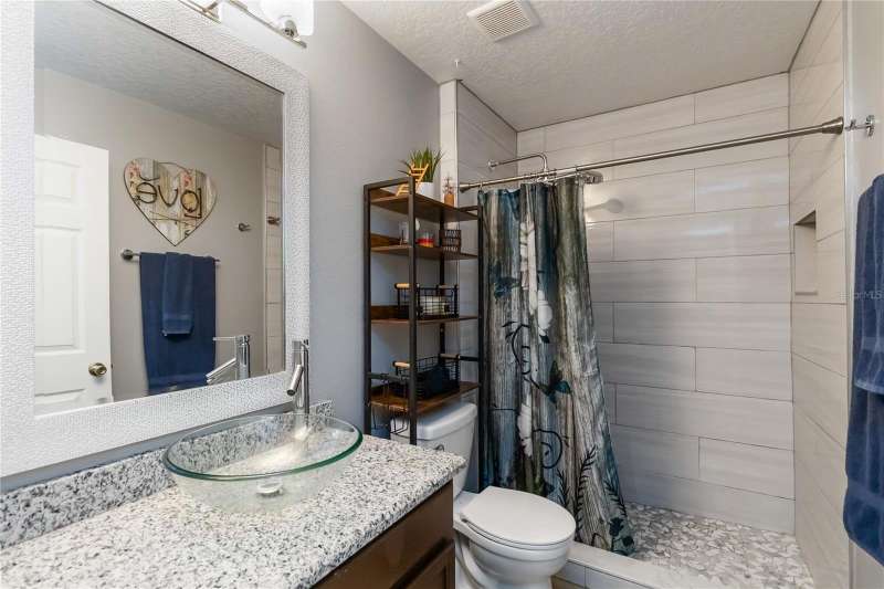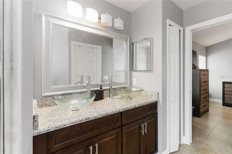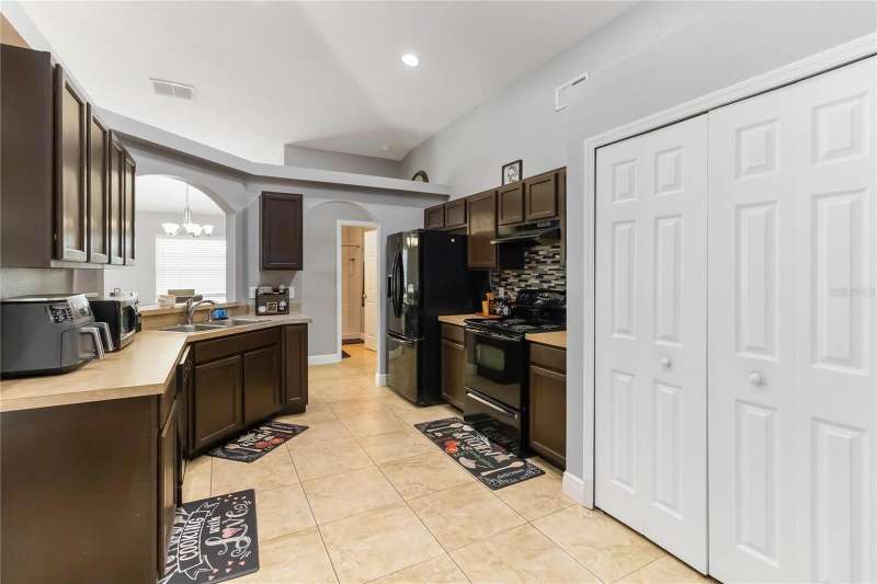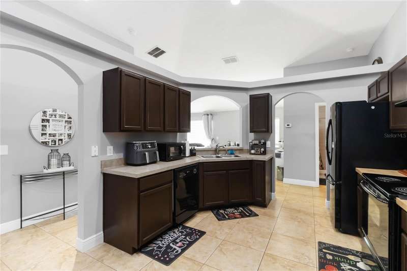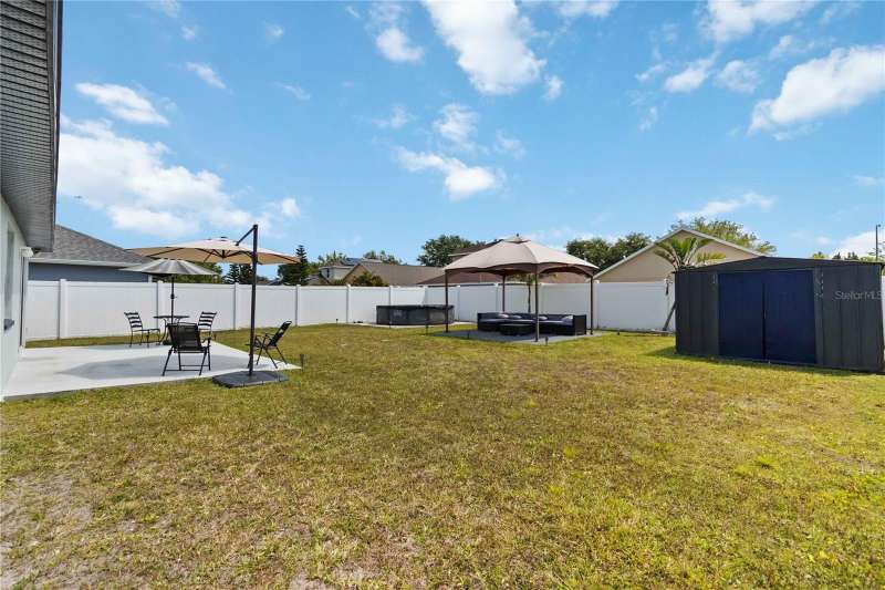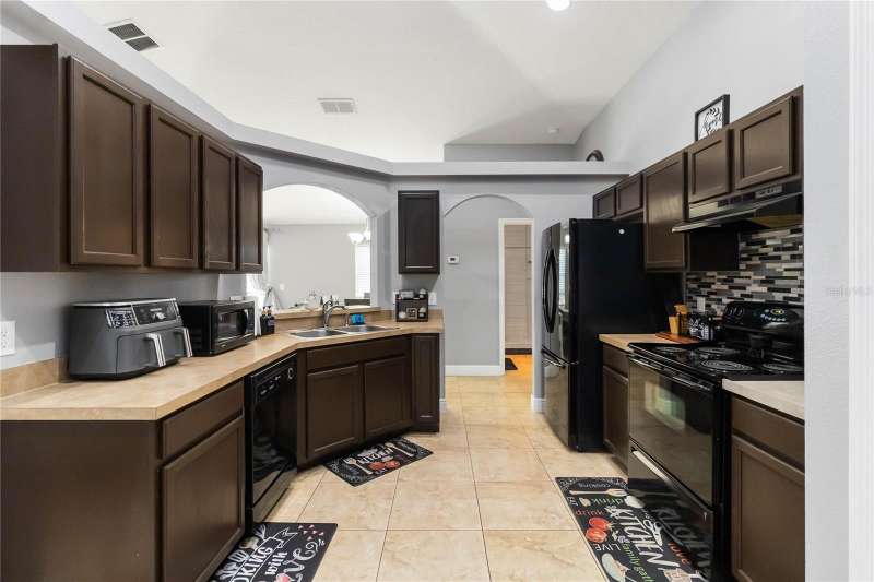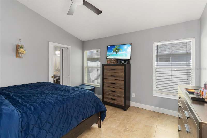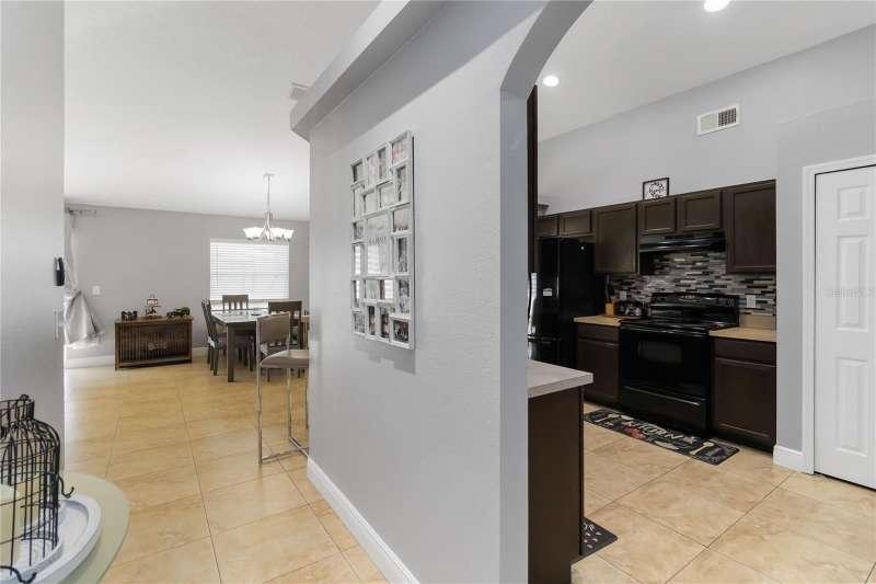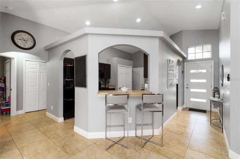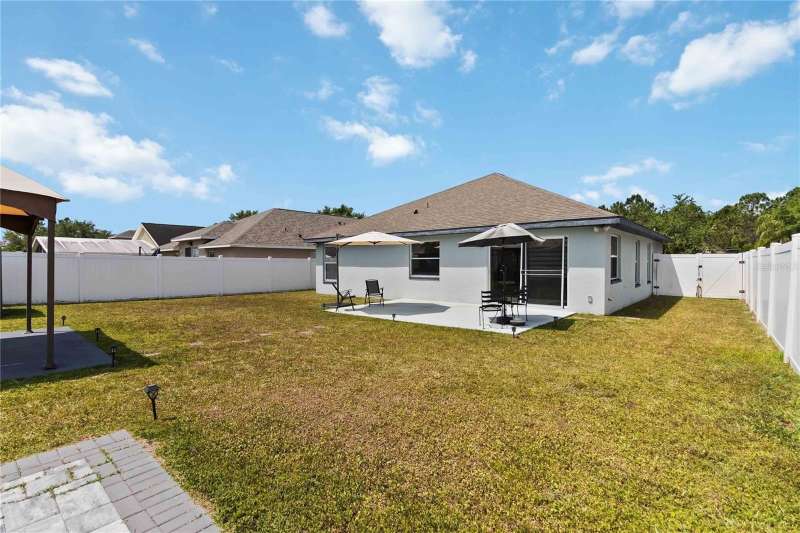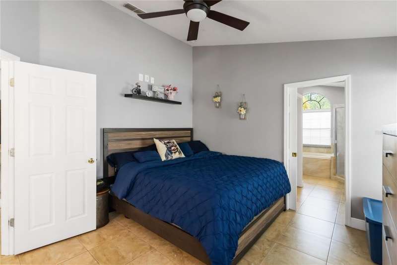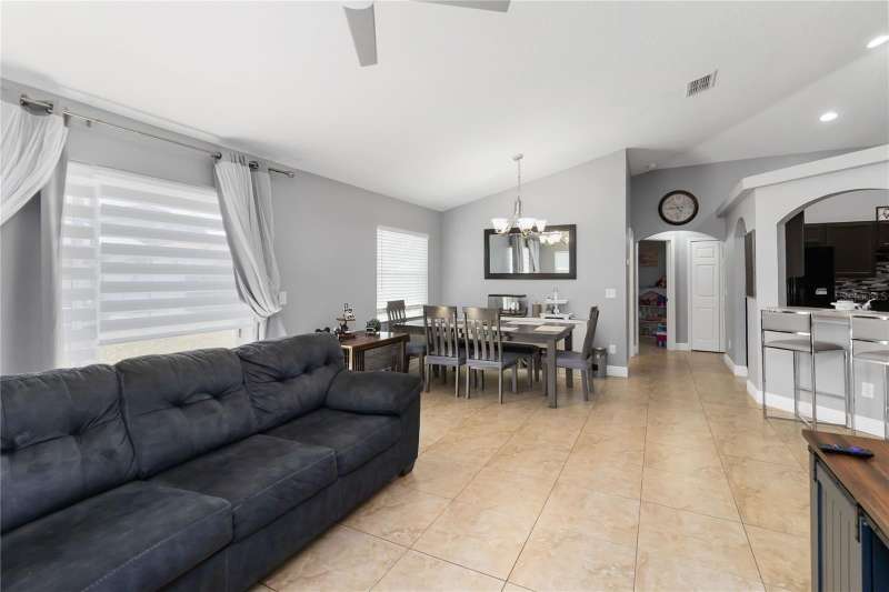 PRICE REDUCTION! Welcome Home! Step into this beautifully maintained 3-bedroom, 2-bath home with a dedicated home office and a serene outdoor oasis right outside your back door. Ideally located just minutes from Lake Nona, Medical City, the VA Hospital, and Boxi Park, this gem offers the perfect blend of comfort, convenience, and modern style. From the moment you walk in, you'll love the sleek tile flooring throughout, providing both durability and timeless elegance in every room. The spacious kitchen is ideal for holiday cooking and family gatherings, making it the heart of the home. The primary suite is your private retreat, complete with a thoughtfully designed en-suite bathroom featuring a separate tub and shower. The two additional bedrooms are located on the opposite side of the home for added privacy, and the guest bath has been fully upgraded for your visitors' comfort. Half of the garage has been converted into an efficient bonus space—perfect for a private office or guest suite. Step out back and you’ll find a large, fenced-in yard enclosed by modern vinyl fencing, creating a secure and private setting for summer get-togethers, entertaining, and plenty of room to store your BBQ grill or lawn equipment. Enjoy the added convenience of walking or biking to the community school and pool. Don't miss your chance to own this versatile and inviting home—schedule your private tour today! (Please note: Property is video monitored)