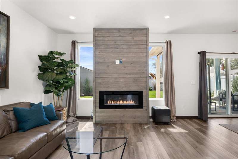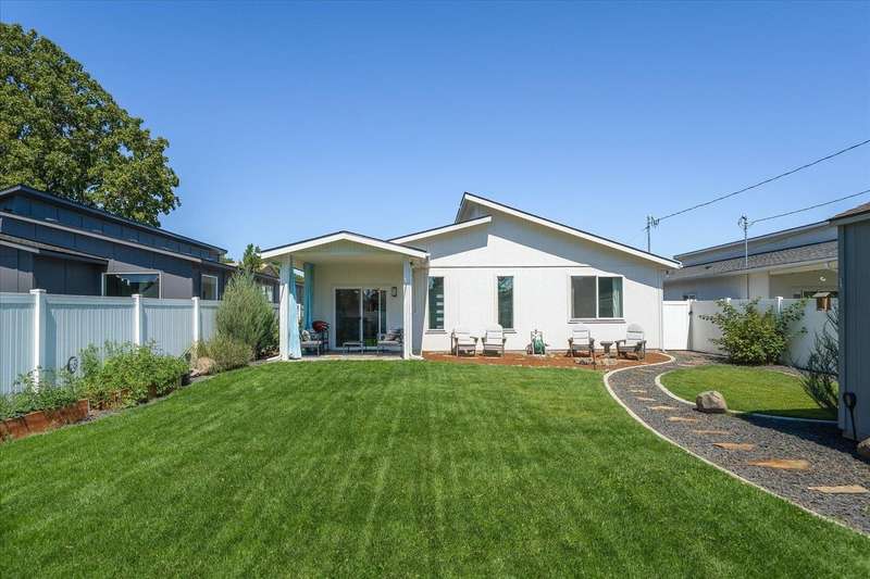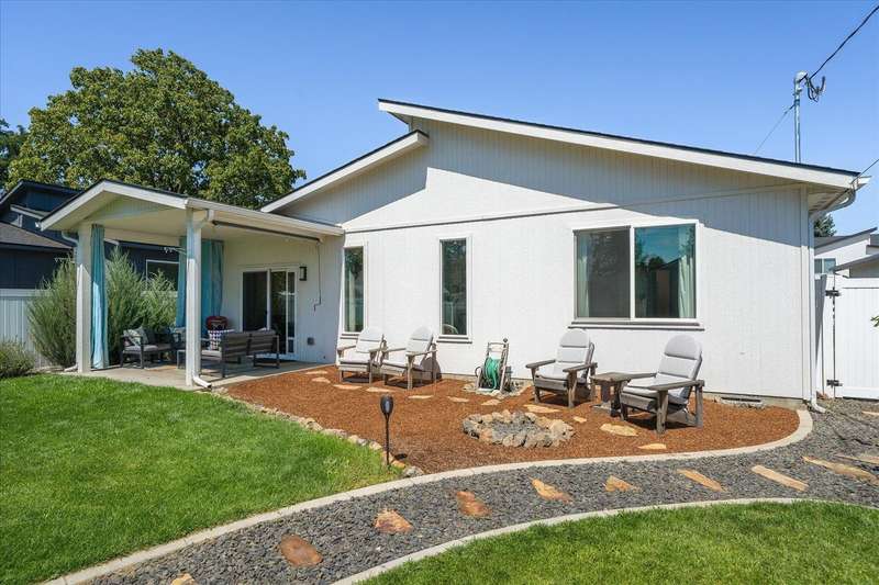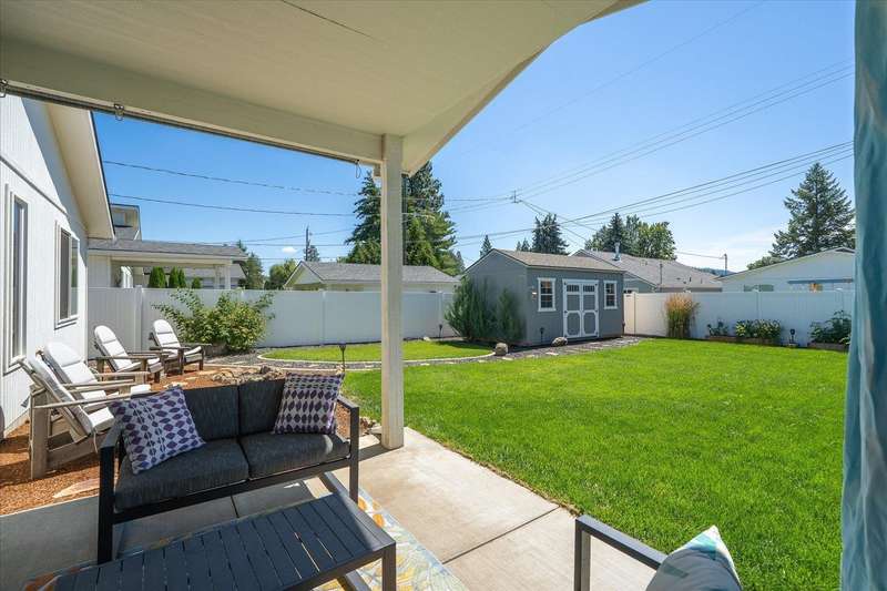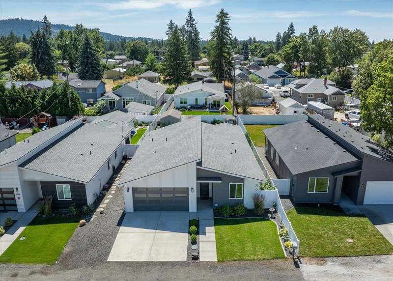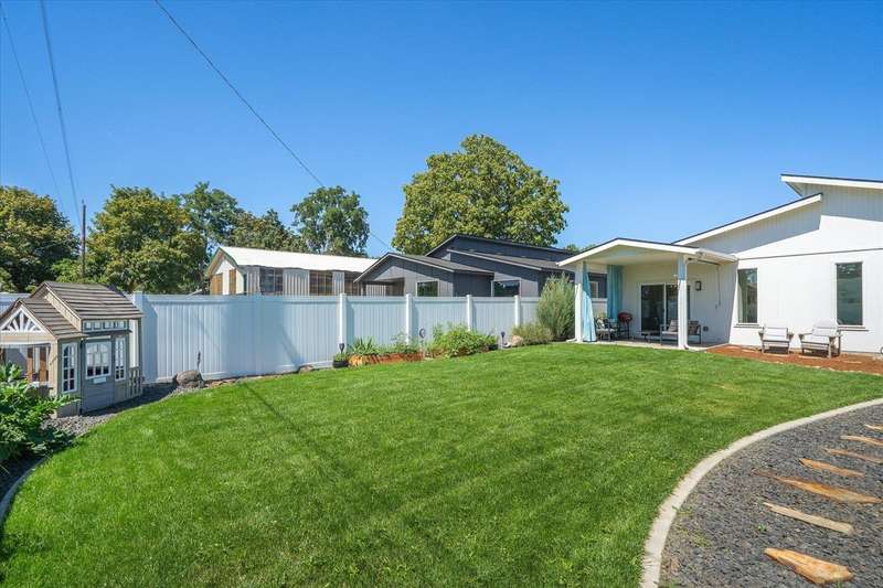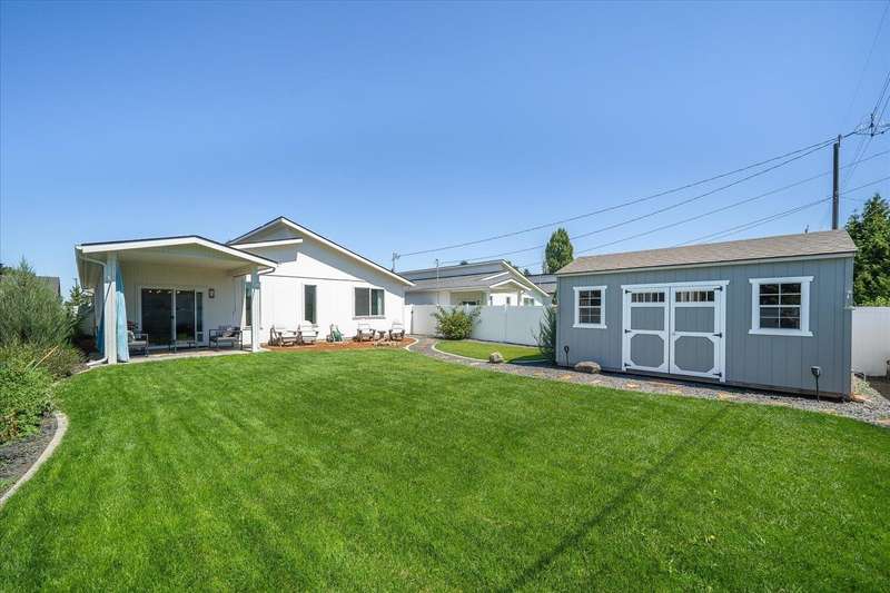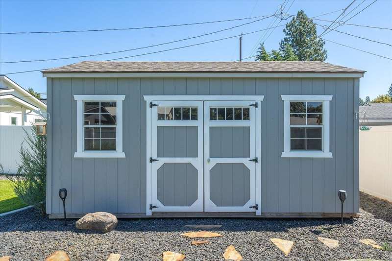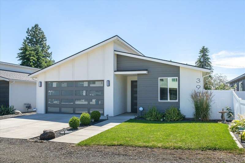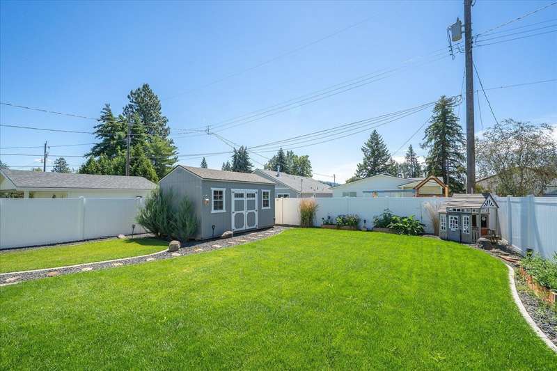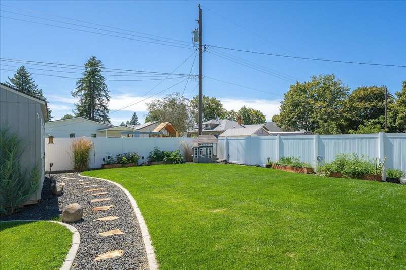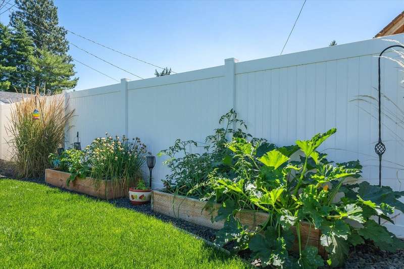 Stunning turn-key South Hill modern farmhouse with zero-step entry! This like-new, single-owner home has an open layout with 9’ ceilings, abundant natural light, and contemporary custom finishes. Enjoy quartz countertops, soft-close cabinetry, a farmhouse sink, stainless appliances including a gas range, quiet dishwasher, and fridge, plus a spacious island for entertaining. LVP flooring flows through the home, leading to a cozy electric fireplace with custom feature wall. The large primary suite offers a walk-in closet and double-sink vanity with walk-in shower. Extras include Nest thermostat, Ring doorbell, MyQ smart garage, and smart washer/dryer with utility sink and storage. Fully fenced backyard oasis with covered patio, concrete curbing, sprinklers, 10x18 shed, and raised garden beds. Insulated garage with 8' door and windows. Truly a must-see home in a fantastic location!