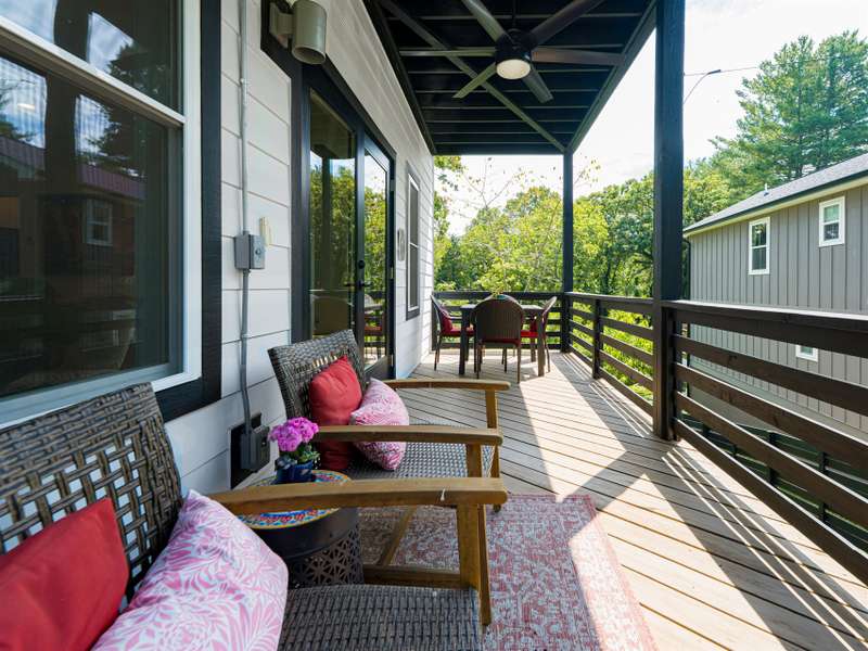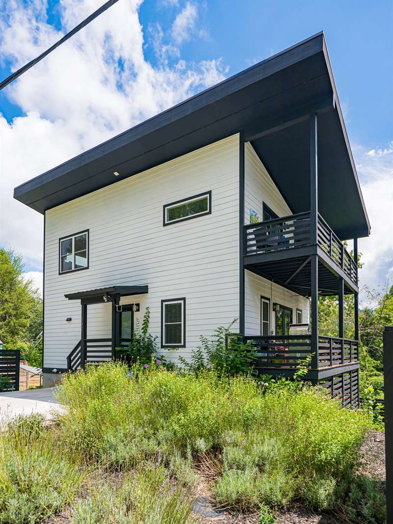 Beautifully designed and impeccably maintained, this contemporary 4-bedroom home in North Asheville offers the perfect blend of style, comfort, and convenience. Ideally situated within walking distance to UNCA, the Botanical Gardens, and the North Asheville Tailgate Market?and just 2 miles from downtown Asheville?this like-new 2022 build sits in a peaceful, established neighborhood. The striking black-and-white exterior with a sleek metal roof exudes modern sophistication. Inside, three levels of living space provide versatility, privacy, and plenty of room for gathering. Step outside to a flat, beautifully landscaped yard featuring a spacious patio, pergola, firepit, and raised garden beds?all framed by elegant black fencing. With no HOA dues, off-street parking for two, and a secure Mail Boss mailbox, this home truly has it all. Come experience it in person?you'll be delighted!
