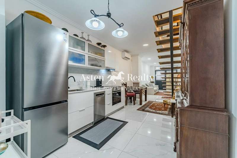 Located in a building from 1974, this property offers a total of 95.70 m² built, distributed over two floors. On the main floor, you’ll find a cozy living room, an open-plan kitchen with dining area, a full bathroom, and air conditioning to ensure comfort throughout the year. From here, an interior staircase leads to the upper floor, which features a spacious suite-style bedroom with its own bathroom. The full renovation has given the property a modern, functional, and bright design.