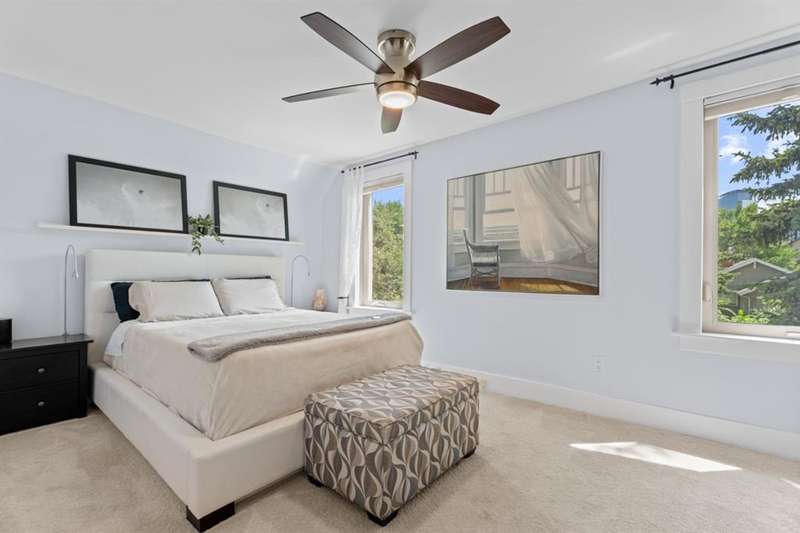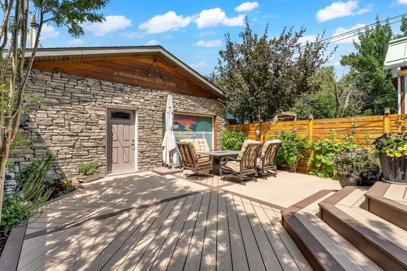 Welcome to a meticulously renovated and maintained 2-storey character home with unique, high-quality upgrades in the heart of Sunnyside - one of Calgary’s most beloved neighborhoods. This location offers highly sought-after proximity to the Peace Bridge, Prince’s Island, diverse river pathways, and Kensington, all within a 5-minute walk. Enjoy a vibrant and easy lifestyle where you can also walk downtown in less than 20min. This property has been pre-inspected for you by the owners of 20+ years and it’s ready for its next chapter with people who will appreciate it just as much. Upgrades include High efficiency furnace, new hot water tank (2023), new water softener (2022), new lux doors and phantom screens (2022), steam shower, Wine Fridge. As you arrive, you will notice the lovely curb appeal as the classic front porch welcomes you with a peaceful view of the garden. The main level welcomes you with a warm living and dining area showcasing a handcrafted curved mantle with gas fireplace, and engineered hardwood floors. The thoughtfully designed kitchen features custom maple cabinetry, one-of-a-kind gorgeous granite countertops, heated concrete floors, and a seating peninsula that looks out to the delightful backyard—perfect for morning coffee or evening wine. Upstairs, you’ll find two bedrooms and a luxurious extensive spa-style bathroom with heated floors boasting a steam shower, custom concrete vanity, and his & hers walk-in closets with maple cabinetry. The fully finished basement offers a recreation room, second full bathroom, laundry area and flex space to use as you please. Outside, escape to your private backyard oasis with expansive composite decking, a natural gas fire table and a patio se that is negotiable. A show-stopping oversized heated and insulated garage featuring stone detailing and a vineyard-inspired mural. It’s the perfect setting for outdoor entertaining or quiet evenings under the stars. With exceptional walkability, unmatched character, and custom-crafted features throughout, this home is perfect for professionals or downsizers seeking inner-city lifestyle without compromise. You won’t find another like it.