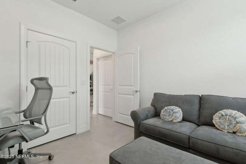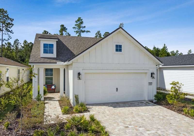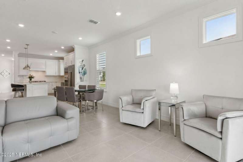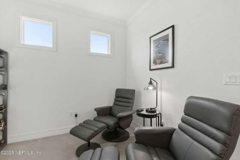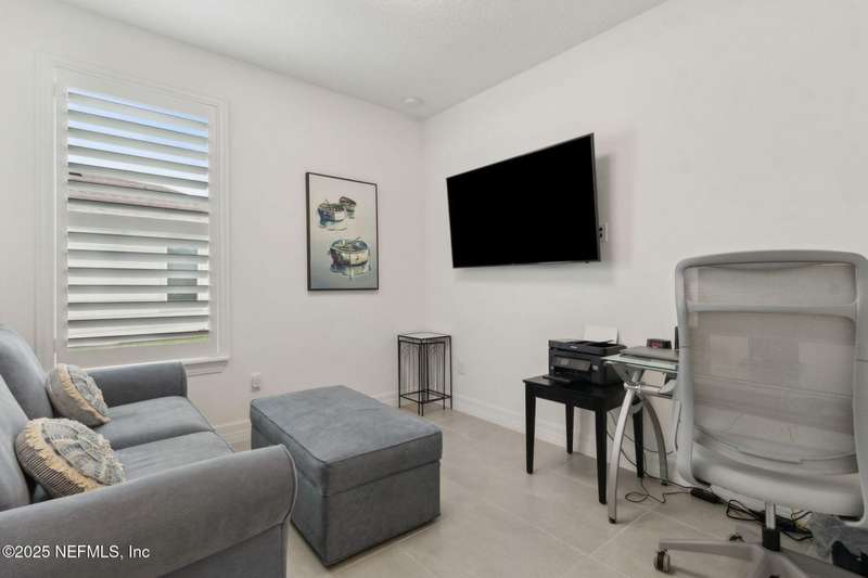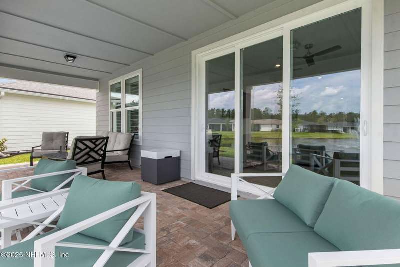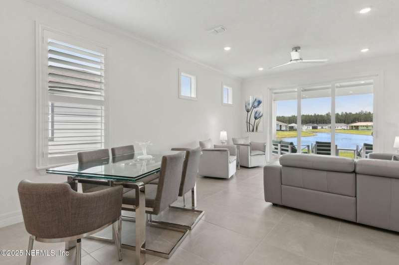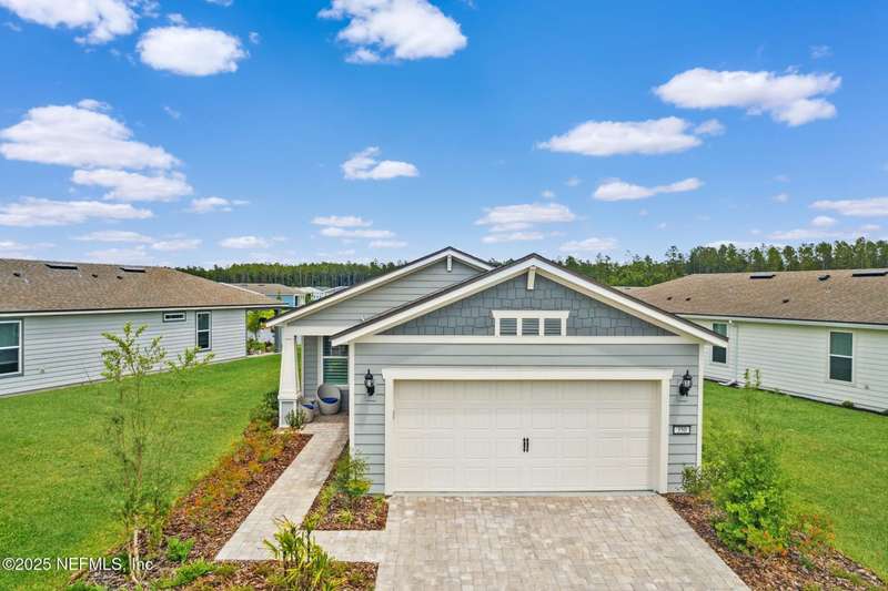 Discover this beautifully crafted 2024-built pond view home in a premier 55+ active adult, guard-gated community. Featuring 2 spacious bedrooms, 2 full bathrooms, and a versatile office/bonus room, this home offers the perfect combination of luxury and low-maintenance living.Enjoy breathtaking pond views with dual fountains right from your family room, kitchen & master suite, creating a peaceful, scenic backdrop every day. The open-concept layout flows effortlessly into a gourmet kitchen complete with quartz countertops, stainless steel appliances, custom backsplash and a large center island-ideal for entertaining. The expansive master suite is a true retreat with the perfect amount of natural light shining through. The master bath boasts double vanities w/ quartz countertops, an extended glass-enclosed walk-in shower and a generously sized walk-in closet. Step outside to your covered and extended paver lanai, perfect for relaxing and enjoying the serene water views. Other great features include plantation shutters, water softener, washer/dryer, spacious 2-car garage w/ epoxy floor, full irrigation system and located in a natural gas community. This home offers quality finishes, modern design, and exceptional amenities in a highly desirable neighborhood. Del Webb Wildlight offers a resort lifestyle to their residents (20% of the community is available for under 55), with an abundance of social events and a list of amenities a mile long - glistening pool w/ spa, 16k sqft clubhouse, tennis, pickleball, fire pit area, abundance of nature trails and so much more! Don't miss this rare opportunity to live like you are on vacation everyday schedule your private showing today!