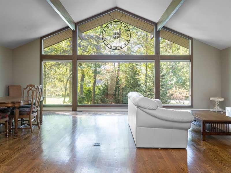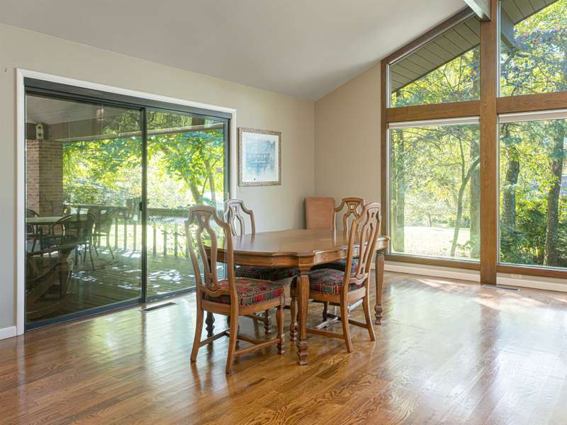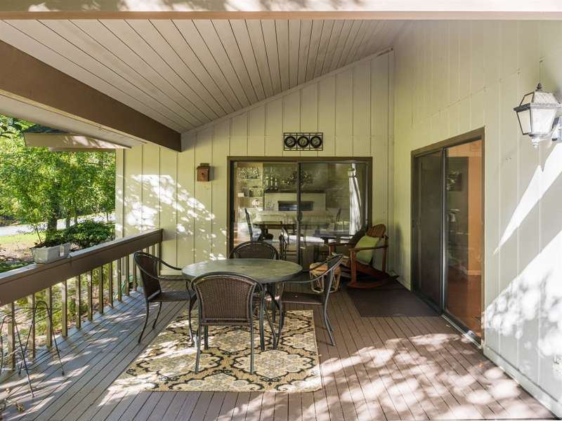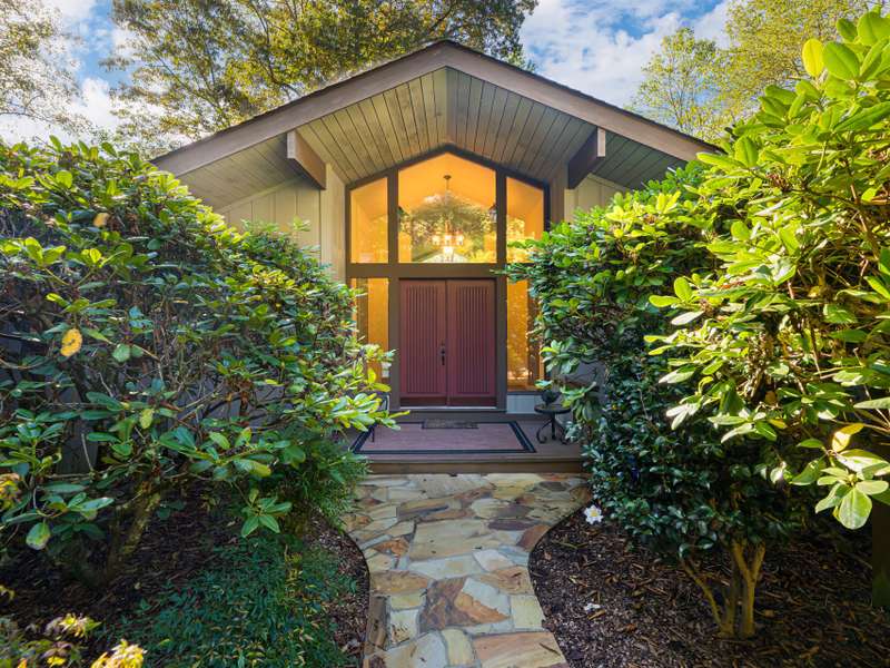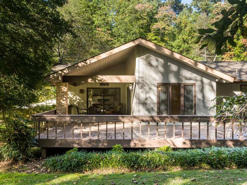 This stunning, move-in ready home is minutes from downtown Hendersonville and perfectly blends peaceful mountain living with urban accessibility. Exuding a mid-century modern aesthetic, this beautifully maintained property offers a bright, open-concept layout ideal for everyday living and entertaining. Inside, you'll find quality craftsmanship and modern touches, including a spacious kitchen with granite countertops and stainless steel appliances. The light-filled living area features a cathedral ceiling, a large picture window, and a cozy fireplace, creating a welcoming and comfortable atmosphere. Enjoy the serene view of the pond from the covered deck, perfect for experiencing the seasonal mountain weather. This home is truly waiting for its next chapter.