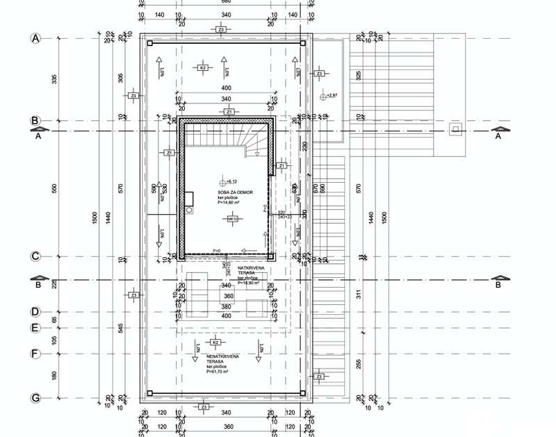 The basement is designed as a multifunctional space with the potential to be furnished as a tavern, a socializing space, or a wellness center. Each floor is connected by an enclosed staircase, ensuring privacy and comfort. The rooftop terrace provides a space for relaxation with unobstructed sea views, perfect for enjoying morning coffee or evening relaxation.