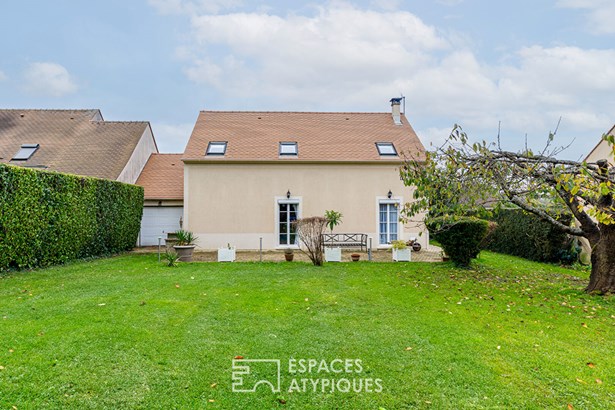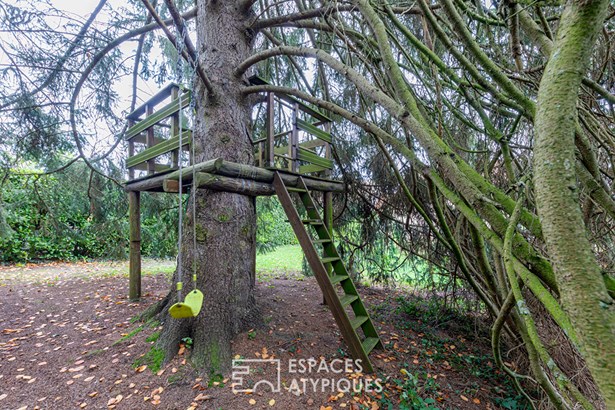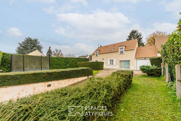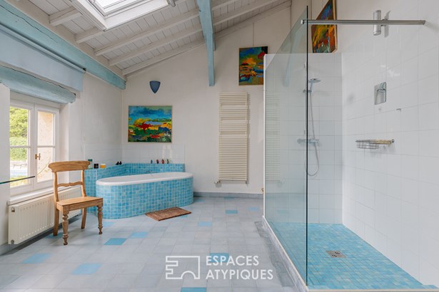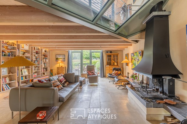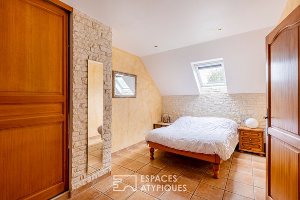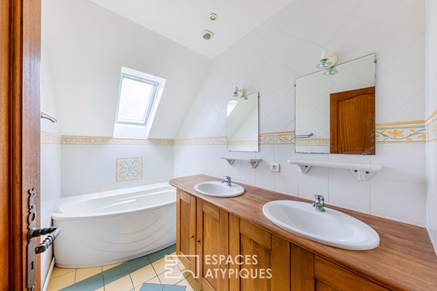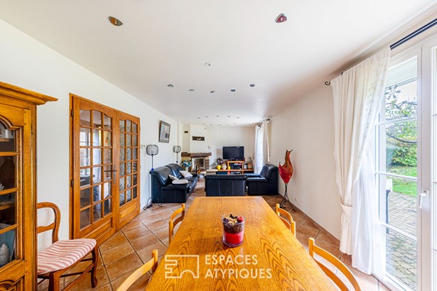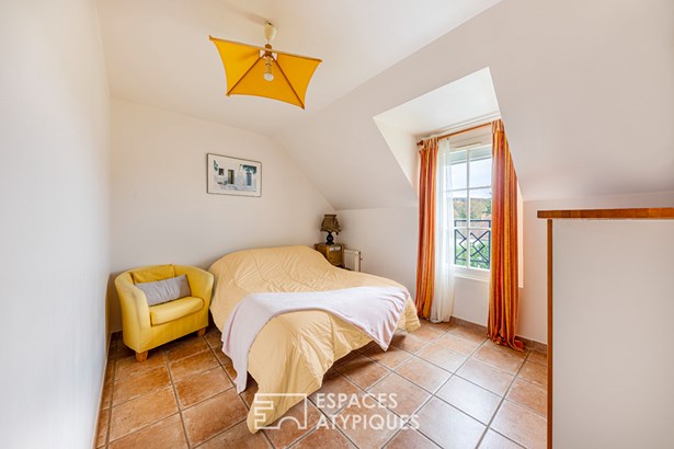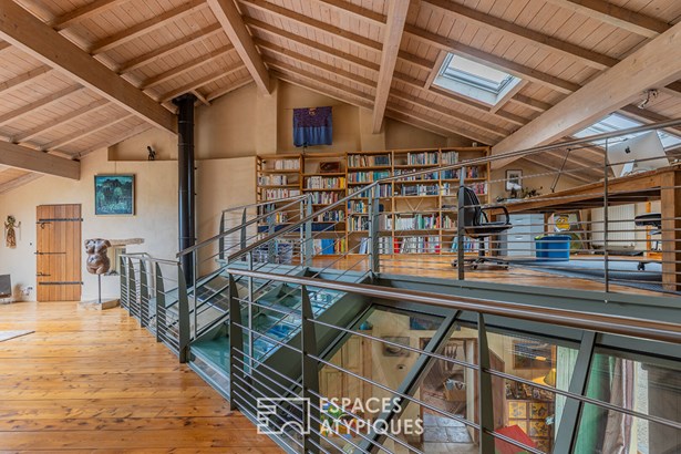 On the first floor, there are three large bedrooms, two of which have their own bathrooms and generous storage space. A large hallway leads to a large open room, currently furnished as a library and workspace, offering a soothing view of the garden. The top floor offers two additional rooms, a large workshop and an open space that can be furnished as desired, offering multiple possibilities.