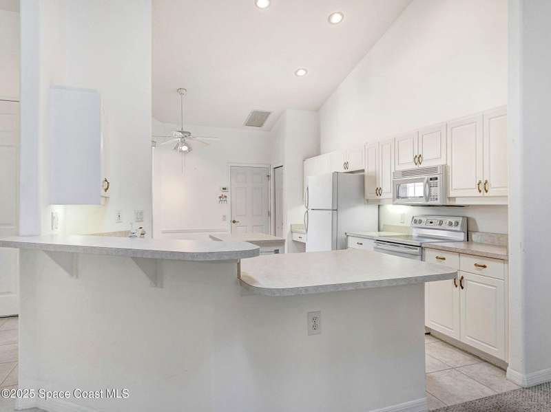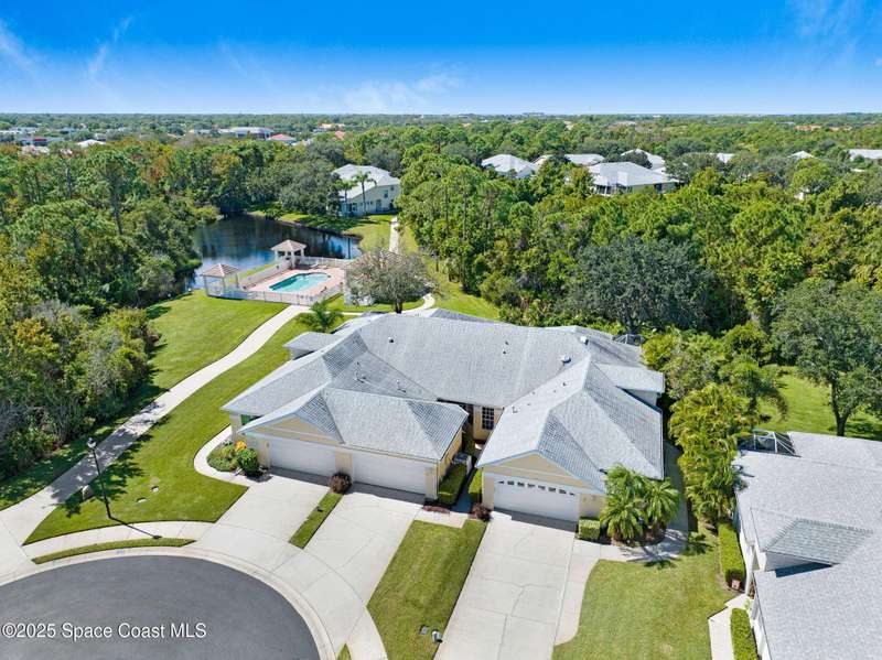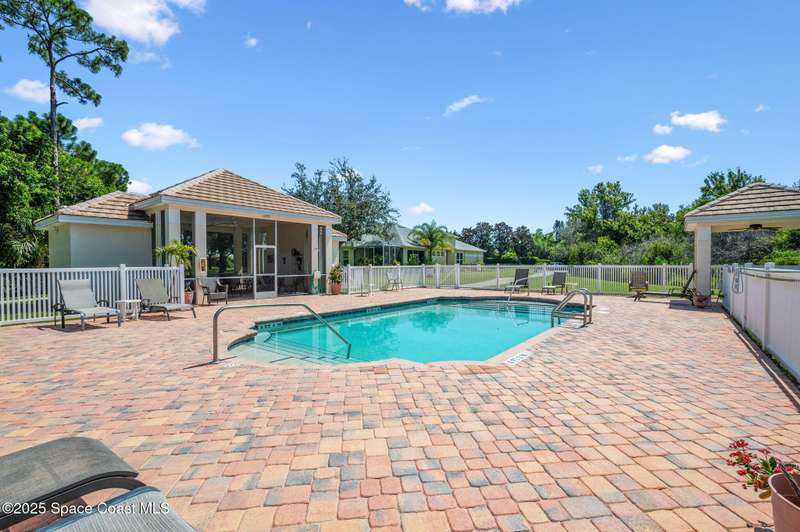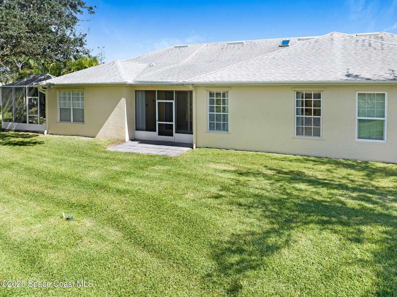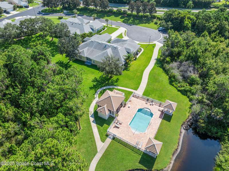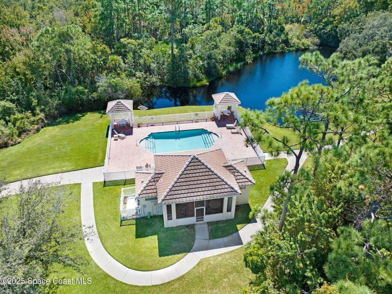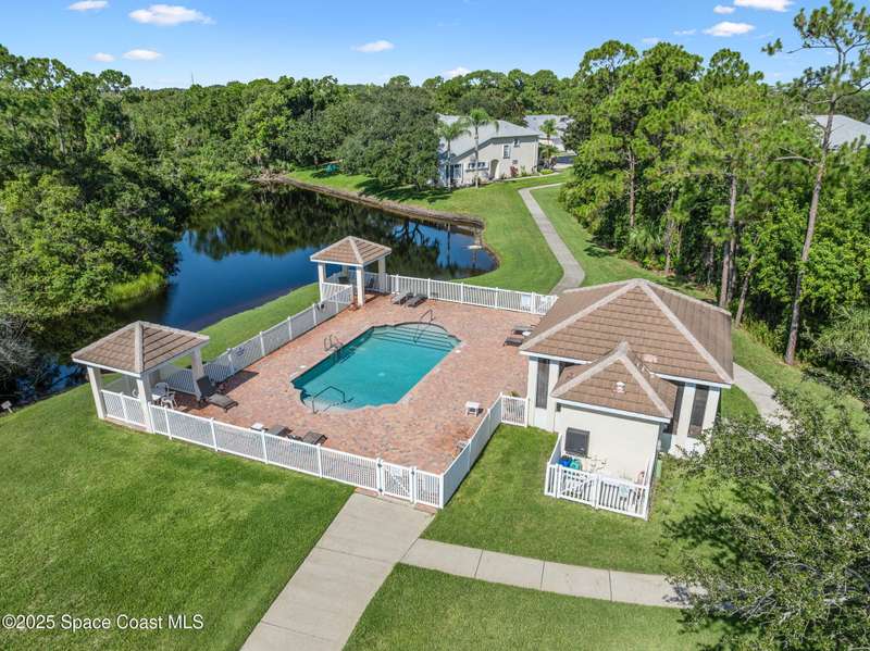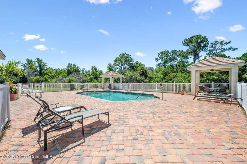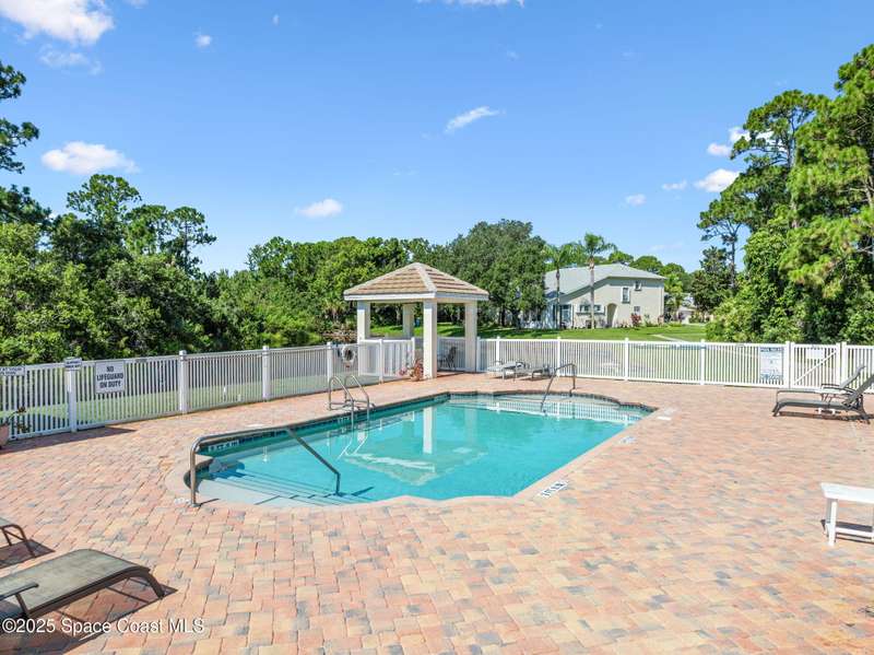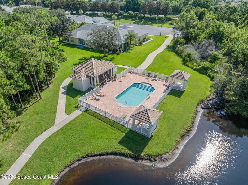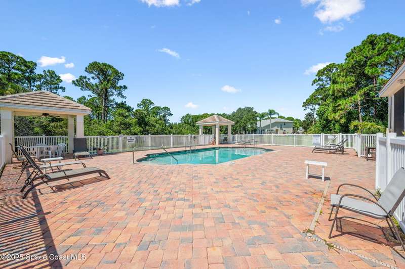 Welcome to the gated community of Magnolia Pointe in the heart of Suntree! This 2 Bedroom 2 Bath unit next to the last one towards the end of the cul-de-sac, steps to the community pool. The huge eat-in kitchen features an island, abundant cabinetry, cozy breakfast nook. Retreat to the spacious Primary Bedroom boasting dual closets plus + extra linen closet. The main bath features a garden soaking tub, separate shower, vanity with double sinks. Vaulted ceilings, skylight, recently rescreened lanai, accordion shutters at the front door and in the back, 2012 A/C, 2020 Hot Water Heater, Laundry with washer and dryer. TRUE WORRY-FREE LIVING! Solid concrete block construction and 2017 Roof provide superior durability. The comprehensive HOA fee is incredible value, covering the roof, exterior paint, lawn/irrigation, termites, pool, + exterior insurance! Minutes to shopping, dining, Viera Hospital, parks, A-rated schools, and a short drive to the beautiful Space Coast beaches. Less than 30 minutes to Port Canaveral & about 1 hour to Orlando and Disney Parks.