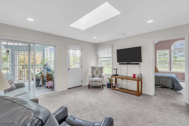 Charming Center-Hall Colonial with mother-daughter Addition. Welcome to this beautiful 4-bedroom, 2.5-bath center-hall colonial, thoughtfully updated and meticulously maintained. The Kitchen was remodeled in 12/2020. Primary and full baths remodeled in 2022. Large, front to back Family room with wood floors and a fireplace with a wood stove insert in 2021. The home features a spacious sunroom, which has heat/air, perfect for relaxing and enjoying natural light. In 2014 an addition was added, offering a private bedroom, bathroom 14x14 with a 7x8 walk in closet, living room 15 x 13 with a skylight and slider to Sun room; eat-in kitchen /dining area 15 x 15 with skylight. The addition is approx 1,000SF. The partially finished basement offers additional space for recreation or storage. Nestled in a peaceful neighborhood on just over an acre, this home combines classic charm with modern convenience. A new roof completed in 2025; HVAC on second floor 2014; First level HVAC in 2009; HW heater 2020; Windows, 2007.