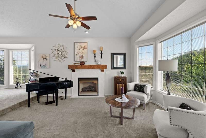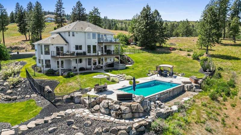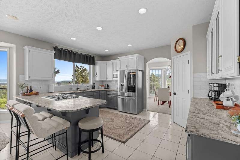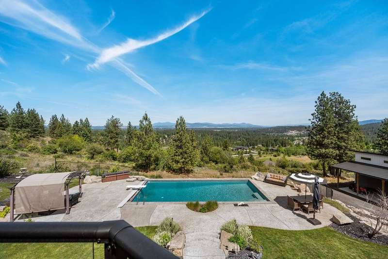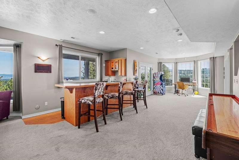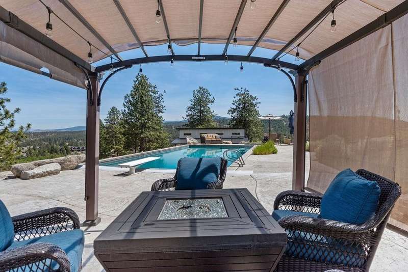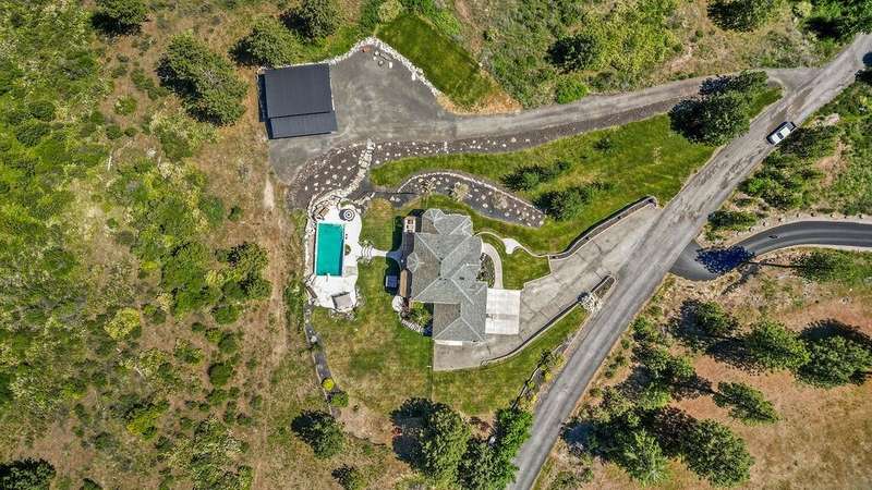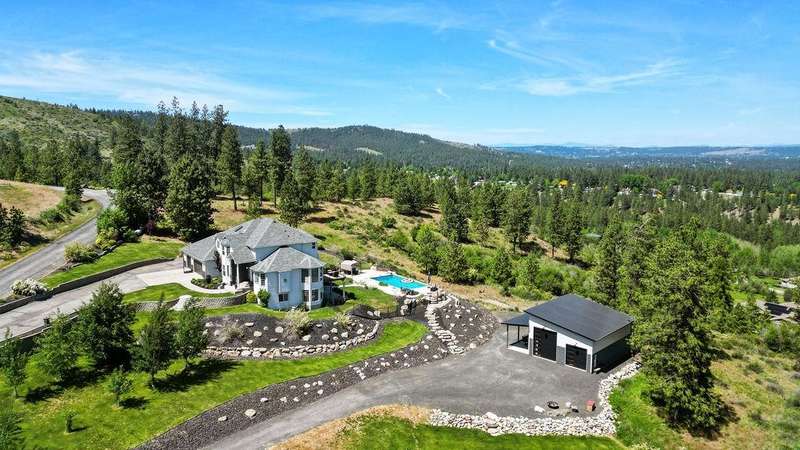 Welcome to Grouse Mtn Living. Breathtaking views, privacy, & quick access to town—this stunning property offers it all. Nestled on 7.65 acres along a private, gated road, this custom home captures the best of both worlds: serene mountain living just 5 minutes from restaurants, grocery stores, gyms, & more. Inside, you'll find a warm & inviting layout feat. a grand entryway, a dedicated home office, & a seamless flow between the kitchen & great room—ideal for entertaining. The home also offers separate dining & living rooms, 3 cozy fireplaces, & a whole-home sound system. The expansive 670 sq. ft. primary suite is a true sanctuary, complete with motorized blinds & ample space to unwind. A large recreation room sets the stage for memorable family gatherings, with direct access to the backyard oasis feat. a pool & hot tub. Bonus features include a 36x40 shop with a bathroom, a separate driveway, and plenty of parking—perfect for work, hobbies, or extra storage. Road to be repaved Aug 8 from gate to mountaintop!