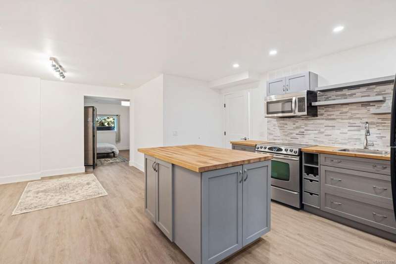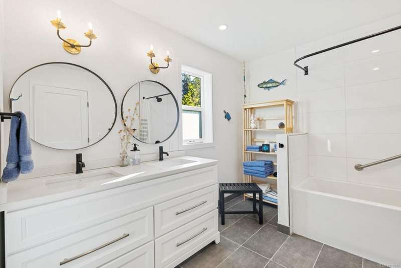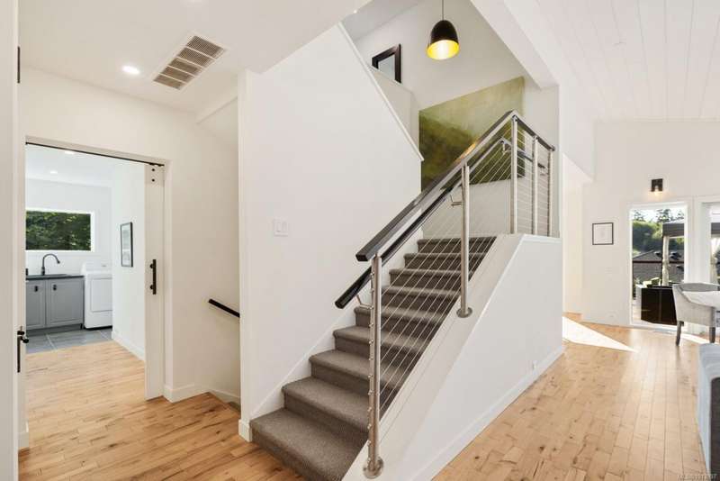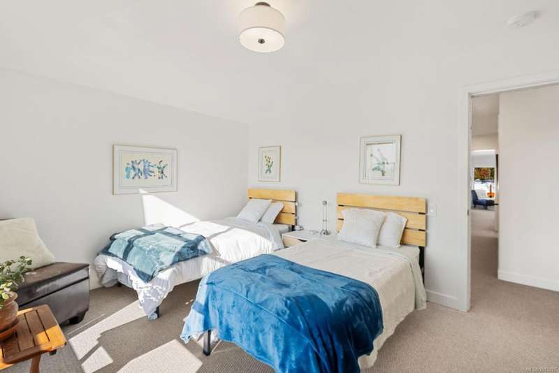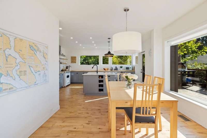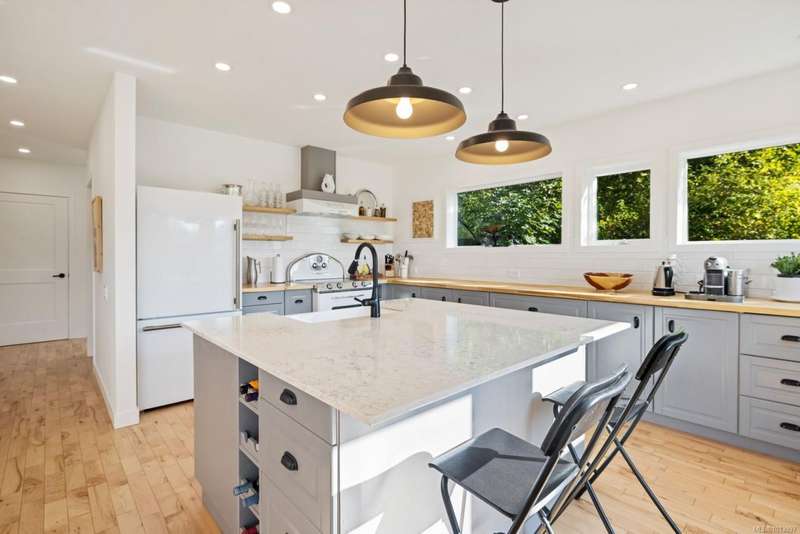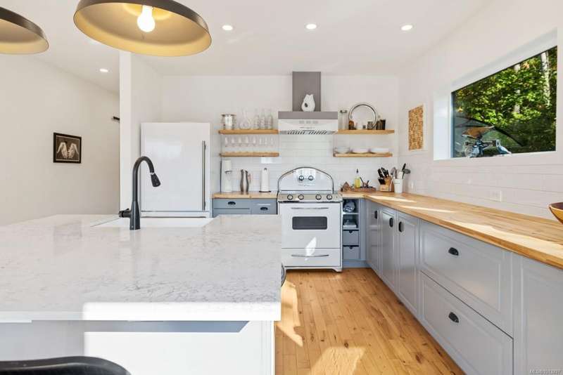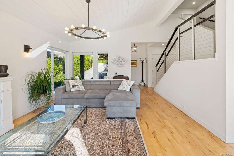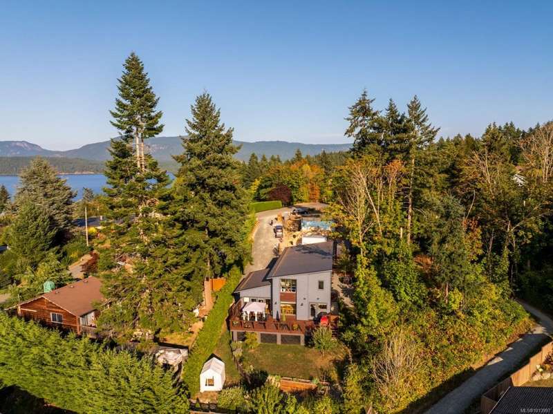 Welcome to 1784 Vee Road, Cowichan Bay. The covered entrance welcomes you into this architecturally designed home. The vaulted living room is filled with natural light that creates a wonderful, welcoming space. Flowing through the dining room, with its huge picture window to the Kitchen, featuring butcher block counters, a large central island and access to the entertainment sized rear patio. This west facing patio overlooks the fully fenced back yard, with fruit trees and very productive garden beds. The spacious primary bedroom is a relaxing space with private roof-top patio, as well as a 4 pcs ensuite and walk-in closet. There are two additional bedrooms on this level, complemented by a 5 pcs bath. Down is a one bed suite with its own entrance, great kitchen & island and a large bedroom with 3pcs ensuite. This is an excellent home in a highly desirable Cowichan Bay neighbourhood.