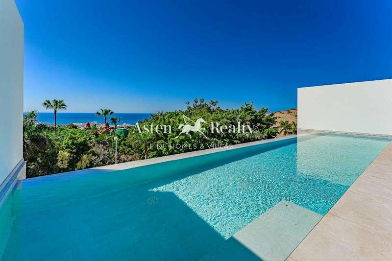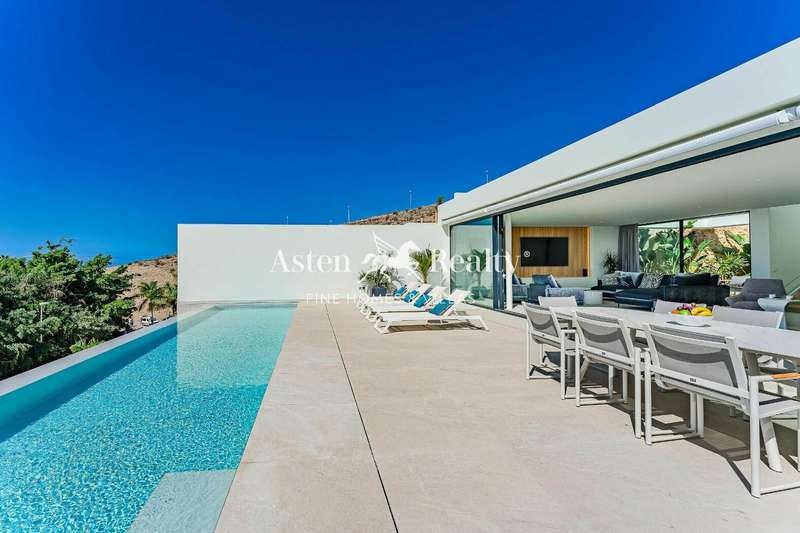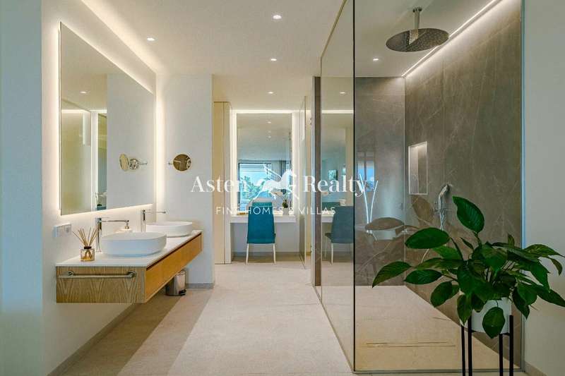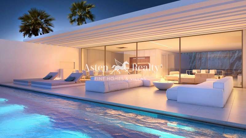 Asten Realty here presents Villa n.5. A wonderful villa with 4 bedrooms, 4 full bathrooms, 1 toilet, elevator, 2 terraces, Infinity heated pool, gardens with palm trees, multipurpose room, closed garage for 2 vehicles and 2 covered parking spaces.