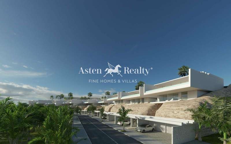 SIAM BLUE is the spectacular new luxury development in Costa Adeje, with 10 villas in an unbeatable location, where calm and comfort define everyday life. Located above Siam Park, with wonderful panoramic views, easy connections, modern design made by the prestigious architect Leonardo Omar and with private pools. The houses have 3 or 4 bedrooms.