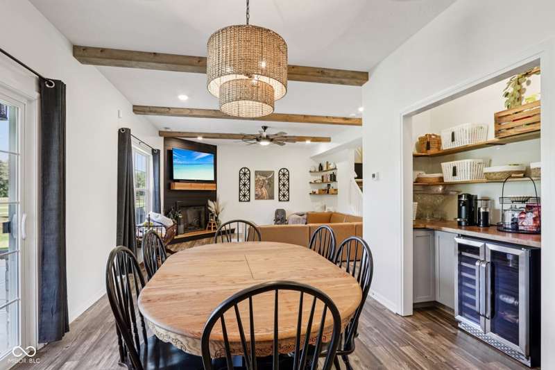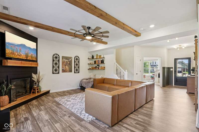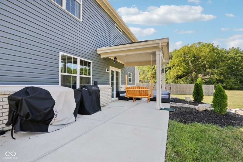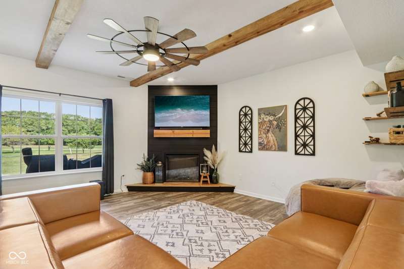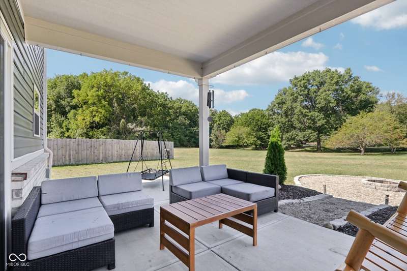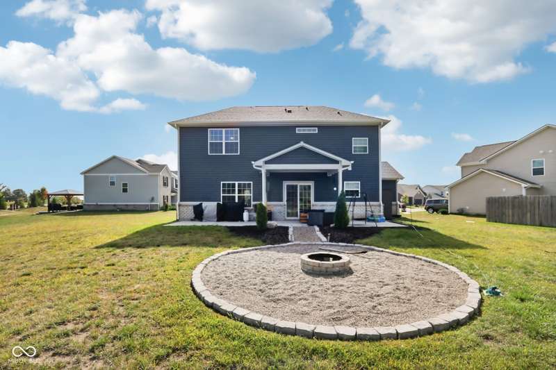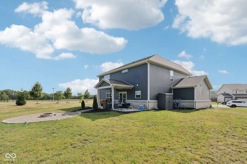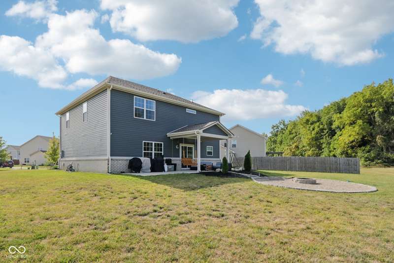 Discover a home where comfort meets style in the heart of Hendricks County. Built in 2021, this stunning two-story residence offers 2,389 square feet of thoughtfully designed living space, with 4 bedrooms, 2.5 bathrooms, and a spacious 0.32-acre lot. From the moment you step inside, you'll be drawn to the warm, inviting living room-where a cozy fireplace glows beneath striking beamed ceilings, setting the stage for gatherings or quiet evenings at home. The kitchen is a true showstopper, boasting a large island perfect for entertaining, sleek stone countertops, timeless shaker cabinetry, and a stylish backsplash that ties it all together. Whether you're preparing dinner or hosting friends, this space delivers both beauty and function. Upstairs, the primary suite feels like your own private getaway. The ensuite bath pampers with a double vanity, walk-in shower, and plenty of space to unwind. A walk-in closet keeps everything organized with ease. Step outside and enjoy your own backyard retreat. Relax on the patio with peaceful wooded views, or gather around the fire pit with friends on crisp evenings. This outdoor space is made for making memories. Move-in ready and designed for modern living, this home offers the perfect blend of elegance, comfort, and convenience. Don't miss your chance to make it yours!