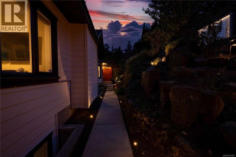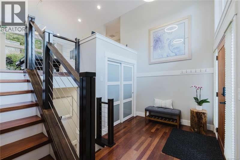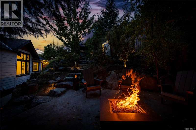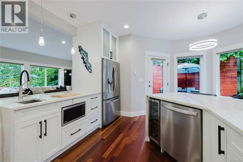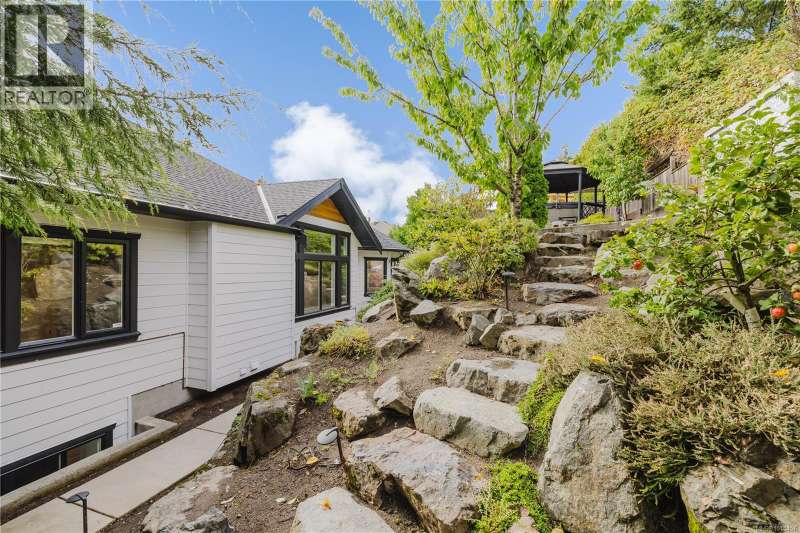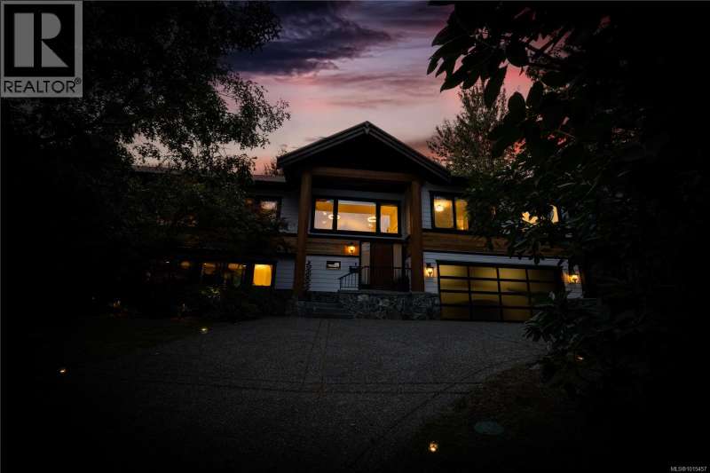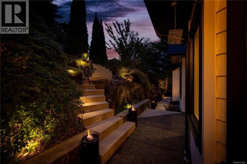 Welcome home to this exquisitely renovated 4 Bed/4 Bath executive residence perched above Royal Bay. Perfectly positioned across from Promenade Park, within walking distance to the vibrant seaside community below. No detail has been overlooked in the extensive renovations including a new roof with 40-year warranty, fresh exterior paint, & fully landscaped private grounds, perfect for entertaining. Inside, a double-height foyer with south-facing windows floods the home with natural light. The main living area features vaulted ceilings and a dramatic floor-to-ceiling fireplace. The chef’s kitchen is a showpiece with custom cabinetry and quartz counters, seamlessly flowing to a private fenced patio and backyard retreat featuring a hot tub & a cozy firepit. Also on the main is a spacious dining room and an elegant primary suite with its spa-inspired ensuite. The lower level includes a versatile recreation lounge and wet bar, a double car garage, and a vacant, fully self-contained suite. (id:58403)