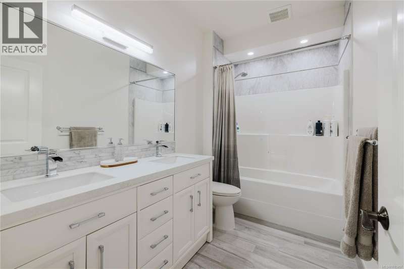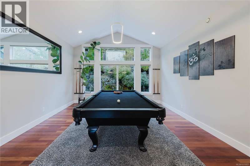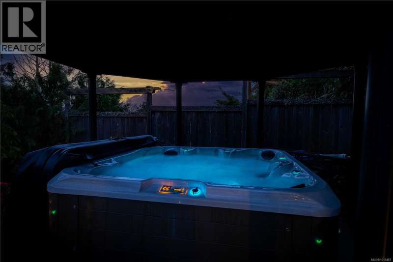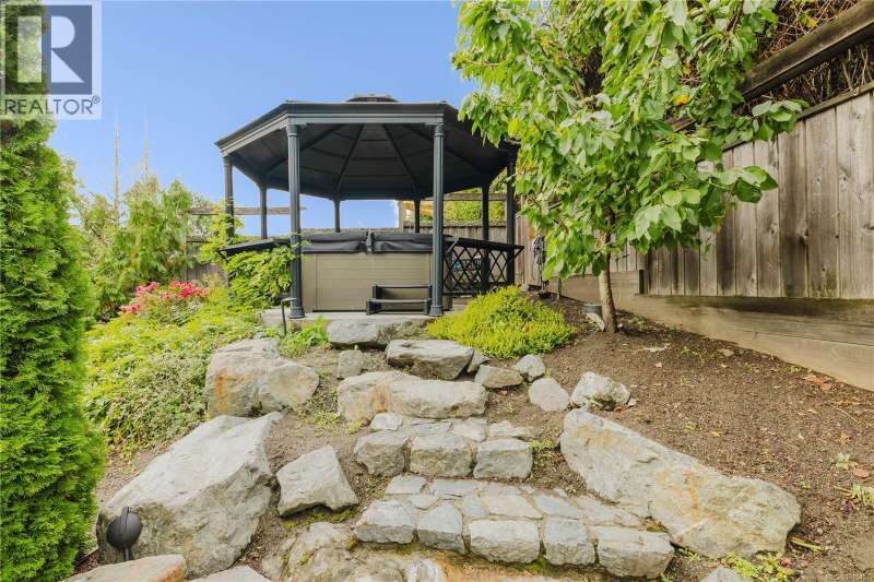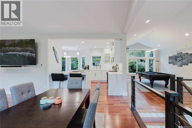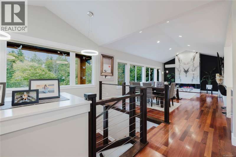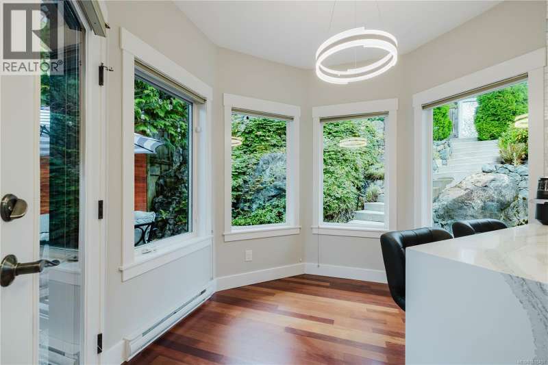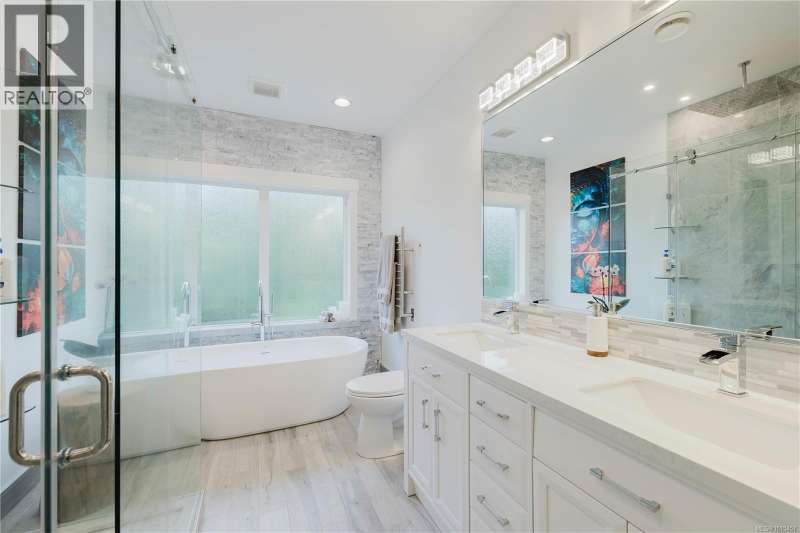 Welcome home to this exquisitely renovated 4 Bed/4 Bath executive residence perched above Royal Bay. Perfectly positioned across from Promenade Park, within walking distance to the vibrant seaside community below. No detail has been overlooked in the extensive renovations including a new roof with 40-year warranty, fresh exterior paint, & fully landscaped private grounds, perfect for entertaining. Inside, a double-height foyer with south-facing windows floods the home with natural light. The main living area features vaulted ceilings and a dramatic floor-to-ceiling fireplace. The chef’s kitchen is a showpiece with custom cabinetry and quartz counters, seamlessly flowing to a private fenced patio and backyard retreat featuring a hot tub & a cozy firepit. Also on the main is a spacious dining room and an elegant primary suite with its spa-inspired ensuite. The lower level includes a versatile recreation lounge and wet bar, a double car garage, and a vacant, fully self-contained suite. (id:58403)
