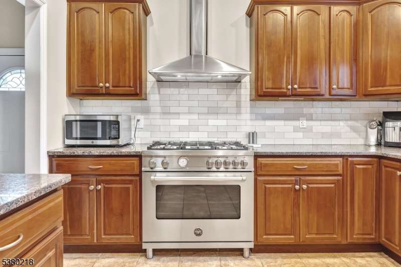 Nestled in Colonia, NJ, this exquisite 5-bedroom, 3.5-bath custom home blends luxury and functionality, ideal for modern living. The two-story residence features a brick and vinyl exterior, enhanced by professional landscaping and an in-ground sprinkler system for a vibrant lawn. Enter through a grand foyer with soaring ceilings and hardwood floors flowing through the open-concept main level. The gourmet kitchen, a chef's delight, boasts granite countertops, stainless steel appliances, and custom cabinetry, seamlessly connecting to a family room. A formal dining room and a versatile home office or living room complete this level. Upstairs, the master suite offers a large closet and a spa-like ensuite with a soaking tub, dual vanities, and a glass-enclosed shower. Three additional bedrooms, full-up-to-date bathroom, plush carpeting and ample closets round out the second floor. The fully finished basement adds versatility, housing the fifth bedroom, perfect for guests, and a stylish powder room. This level also offers a spacious recreation area, ideal for a home theater or gym, with potential for further customization. A Generac whole-house generator ensures uninterrupted power. The backyard, with a deck and irrigation, is perfect for entertaining. Located near top schools, parks, and commuter routes, this Colonia gem epitomizes elegance and resilience.