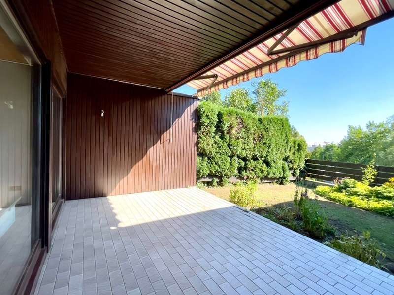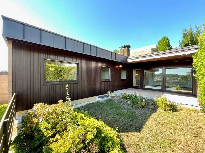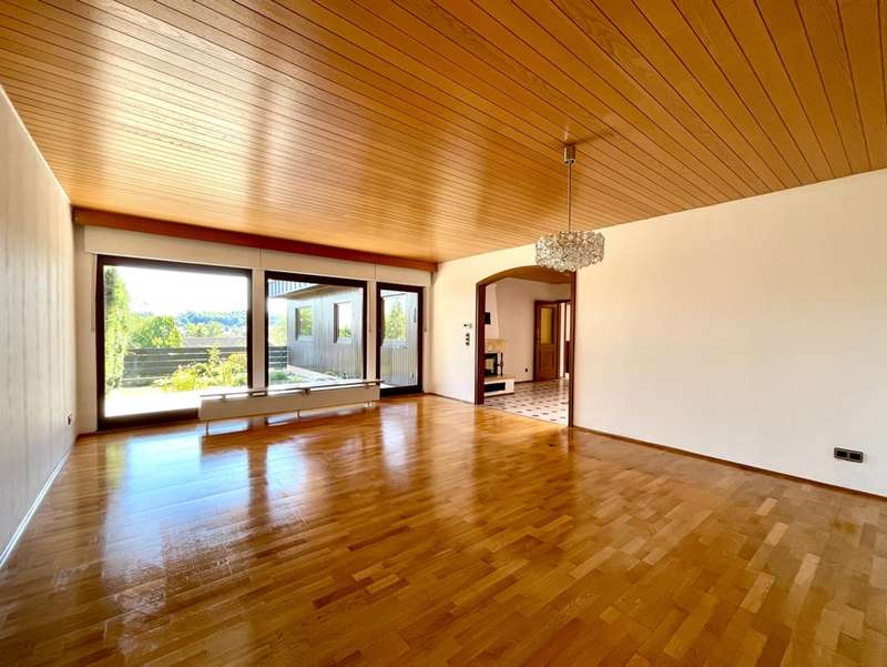 In one of the most desirable residential areas of Regensburg, on the Sallerner Berg, is this attractive family home with a very well-kept garden plot, which offers a beautiful panoramic view from the Dreifaltigkeitsberg to the Winzerer Höhen. This bungalow is built in a timeless and modern architecture in the Bauhaus style, is located in an attractive south-facing slope and has a generous living space of about 180 square meters, which extends over two floors. A total of seven rooms with a large bathroom and a kitchen are available. Optionally, there is also the possibility through another house entrance on the first floor a use for a granny annexe with a large living area, a second bathroom and a kitchen. Thus, this family home offers plenty of space for the children, guests, au pair, and a quiet home office area. The open floor plan also opens up a lot of scope for the individual living concept and thus meets the highest standards of living. Enter through the main entrance first the inviting entrance hall, which lets in a lot of daylight with its dome light and can offer plenty of space with large built-in wardrobes for a wardrobe. Just downstream is a practical guest toilet. Then come to the heart of the property: the representative open living and dining room area, which offers with its floor-to-ceiling panoramic windows a very beautiful wide view up to the Dreifaltigkeitsberg and the Winzerer heights. This entire living area in the living room is covered with a high-quality parquet flooring and is openly designed, and can be individually furnished according to your wishes. Thus, there is also enough space for a piano and additionally a large living landscape. Furthermore, the dining area also offers enough space for a very large dining table, which forms the center of the room. In addition, a high-quality stylish fireplace tiled stove is also available here, which gives cozy warmth on cold winter days. Immediately adjacent is the kitchen, which can be equipped with a new fitted kitchen according to their own individual requirements. From the living room you can access the large and very sunny south-facing terrace, which is perfect for receiving guests and relaxing on warm summer evenings with a glass of wine. Due to the already existing awning, you can also easily adapt to any weather conditions. This idyllic garden has been lovingly designed with a selected plant stock. And the well-kept lawn completes the dreamlike garden and allows you to create your personal garden oasis in absolute tranquility! Due to the absolutely quiet location, you will only hear the sounds of nature on this property. The large daylight bathroom on this floor will also convince you: so the bathroom has a shower and an additional bathtub, in which they find peace and relaxation after a long day. As a special highlight, the large window provides a direct view of the Dreifaltigkeitsberg, one of Regensburg's impressive landmarks. In this living level, there are also three other spacious rooms, which are ideal, for example, as a master bedroom with the two children's rooms. The very large and high-quality wooden windows provide a lot of daylight in these rooms. The lower living floor of the house, which is just as flooded with light as the upper floor due to the hillside location, offers numerous possibilities for use for individual living requirements. Thus, the already existing large living room can be used just as variable as a home office, guest area or as another youth room. Also, this living floor can be equipped with another kitchen and another daylight bathroom. Depending on the needs, an independent living unit - granny annexe with its own entrance can be created, so that this property is also ideal for a multi-generational household. A storage room and a washing- heating room also offer here enough space for individualists. In the immediate vicinity is the own garage with a short and direct way to the family home. In recent years have been extensive modernization measures on this property with a modern heating system in gas condensing technology, complete modernization of the roof with new attic sheeting and skylights. Do not miss this unique and on the Regensburg real estate market very rare offer in a dream location and let yourself be convinced during a personal tour!