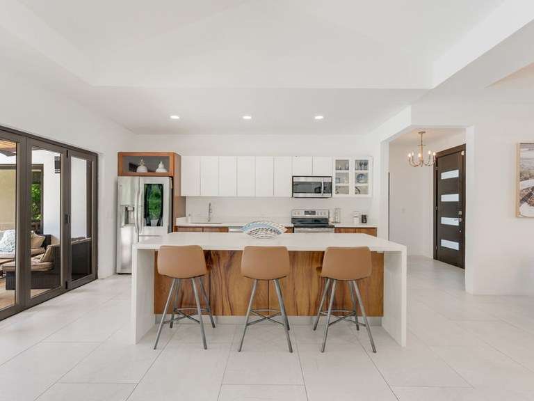 From the moment you arrive, a magnificent mature tree welcomes you into the tranquil setting, setting the tone for the natural beauty and privacy that define this property. Step inside and you'll discover a thoughtfully designed open-concept floor plan that blurs the line between indoor and outdoor living. Expansive glass sliding doors open to lush tropical landscaping, creating a seamless flow perfect for entertaining family and friends.