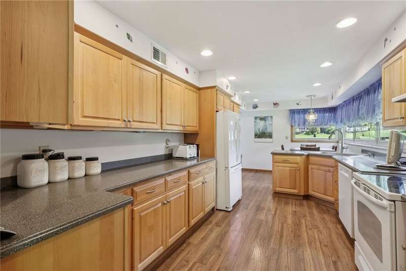 BRICK AND CEDAR RANCH ON PICTURE PERFECT 2+ ACRE LOT. BEAUTIFUL MAPLE KITCHEN WITH SOLID SURFACE COUNTERS AND NEWER APPLIANCES. ABUNDANT SUNLIGHT ENCOMPASSES THIS NEAT AS A PIN HOME. VAULTED CEILINGS IN GREATROOM AND SUNROOM. NEUTRAL TONES THROUGHOUT. BACK TO BACK WOOD BURNING FIREPLACES FOR WARMTH AND RADIANCE IN SUNROOM AND GREATROOM. POSSIBLE 3RD BEDROOM WITH POCKET DOOR SEPARATION. UPDATED MASTERBATH WITH DUAL SINKS AND NICELY TILED SHOWER WITH FRAMELESS GLASS DOOR. MAIN LEVEL LAUNDRY AND MUDROOM. STORAGE SHED, NEW ROOF AND HEATING & A/C - CLOSETS AND STORAGE GALORE.