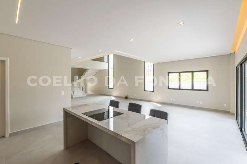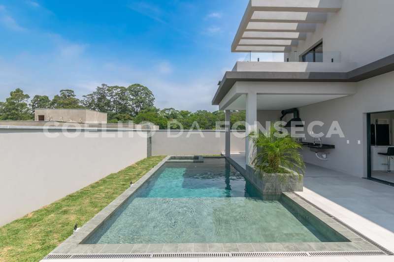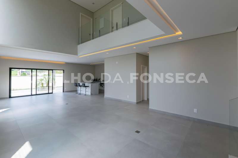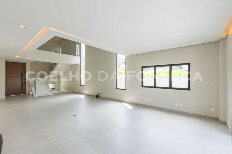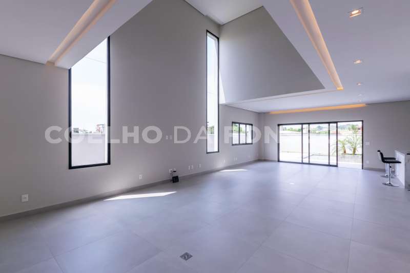 Casa em Condomínio no bairro Jardim Bandeirantes com 368m² área construída, 4 dormitório(s), 4 suíte(s), 4 vaga(s), 5 banheiro(s), piscina, varanda, pé direito duplo.