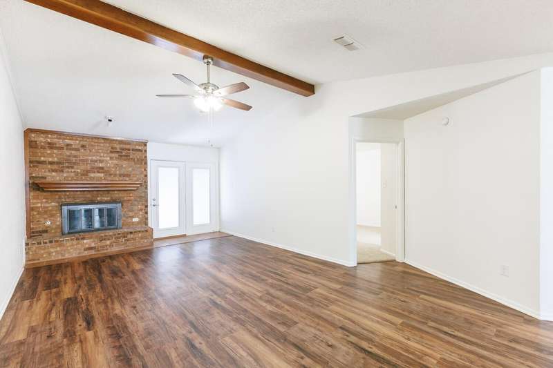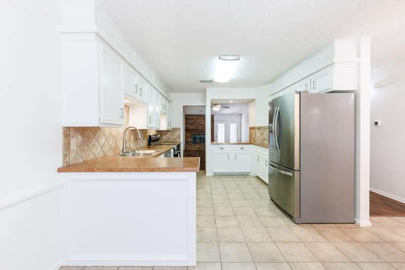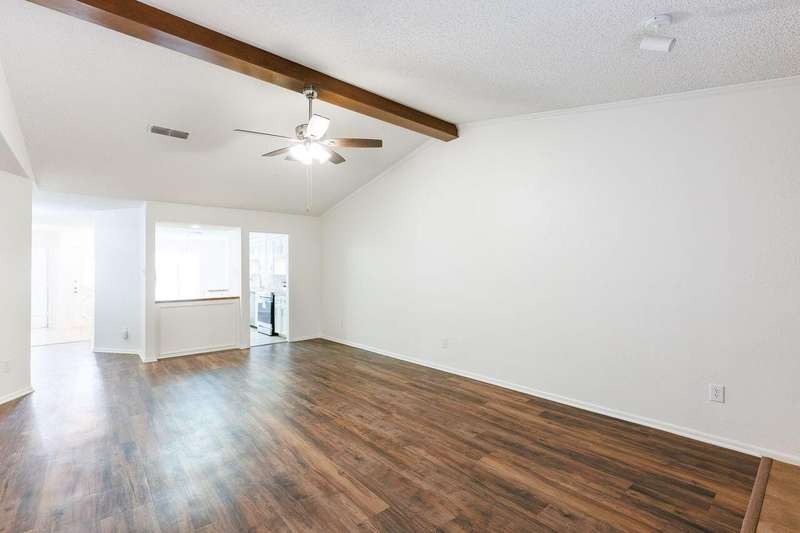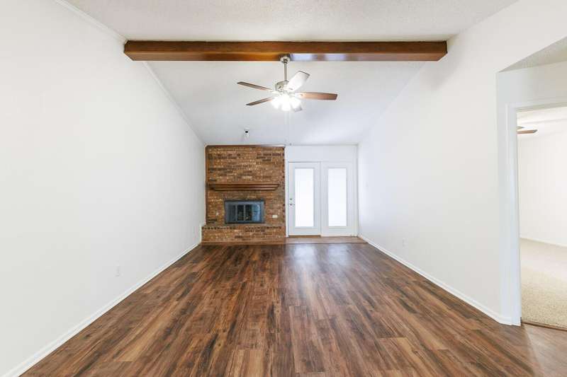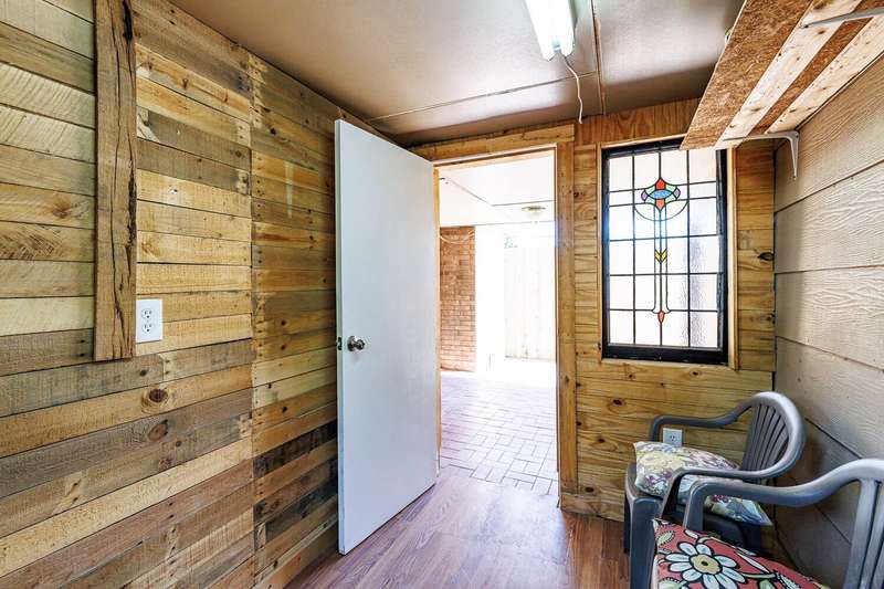 PRICED to SELL! 2/2/2 Townhome... TOO Cute to Resist! If move-in ready is at the top of your wish list look no further...this home has been 'touched' from top to bottom, inside and out! Starting at the top...NEW ROOF...moving inside, NEW Heating and Cooling System~ Spiffed up...freshened up...CLEAN! Spacious living area with low maintenance vinyl flooring, beamed ceiling and fireplace, gas logs~ Handy pass-thorough connects the living area to the sharp kitchen complete with refrigerator, NEW stove, NEW stainless sink and faucet~ New countertop microwave~ Front Dining Area~ Offering ultimate privacy are two bedrooms, each with NEW carpet, ensuite baths, granite countertops, super walk-in closets~ Bonus bath vanity serves living spaces~ Back patio with 7' privacy fence~ Storage/Workshop with electricity shines with stained glass window~ Two car rear-entry garage, paved alley~ This is a neat little package ready to be a solid investment or great place to call HOME!