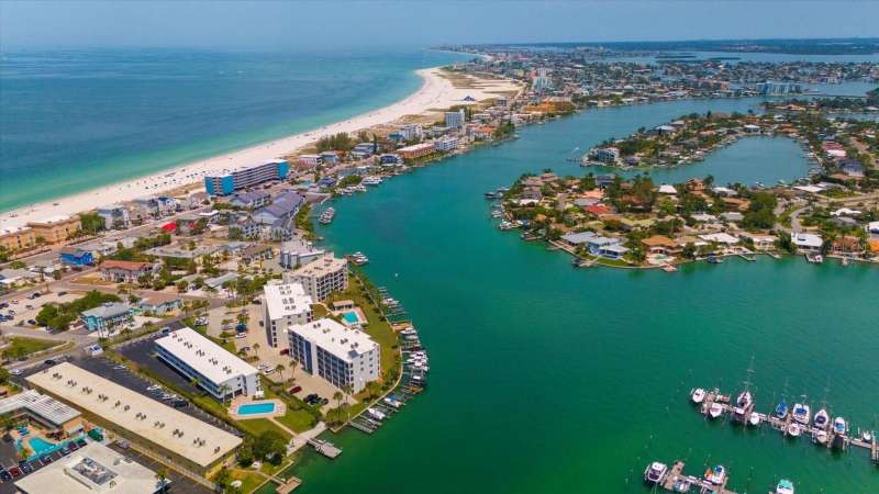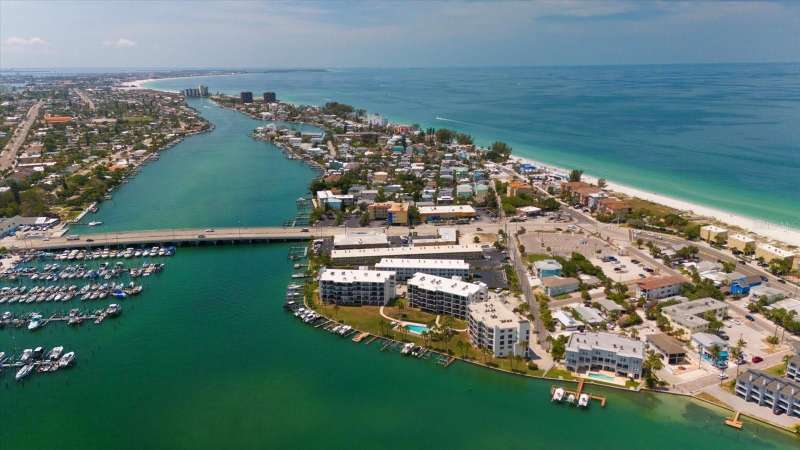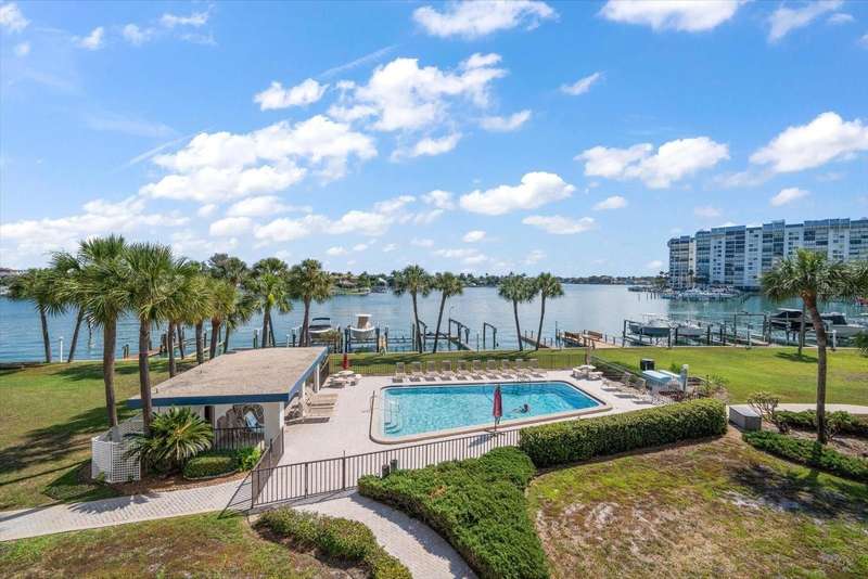Under contract-accepting backup offers. Beautifully remodeled waterfront condo with deeded BOAT SLIP! Welcome to Blind Pass Lagoons, your hidden paradise conveniently located within 5-minute walk to Treasure Island and Sunset Beach. This TWO-bedroom, TWO bath condo lives large with its spacious floorplan. The primary suite has lovely water views, a walk-in closet and a beautiful en-suite master bath with a tiled shower and large vanity with dual sinks. The open floorplan allows privacy between the bedrooms and a large open space to relax and watch the dolphins play! Enjoy the great Florida weather boating, at the sparkling heated pool overlooking the intracoastal waterway, or spend a day at the fishing pier. The large guest bedroom, waterfront balcony, interior laundry, and beautiful updates make this condo a great second home, vacation rental, or your full-time residence. Conveniently located near beaches, shopping, restaurants, and easy access to I-275. This is a BOATER’S DREAM with easy access to the Gulf of Mexico and miles of intracoastal water to explore. New roof, HVAC and appliances (2021) Milestone complete, repairs done and assessments paid.
