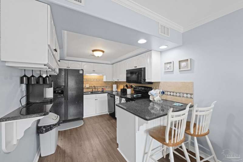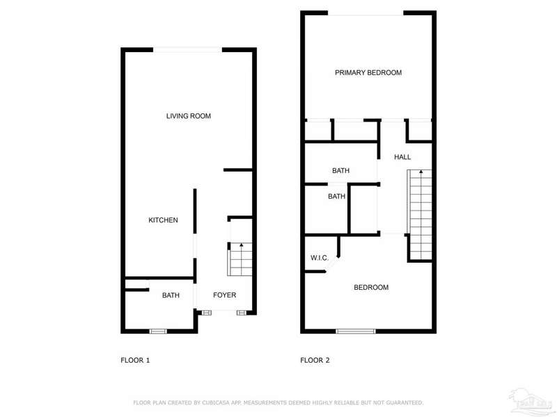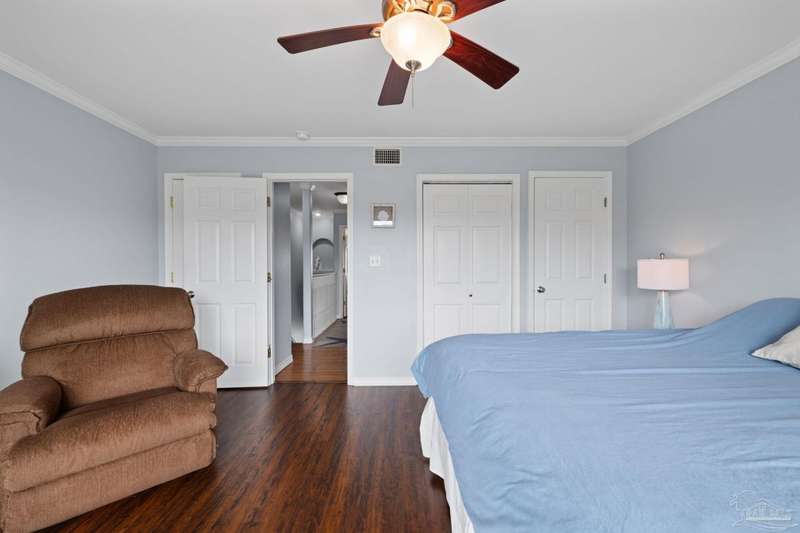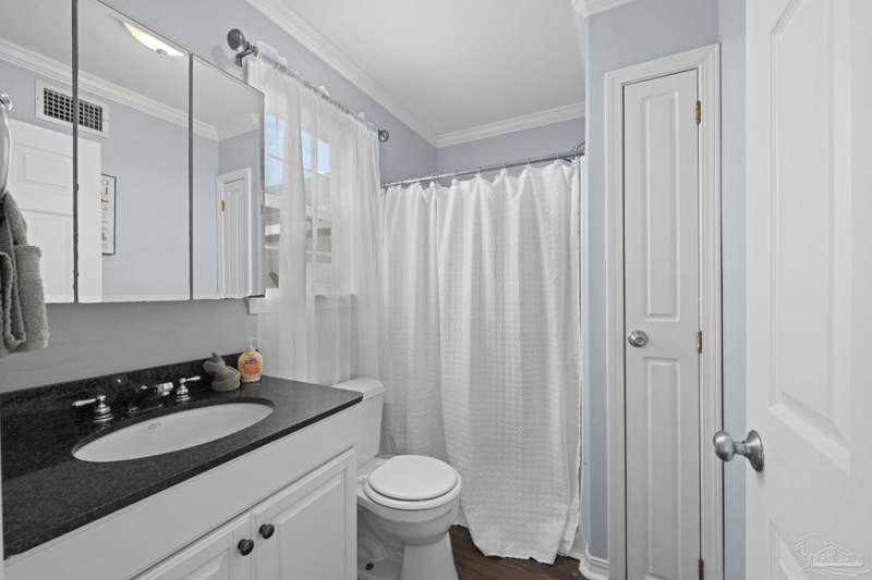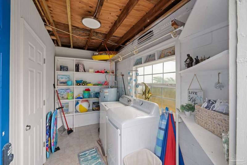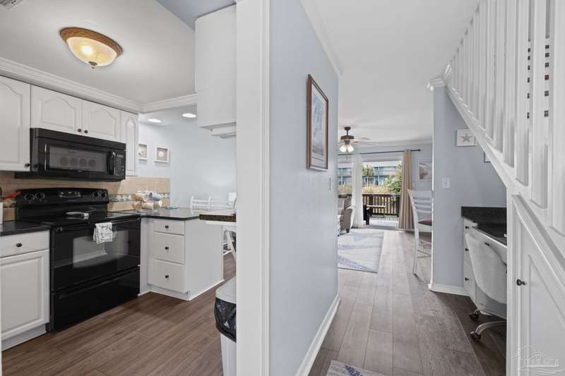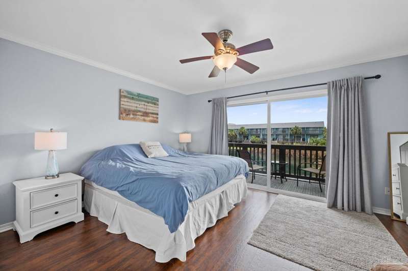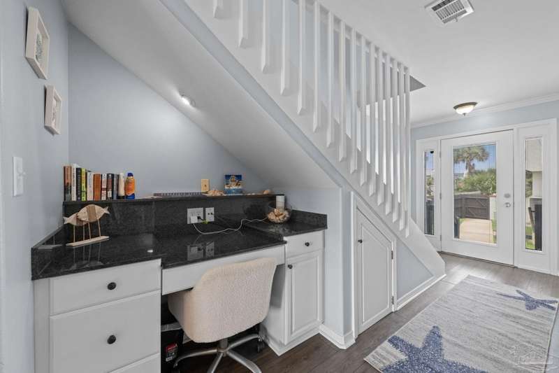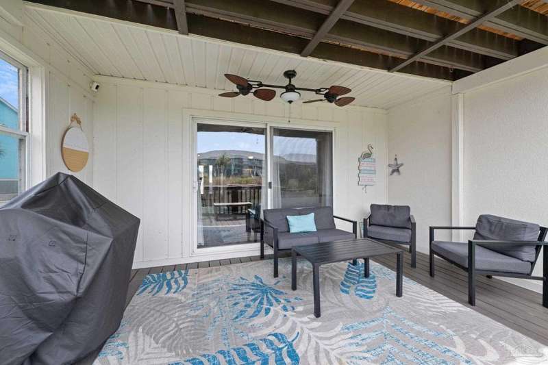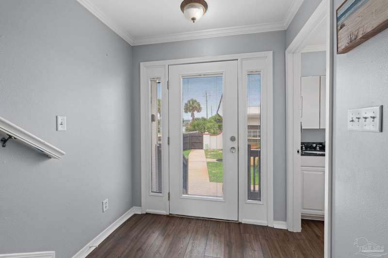 Welcome to your coastal retreat! This fully furnished, turn-key end unit townhome is located just a short, distance from the beautiful white sands of Pensacola Beach. Whether you're looking for a full-time home, vacation getaway, or income-generating rental, this thoughtfully maintained property offers flexibility, comfort, and convenience. Enter the home through your private courtyard, which features green space and a patio area perfect for visiting, relaxing, or grilling. This outdoor area provides a welcoming and private transition into the home. The home's layout is designed for both functionality and enjoyment. The downstairs level includes a spacious kitchen and living area offering views of the spring-fed lagoon. A dedicated work/study station is located just off the living room, providing a defined space for remote work, reading, or study. The deck off of the living area offers easy access to the back yard and beautiful views of the lagoon. Upstairs, the primary bedroom suite includes a beautiful view, an en-suite bathroom with double vanity, and ample storage. The primary suite opens to a spacious private deck for a quiet relaxation space. The second bedroom includes a double bed and a twin-over-full bunk, providing flexible accommodations for guests or family. The detached one-car garage includes laundry appliances and additional space to store beach equipment or personal items. Currently active on Airbnb, making it an attractive option for continued short-term rental use. It also transitions easily into a year-round residence.