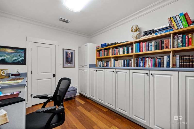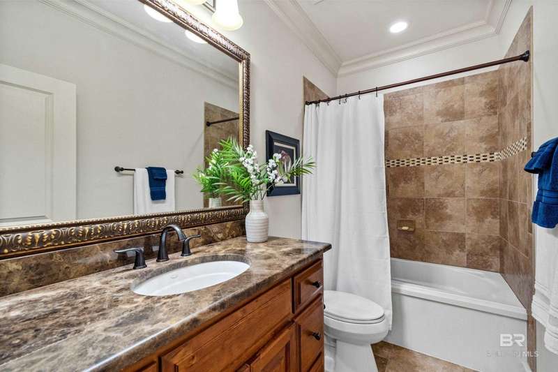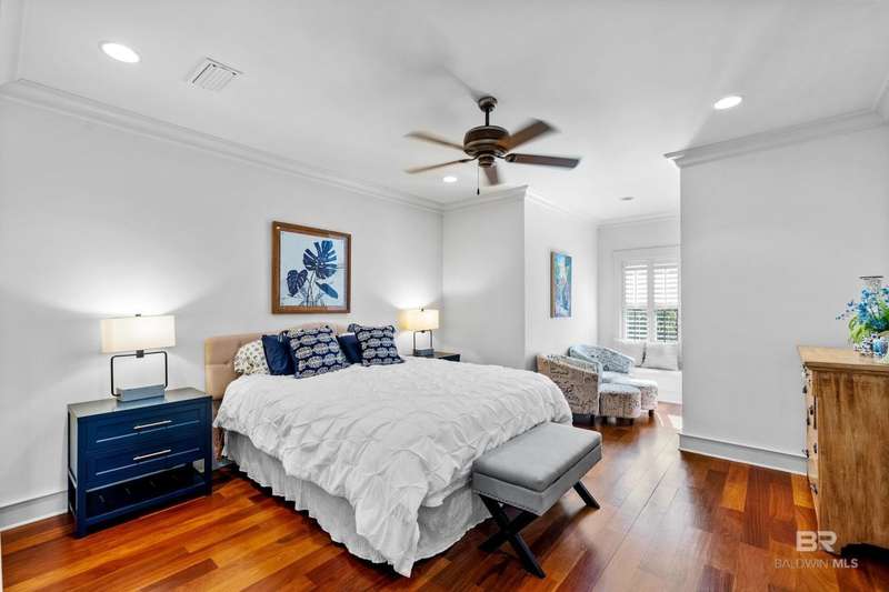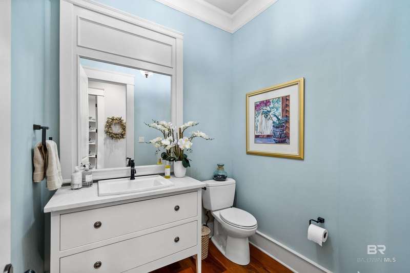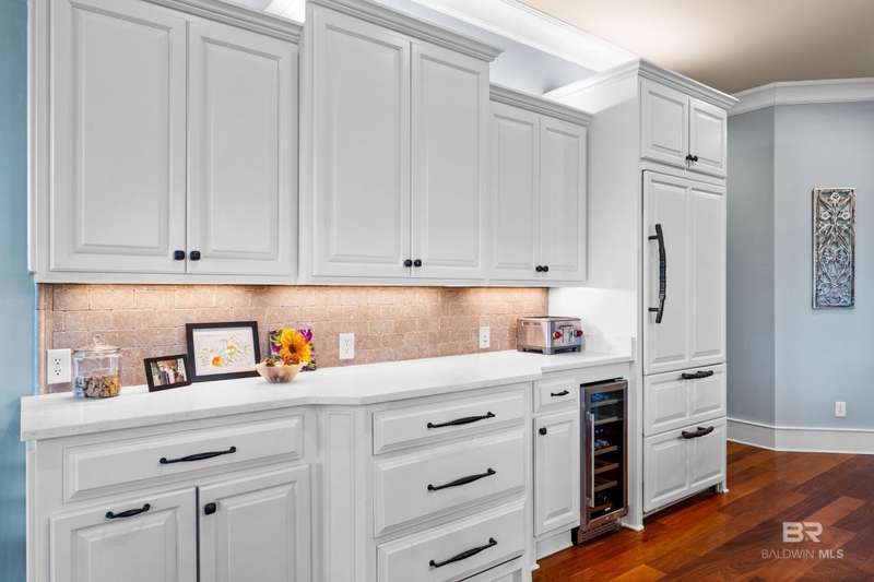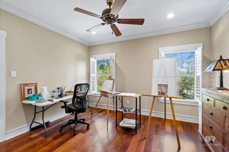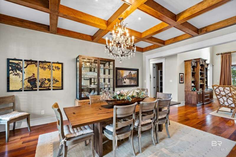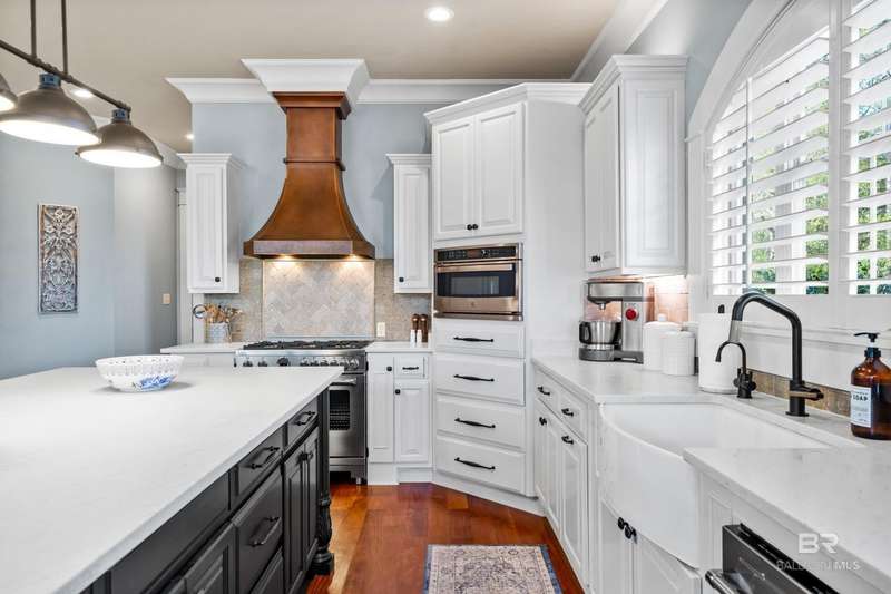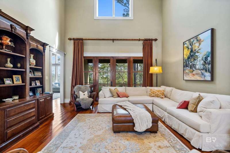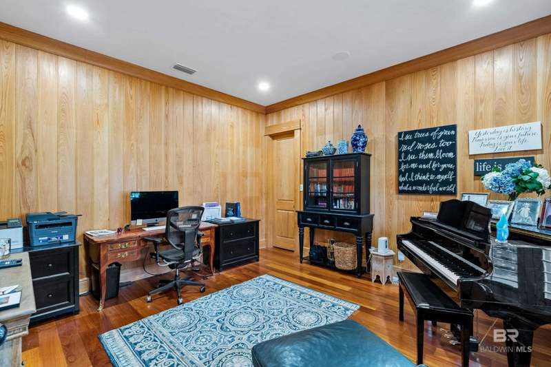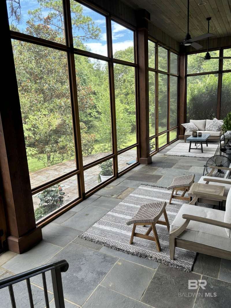 ONE-OF-A-KIND Home in Spanish Fort with new POOL! 2023 Fortified Roof and 35KW Whole House Generator! Stepping through the grand double doors, you're greeted by an architectural masterpiece that will leave you in awe. The soaring ceilings are adorned with custom-milled wood trusses, arched to create a sense of refined grandeur. Right away you will notice the attention to every detail from the solid teak floors, plantation shutters throughout the home, extensive custom trim work, beautiful lighting, coffered ceilings in the dining room and Cypress walls in the office. The expansive kitchen is open to the breakfast room and den with stone woodburning fireplace and more arched custom milled trusses with floor to ceiling windows and updated lighting fixtures. Recent kitchen updates include: Bertrazzoni 6 burner dual fuel range, GE speed cook oven, quartz countertops, wine fridge, modified and painted cabinets, new subway tile, on demand hot/cold water dispenser, and new Brizo faucet. The oversized primary bedroom retreat with two graciously sized walk-in closets and double-sided gas fireplace that can also be enjoyed in the luxurious en-suite bath. Upstairs you will find 3 additional bedrooms, 2 full bathrooms and an extra room with cabinets. The catwalk upstairs serves as both a functional passage and an eye-catching design element. This unique addition enhances the open concept of the home, allowing for breathtaking views of the living space below. Back porch is screened extending the living space outdoors. ADDITIONAL FEATURES: personal well for commercial grade irrigation, New LED landscape lighting, 3-car garage, double water filtration system, 3 Trane HVAC systems (one installed August 2025) with full-service contract, Custom built by Dan Mooney, located in the beautiful Blakeley Forest neighborhood in Spanish Fort. Buyer to verify all information during due diligence.