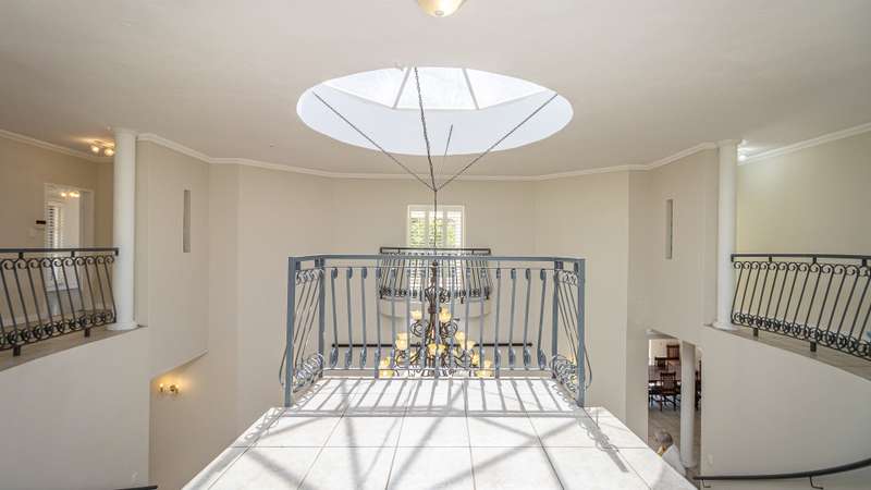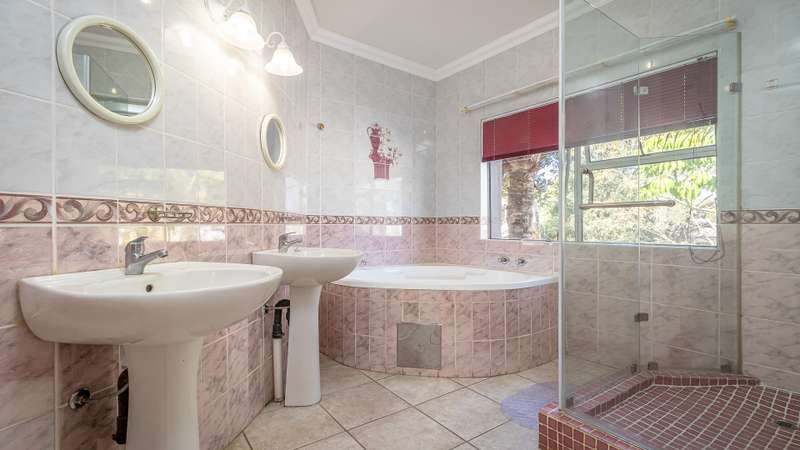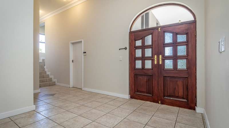 This spacious residence features four inviting living areas, perfect for relaxation and entertaining. Ascend to the top level to enjoy breathtaking panoramic views, along with five generously sized bedrooms and four well-appointed bathrooms for ultimate comfort. The kitchen is a culinary masterpiece, complete with a pantry, scullery, fixed stove, and ample cupboard space. Outside, you'll find a covered patio, inviting pool, and built-in braai area, ideal for al fresco dining in the South African sun. Convenience is key, with an automated double garage and staff accommodation included. The home is also environmentally friendly, featuring 6 x 545W solar panels, 2 x 3kWh Piontek batteries, and a 7 kVA inverter for energy efficiency. Don’t miss your chance to own this exceptional Waterkloof Ridge residence, where luxury, comfort, and modern living come together seamlessly. Experience gracious living in this magnificent property.