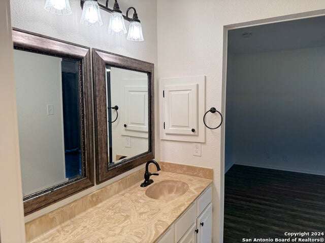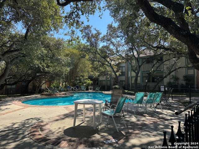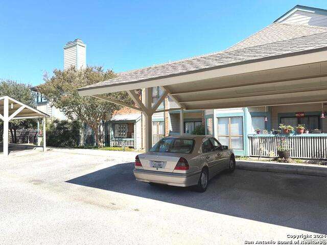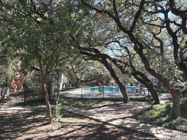 GROUND FLOOR ENTRY LEVEL - SINGLE STORY Nice unit with some updates in the kitchen - granite counters and newer stainless steel appliances. Walking trails and mature landscaping surround this unit. Covington Oaks offers a pool area, a clubhouse, and a gated entrance. The laundry room is inside and will accommodate a washing machine and a dryer. One covered parking space is provided for the homeowner and many additional parking spaces for guests. The bathroom is set up with 2 separate vanities (Jack and Jill style) and has a walk-in shower. The primary bedroom has a large walk-in closet. The 2nd bedroom has a private patio. There is another patio off the dining room that has a storage closet. Lots of shopping in the area and the unit is close to USAA, the medical center. and UTSA.