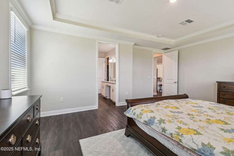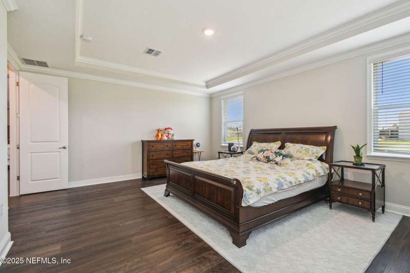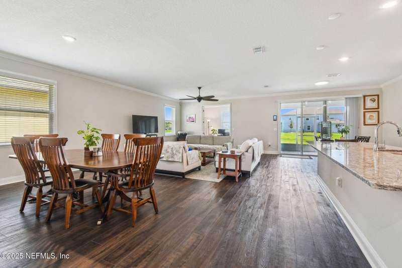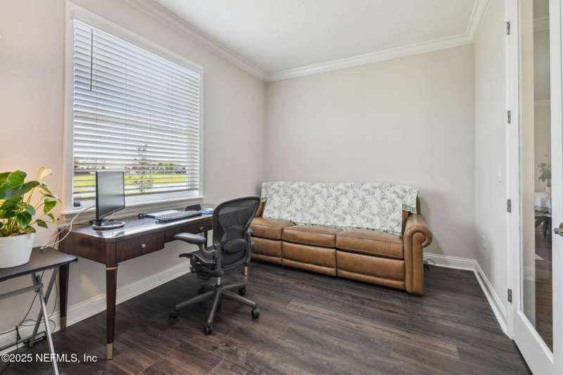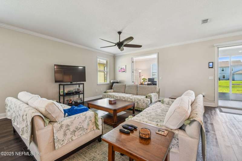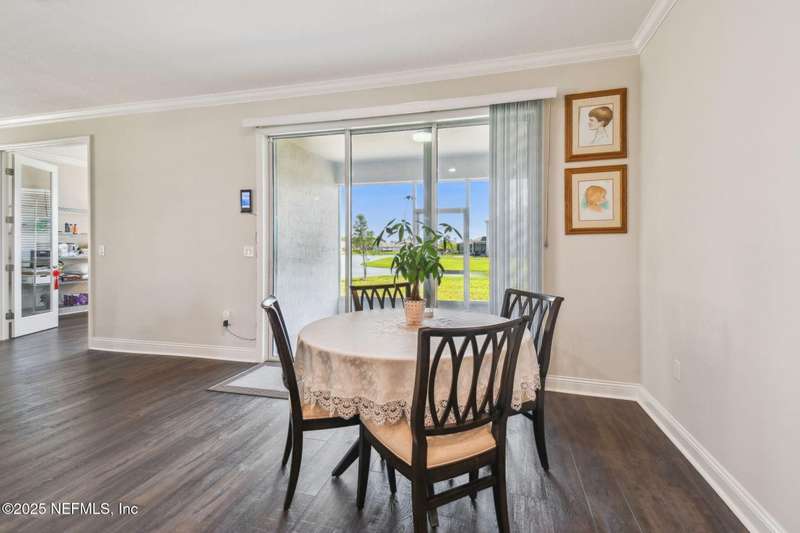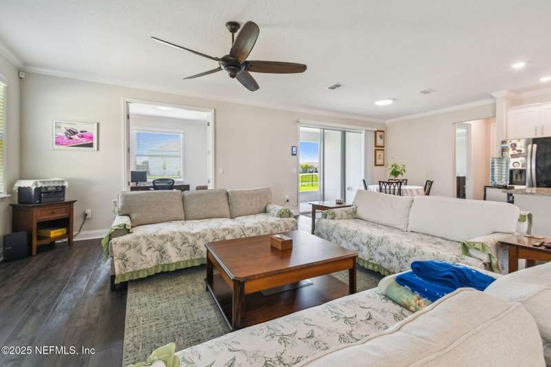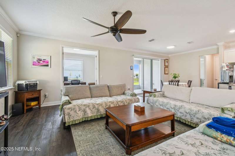 Welcome to this stunning 4-bedroom, 3 bath home with two primary suites in beautiful St Augustine, just minutes from downtown and I-95. This spacious residence features all vinyl plank flooring throughout and includes a versatile flex space perfect for a home office. The gourmet kitchen boasts a massive island, ideal for entertaining, and opens to a living space with serene water views. Enjoy your mornings and evenings on the screened lanai overlooking the water and nature.The main primary suite offers a luxurious retreat with a soaking tub, separate shower and large walk in closets. A 3-car garage includes an electric car charger for your convenience.The home is equipped with keyless entry, a whole house water filtration system and high speed fiber internet.Located in a community with low HOA that includes access to a pool and park. Don't miss this move-in ready home combining comfort, technology and a prime location.