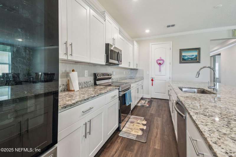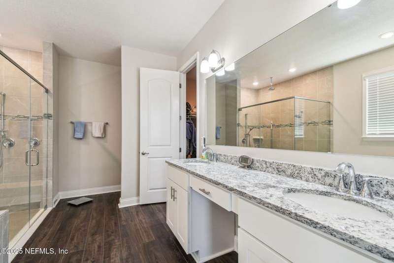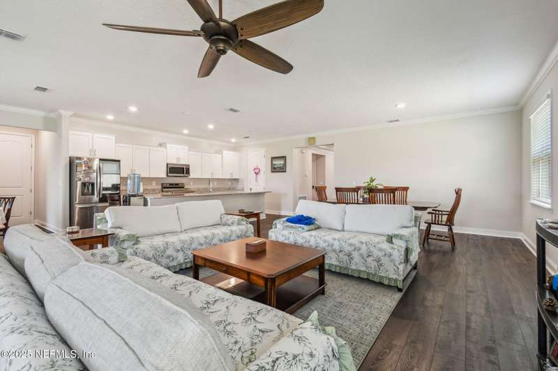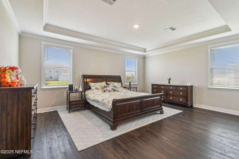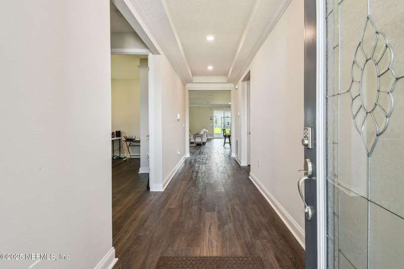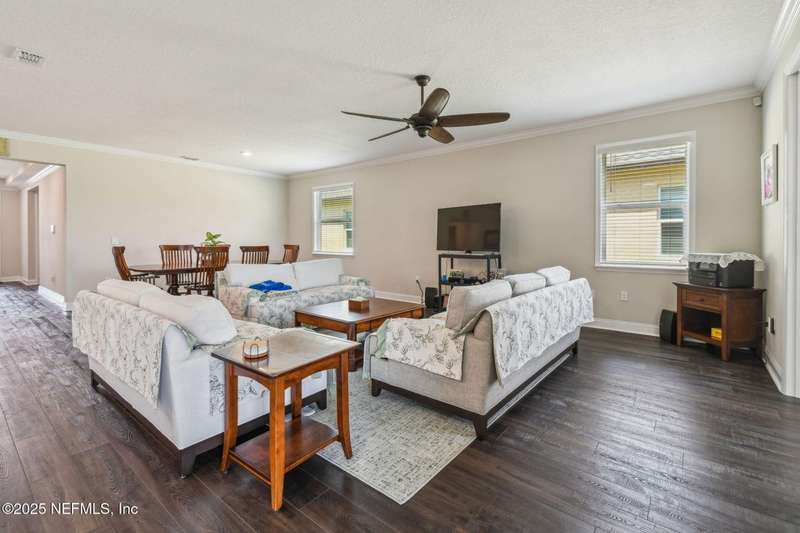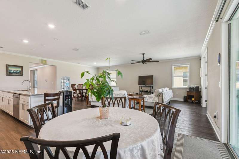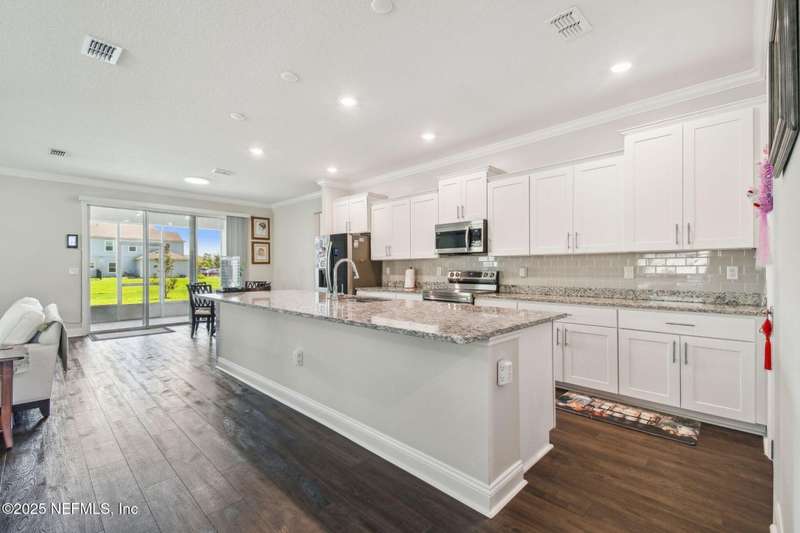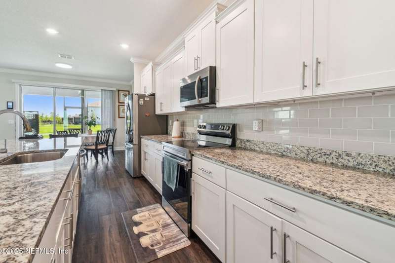 Welcome to this stunning 4-bedroom, 3 bath home with two primary suites in beautiful St Augustine, just minutes from downtown and I-95. This spacious residence features all vinyl plank flooring throughout and includes a versatile flex space perfect for a home office. The gourmet kitchen boasts a massive island, ideal for entertaining, and opens to a living space with serene water views. Enjoy your mornings and evenings on the screened lanai overlooking the water and nature.The main primary suite offers a luxurious retreat with a soaking tub, separate shower and large walk in closets. A 3-car garage includes an electric car charger for your convenience.The home is equipped with keyless entry, a whole house water filtration system and high speed fiber internet.Located in a community with low HOA that includes access to a pool and park. Don't miss this move-in ready home combining comfort, technology and a prime location.