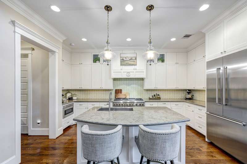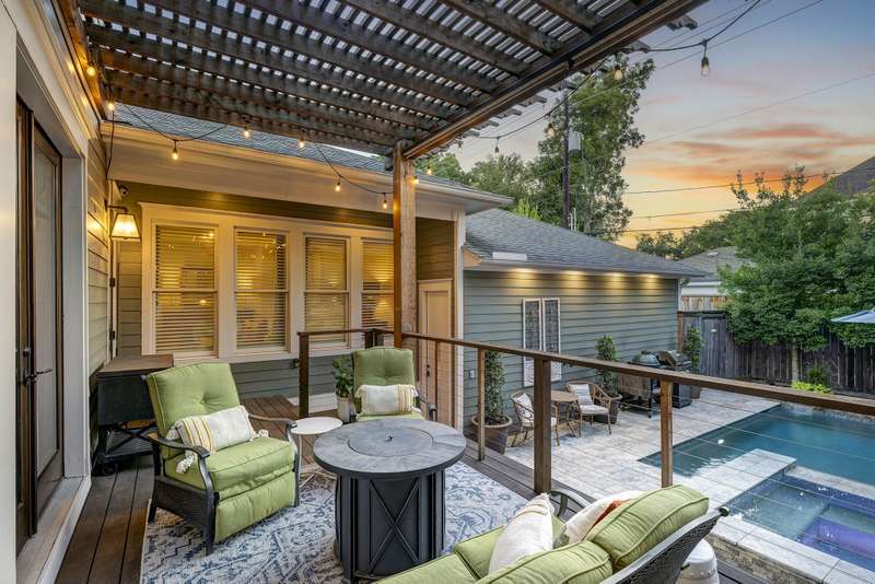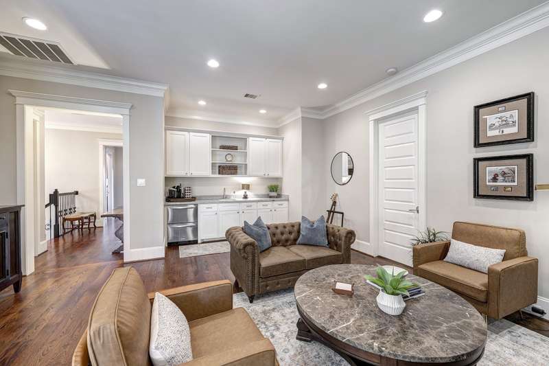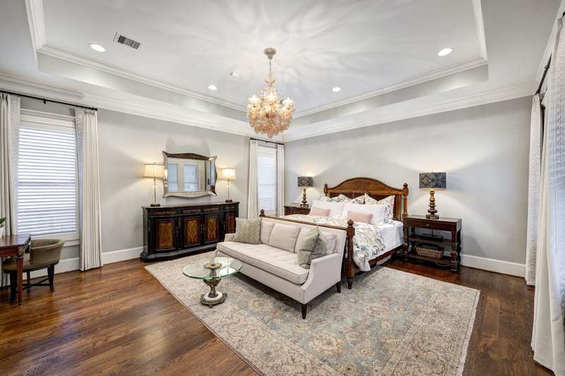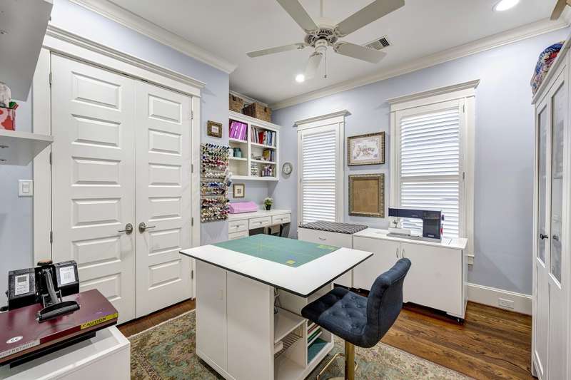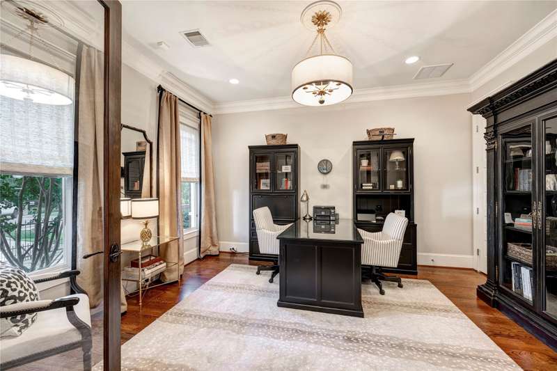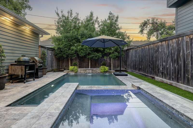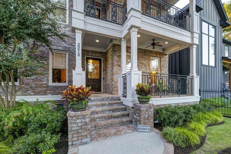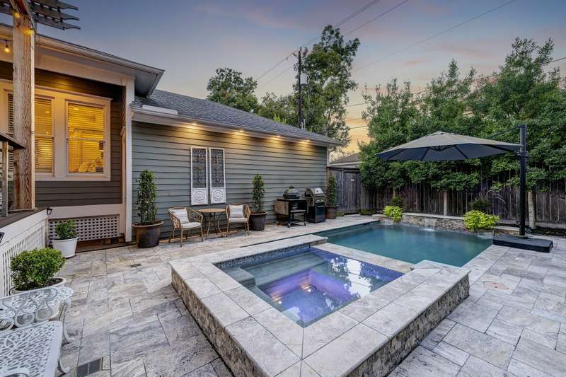 Spectacular Heights home features 4/5 bedrooms-4 baths, pool + primary bedroom down. Fully fenced. Hardwood floors, stunning light fixtures and plantation shutters/window treatments. Gourmet kitchen offers granite counters, island, s/s appliances and walk-in & butler pantries. Family room with vaulted ceiling is the perfect spot to enjoy everyday living. Dining room is set for holiday gatherings. Front living room is an ideal space to enjoy quiet conversations. Large study is a true home office. Primary bedroom suite with tray ceiling and sitting area is well-appointed with a spa-like bath with double sinks, soaking tub, walk-in shower and 2 two walk-in closets. Climate controlled wine cellar can house 300+ bottles. Upstairs includes a secondary bedroom with en suite bathroom, 2 other secondary bedrooms, hallway bath, gameroom with wet bar + media room. Backyard oasis with pool/spa, pergola/deck. Two car oversized attached garage. Extra off-street front parking w/ automatic gate.