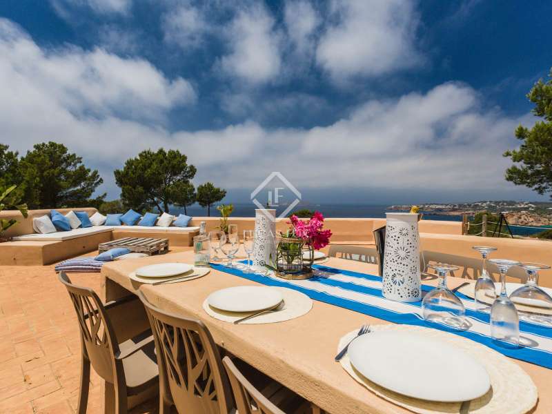 This charming semi-detached house boasts stunning sea views over S’Esparta from its prime location near Cala Tarida, Ibiza. The 138 m² property features four spacious double bedrooms, two of which are en-suite, along with a family bathroom. The open-plan living area seamlessly flows into a beautifully landscaped 875 m² garden, complete with an infinity pool, barbecue area, Balinese bed, and inviting chill-out zones. A 120 m² rooftop terrace offers breathtaking panoramic views. Situated within a secure community, residents enjoy access to shared gardens, a tennis court, and a pool. The property is just a short stroll from Cala Tarida and Cala Moli, and only a 10-minute drive from San Jose. For more details or to schedule a viewing, please don’t hesitate to contact us.