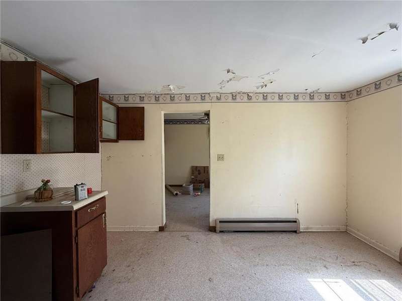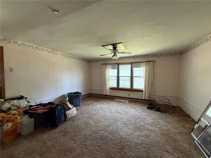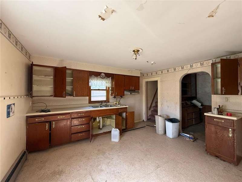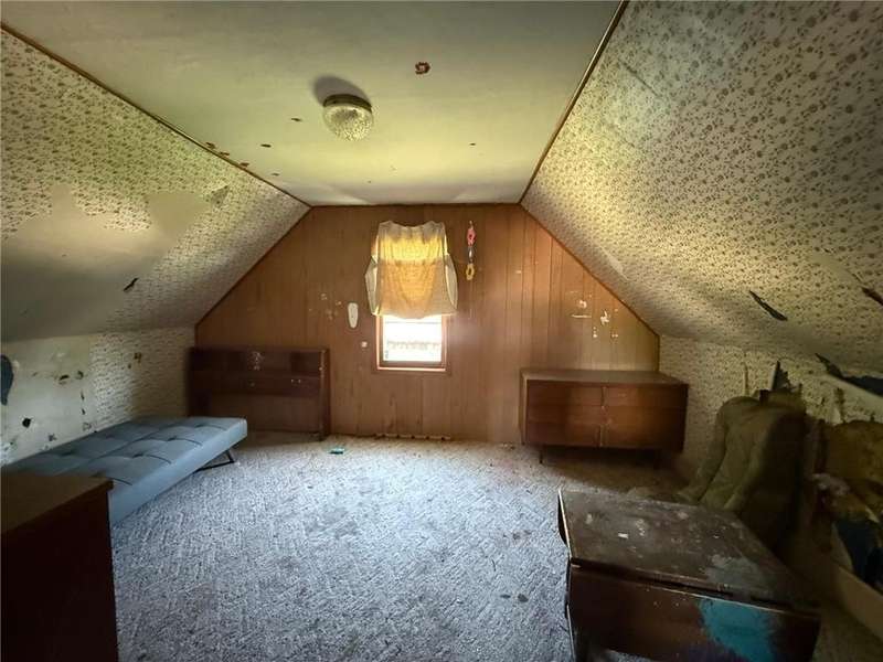 Opportunity knocks! This charming property offers a fantastic chance to build equity with some TLC. Perfect for investors or handy buyers looking for their next project, this home sits on a large, beautiful lot with plenty of outdoor space to enjoy or expand upon. The exterior already has a great start with vinyl siding, updated shingles, and some newer windows. Inside, you'll find a welcoming front porch, a spacious living room, a full bathroom on the main level, and an open kitchen/dining area ready for your personal touch. The large laundry/back entry space has great potential and could easily be converted into a second bedroom or office. Upstairs, a flexible landing area offers the perfect space for a playroom, office, or second living space and leads to a private bedroom. The unfinished basement is a blank canvas—add bedrooms, a family room, or extra storage to maximize value. With solid bones and room to grow, this property is the perfect canvas for your vision. Don’t miss your chance to bring this home back to life! This property is being sold AS-IS.