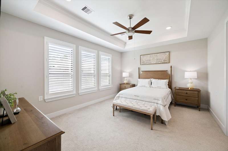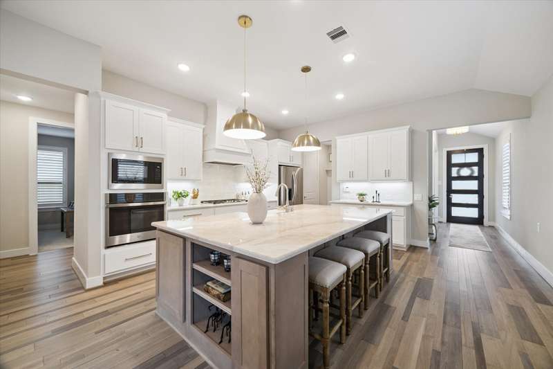 Shows like a model home, meticulously maintained, this one-story residence in Fairway Pines is filled with many upgrades! Designed for easy living, the open floor plan features upgraded wood flooring, high ceilings, wood plantation shutters throughout, chef’s kitchen with an oversized Taj Mahal quartzite island, 36" cooktop, custom vent hood, SS appliances, water softener, and so much more! (See attached upgrade list.) The primary suite includes a tray ceiling and spa-like bath, 2 walk-in closets, oversized shower, double sink vanity. Fairway Pines is a premier 55+ community, with exclusive access to The Hideaway Clubhouse. HOA dues include internet and front yard maintenance. As well as The Highlands amenities, featuring a fitness center, resort-style pool, waterpark and lazy river, tennis and pickleball, 18-hole golf course, driving range, lakes, 200-acre natural preserve, 30+ miles of trails, playground, event lawn, patio with fire-pit, and beautifully maintained green spaces.