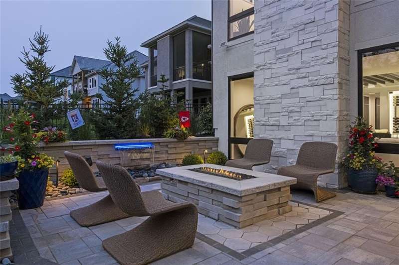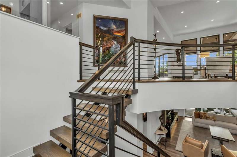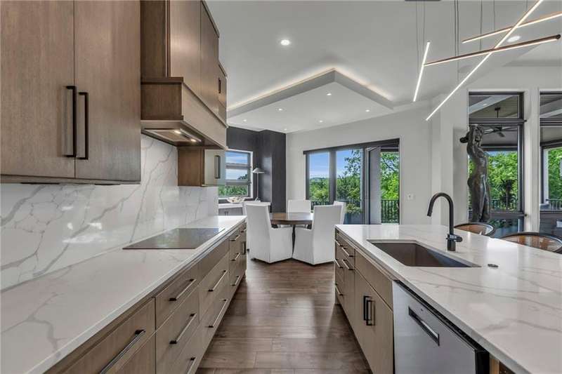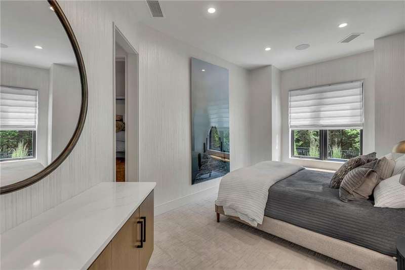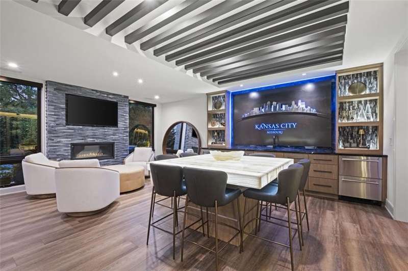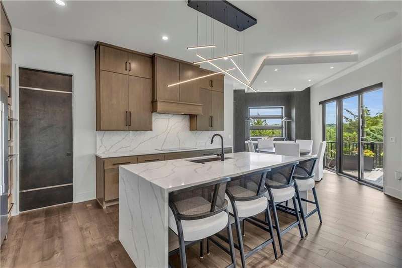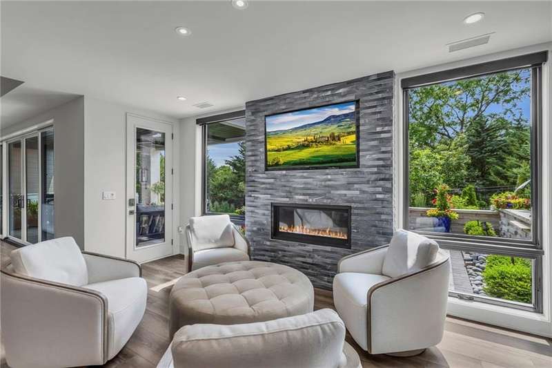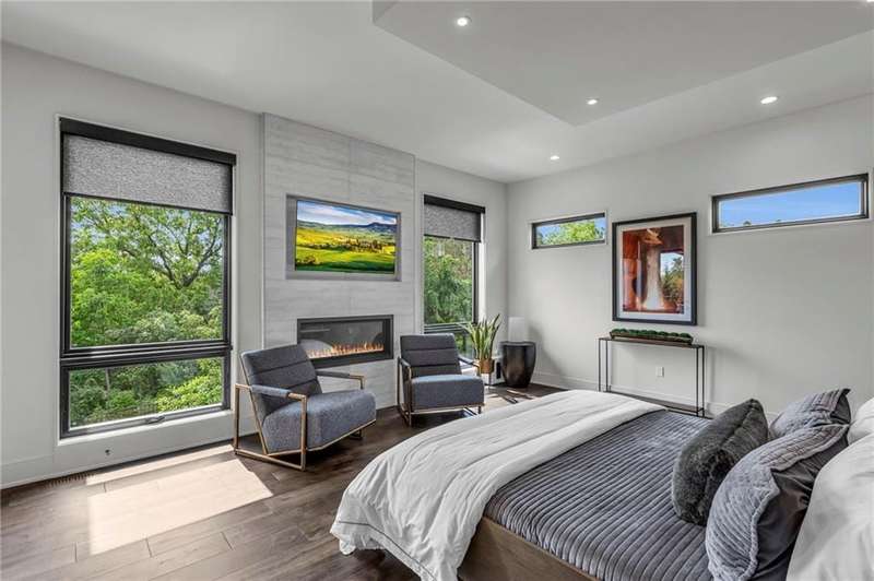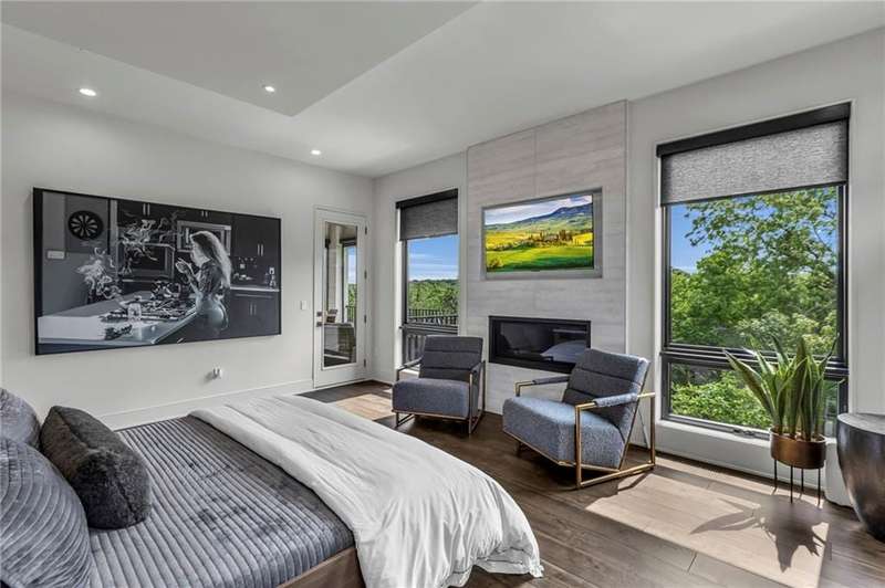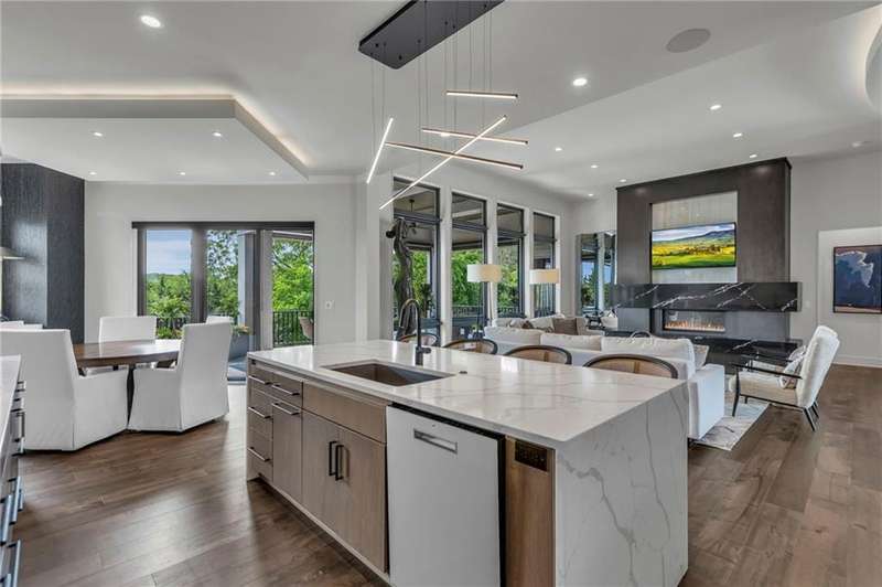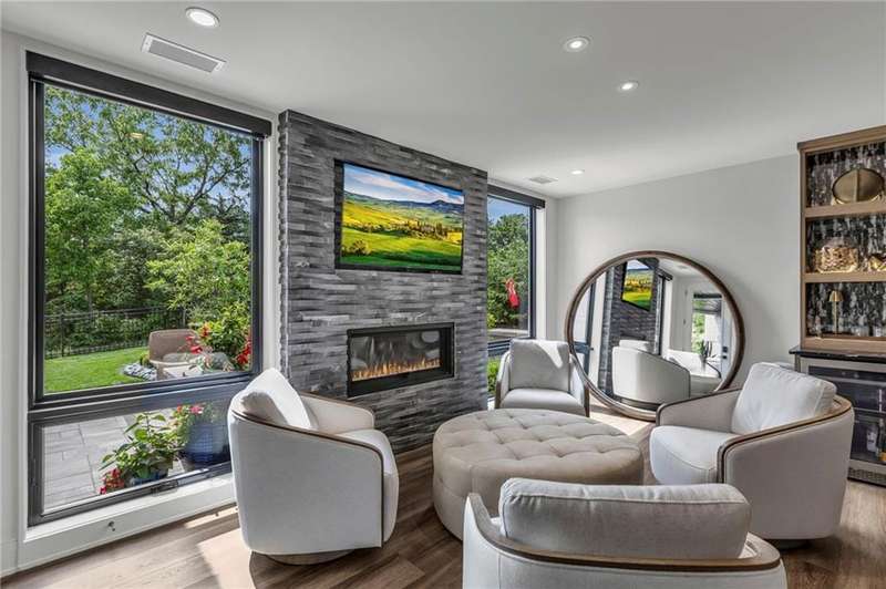 CONTEMPORARY AND LUXURY describes this Artisan designed home built by Casa Bella! A true masterpiece bringing in amazing architecture while touching all your senses! The 2 story water fall greets you at the entry along w/ dramatic ceiling, lighted walkway, leading to the great room w/ marble fireplace surround, back lit quartzite, floor to ceiling windows. The treed back drop is inviting & covered deck has new automatic screens. The Gourmet Kitchen has Carrera Marble island w/ waterfall edge, Frigidaire Refrigerator / Freezer, Cafe Induction Stove Top, Bosch Dishwasher, Cafe oven, Advantium microwace along w/ 2nd oven in the back pantry. Grill deck is a bonus feature right off the pantry. Perfectly positioned study w/ glass panels to bring in the light but nice and quiet for privacy. The Spa-like primary bath has marble floors, double headed shower w/ glass surround, soaking tub, large double vanity w/ plenty of cabinets. Primary bedroom includes built in headboard, king bed & side tables AND a beautiful view to the covered deck & backyard w/ fireplace for those chilly evenings. As you walk down the floating steel staircase w/ solid wood stairs, prepare to be WOW'd as the lower level is an Entertainer's Dream. Back wet bar w/ beverage frig & refrigerator drawer & ice/freezer drawer. The quartzite counter lit island is in perfect position for wine tastings next to the wine feature wall. The 3rd fireplace is the perfect conversation area while the media space is ample and comfortable. You can walk right out to the covered patio & enjoy the fire pit, lush fenced backyard and privacy. 3 bedrooms w/ 2 1/2 baths on the LL. The home gym is amazing space with storage tucked away. Pet Lovers will enjoy the Dog House. 8' deep chocolate modern interior solid wood doors w/ metal inlays, paved stone driveway, Fire & Water feature front and back, epoxy'd garage floor, remote blinds on front entry & sliding back door. Hot tub is negotiable.
