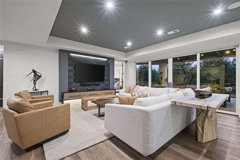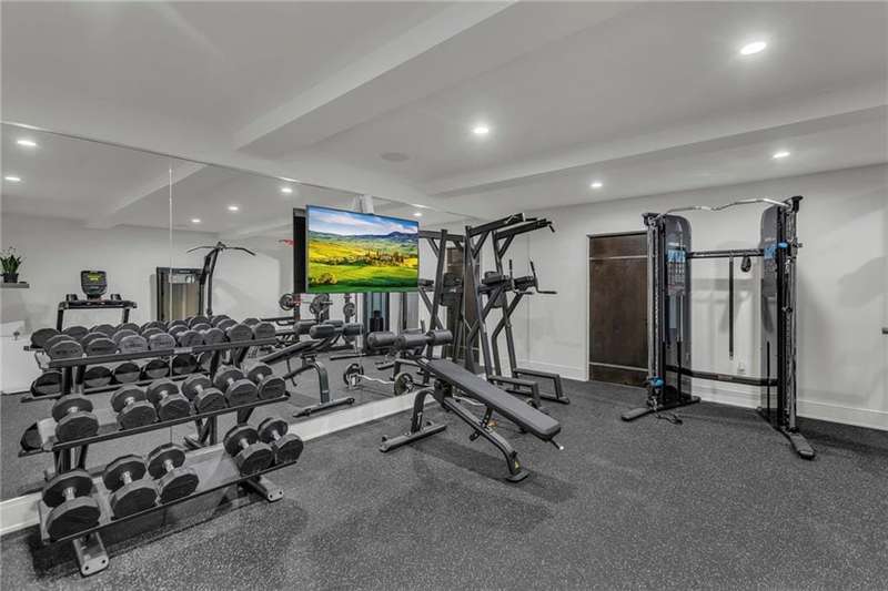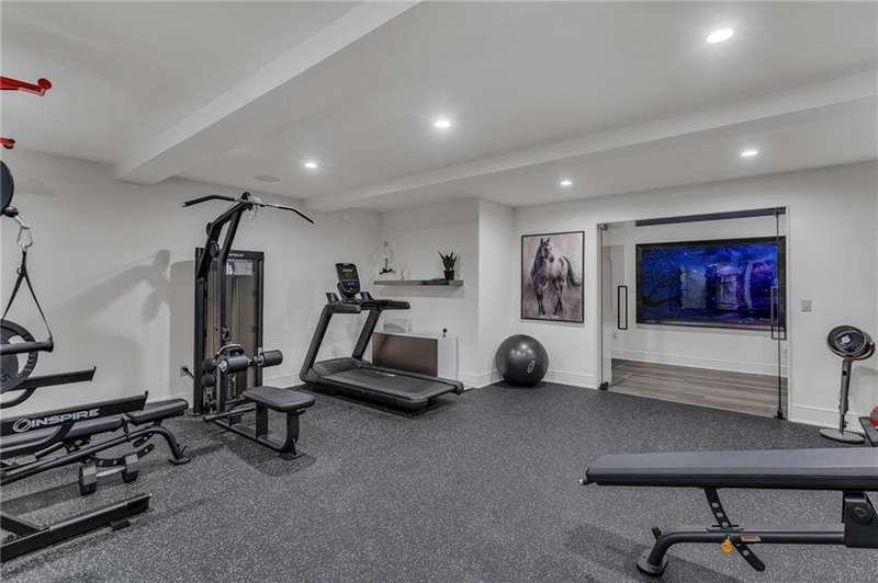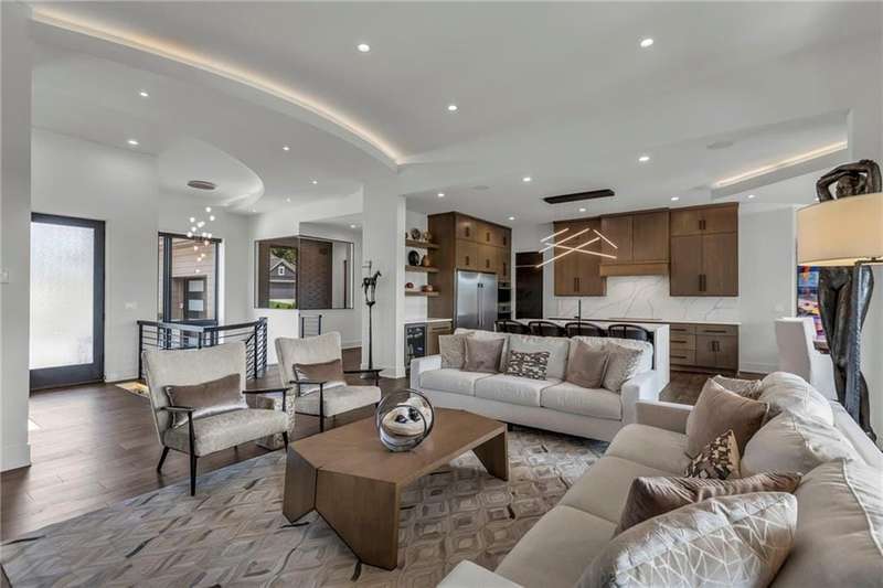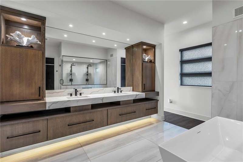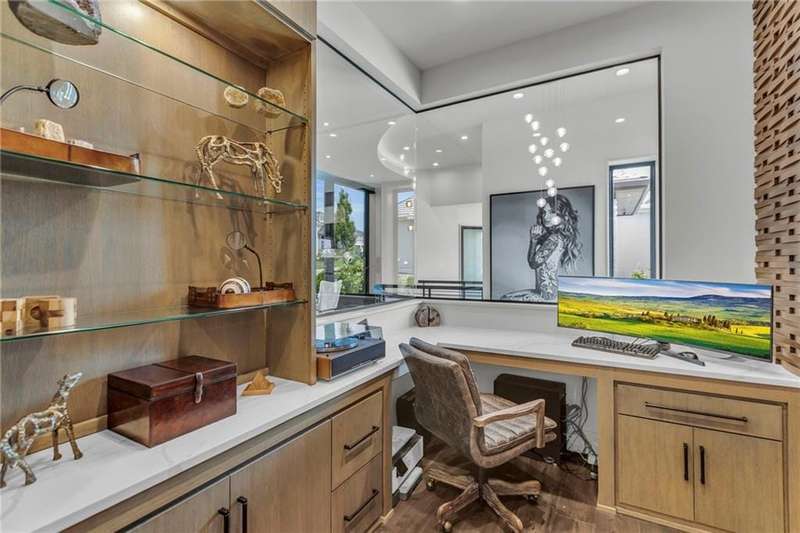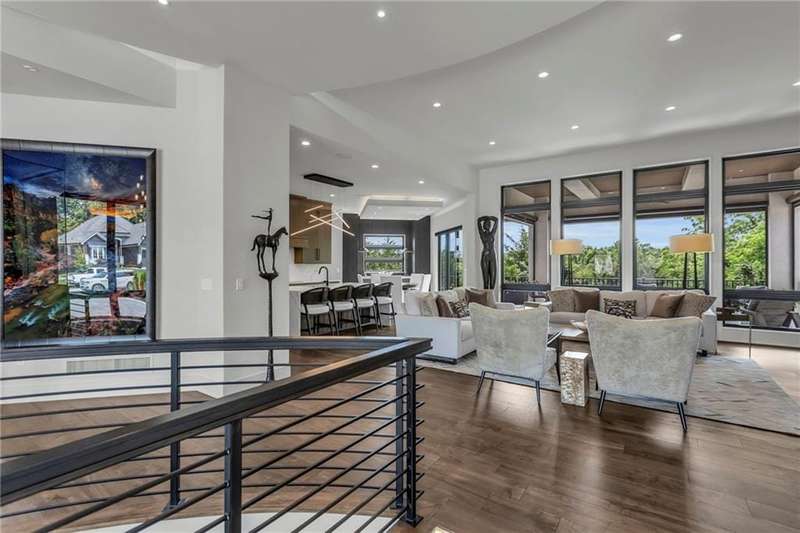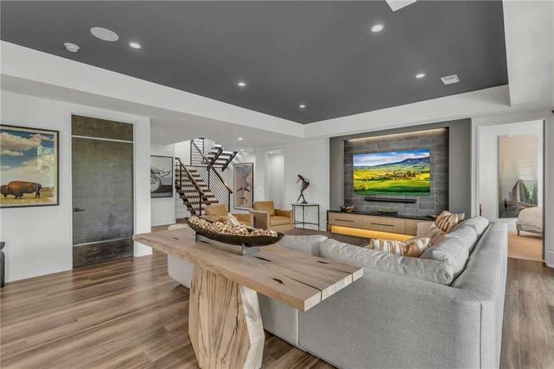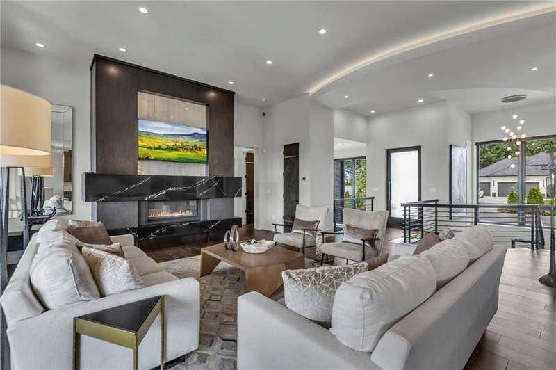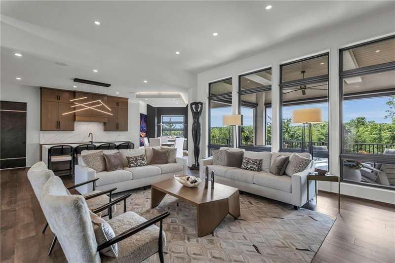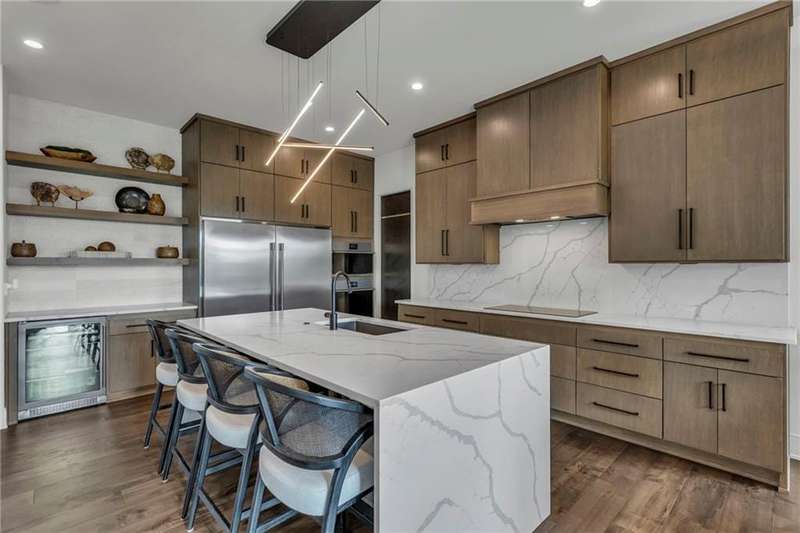 CONTEMPORARY AND LUXURY describes this Artisan designed home built by Casa Bella! A true masterpiece bringing in amazing architecture while touching all your senses! The 2 story water fall greets you at the entry along w/ dramatic ceiling, lighted walkway, leading to the great room w/ marble fireplace surround, back lit quartzite, floor to ceiling windows. The treed back drop is inviting & covered deck has new automatic screens. The Gourmet Kitchen has Carrera Marble island w/ waterfall edge, Frigidaire Refrigerator / Freezer, Cafe Induction Stove Top, Bosch Dishwasher, Cafe oven, Advantium microwace along w/ 2nd oven in the back pantry. Grill deck is a bonus feature right off the pantry. Perfectly positioned study w/ glass panels to bring in the light but nice and quiet for privacy. The Spa-like primary bath has marble floors, double headed shower w/ glass surround, soaking tub, large double vanity w/ plenty of cabinets. Primary bedroom includes built in headboard, king bed & side tables AND a beautiful view to the covered deck & backyard w/ fireplace for those chilly evenings. As you walk down the floating steel staircase w/ solid wood stairs, prepare to be WOW'd as the lower level is an Entertainer's Dream. Back wet bar w/ beverage frig & refrigerator drawer & ice/freezer drawer. The quartzite counter lit island is in perfect position for wine tastings next to the wine feature wall. The 3rd fireplace is the perfect conversation area while the media space is ample and comfortable. You can walk right out to the covered patio & enjoy the fire pit, lush fenced backyard and privacy. 3 bedrooms w/ 2 1/2 baths on the LL. The home gym is amazing space with storage tucked away. Pet Lovers will enjoy the Dog House. 8' deep chocolate modern interior solid wood doors w/ metal inlays, paved stone driveway, Fire & Water feature front and back, epoxy'd garage floor, remote blinds on front entry & sliding back door. Hot tub is negotiable.