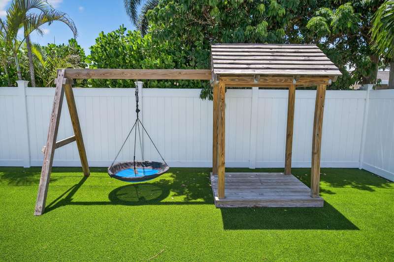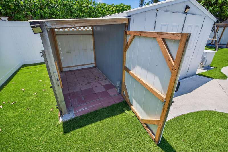 Charming 4-Bedroom Home with Pool in Prime Jupiter Location - No HOA! This clean and move-in-ready 4-bedroom, 2 bath home offers versatile living with a private den or sitting room off the primary suite--perfect for a home office, nursery, or quiet retreat. Enjoy Florida living at its best with a beautifully maintained backyard featuring a sparkling pool, low-maintenance turf, a kids' playset, and a fully fenced yard. Two storage sheds with electricity provide ample space for hobbies, tools, or additional storage.The home features impact glass on all windows and doors, a screened/enclosed patio, and a large, shaded front yard with a beautiful mature tree. Recent upgrades include a new metal roof (2020), A/C (2022), and hot water heater (2018). A generator pad with a propane tank hookup