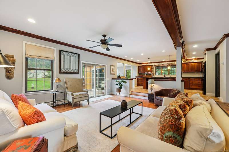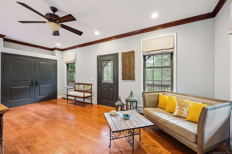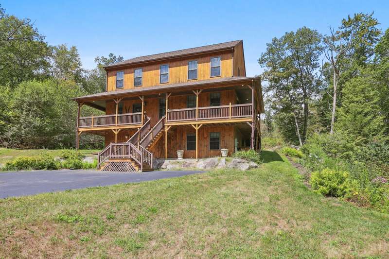 One of a kind 4 bedroom/3.5 bathroom home in Salem with total privacy and convenient location on 3 acre lot surrounded by lawns, gardens and woods. This custom home was built in 2010. The long winding driveway leads to a colonial farmhouse with full wrap-around porch and detached two-car garage/workshop. The house features an open floor plan with a large kitchen island, perfect for entertaining with beautiful hardwood floors throughout. Large rear deck and lawn offers space for outdoor dining surrounded by nature. Full in-law suite double french door entrance opening to front lawns, dedicated parking, separate kitchenette, laundry and full bathroom. There are tasteful design features throughout this magnificent home on all three levels. Must see it in person to fully appreciate this unique home.