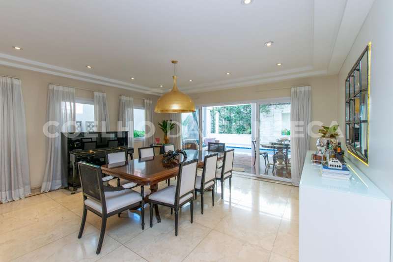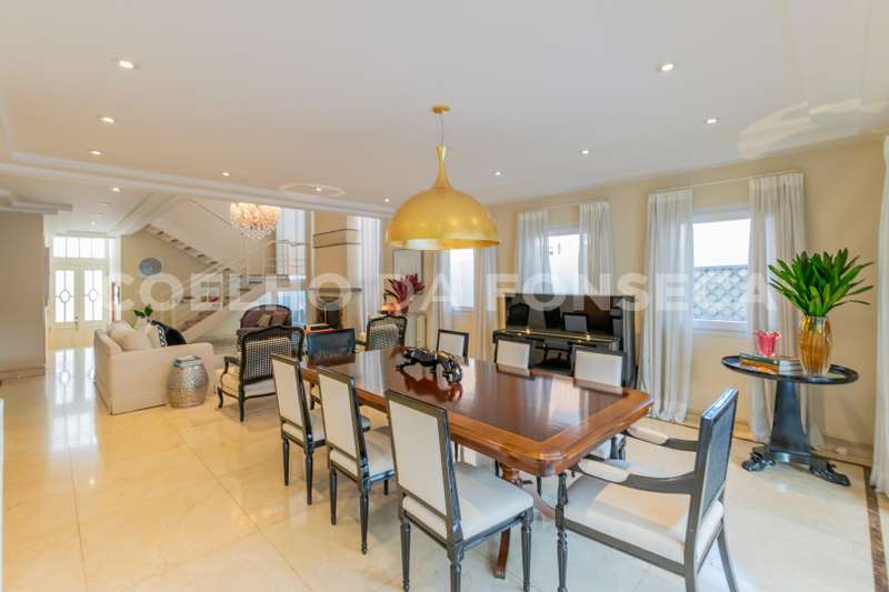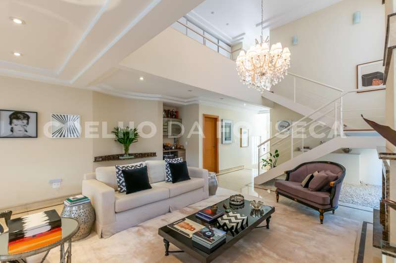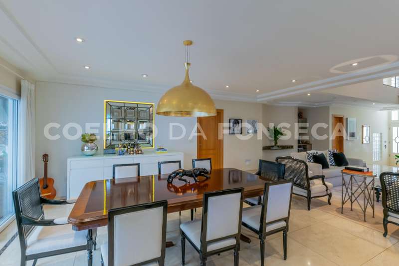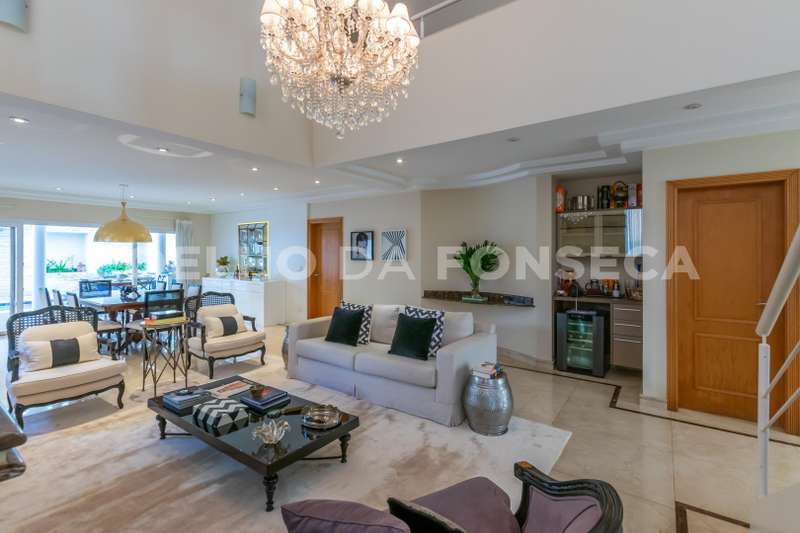 Lindo imóvel no bem situado Alpha 3, com arquitetura clássica e ótimo acabamento. Living com pé direito duplo, ambiente integrado, ótimo lazer e piscina. Possui 4 amplas suítes, sala intima no andar superior, home theater e escritório.