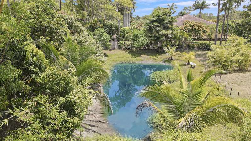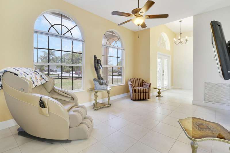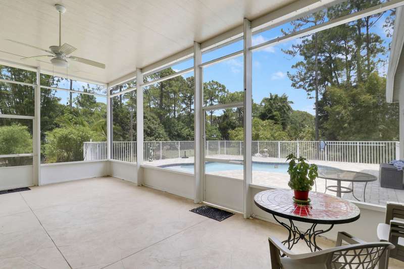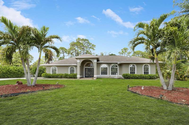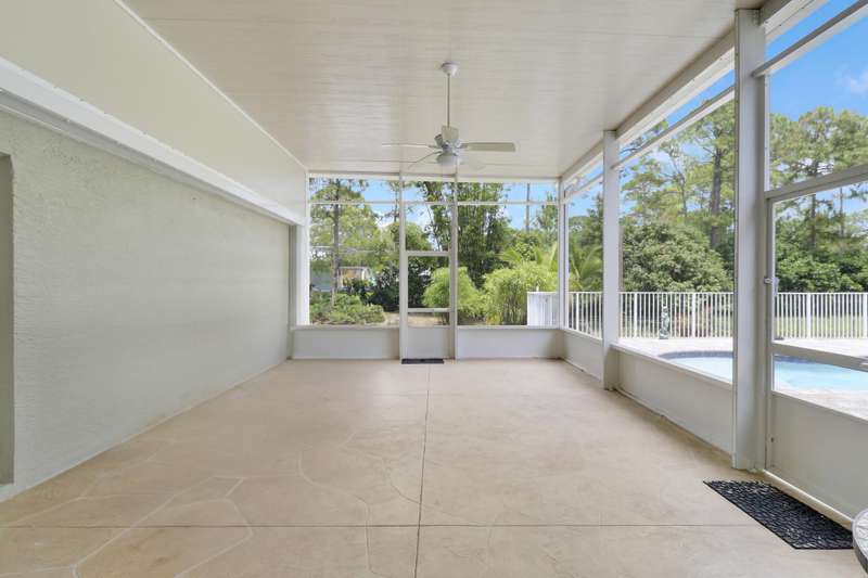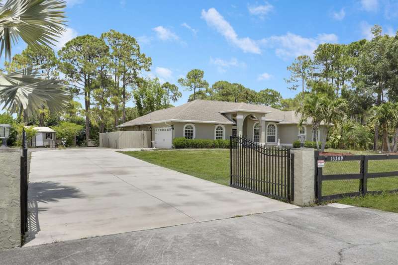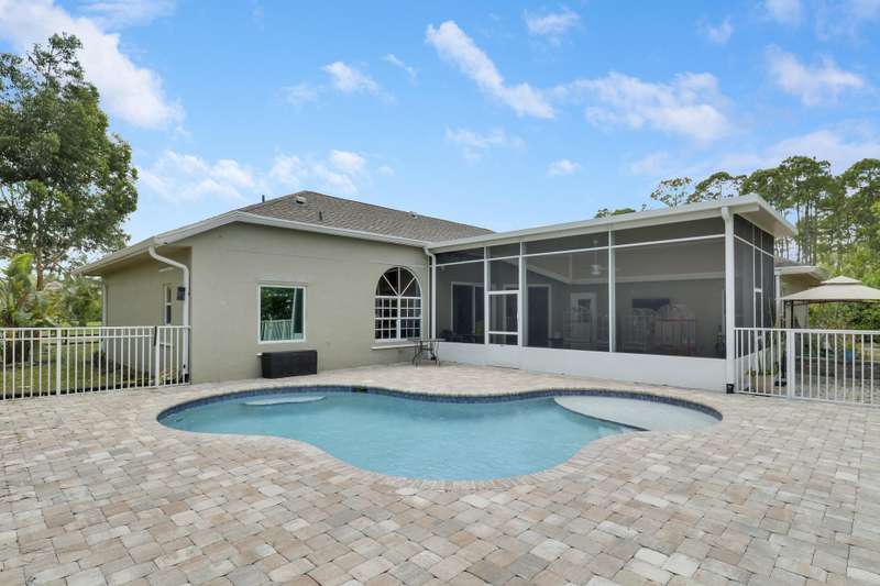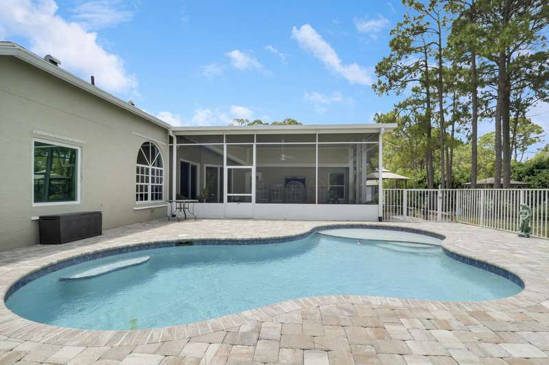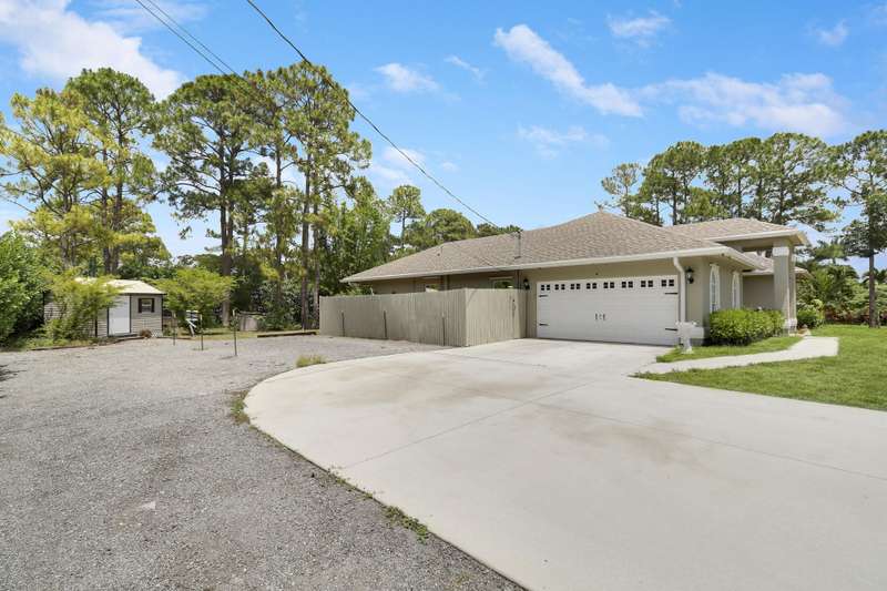 BOM: thru no fault of Seller/Ppty. (Buyer lost Job) HIGH & DRY on a Paved Rd. in the Acreage, this Fully Fenced & Gated Pool Home with Fruit Trees is on a lushly wooded 1.37 acre lot with a Pond. Xtra parking for RV or boats, with separate 50 amp box. No HOA. Included is an outdoor Aviary & a Ted Shed/She Shed with Electric & A/C. Lots of Natural Light pours through the Palladian Windows of this 4BR/2BA/2CG updated home. Remodeled kitchen boasts modern Quartz Countertops, Storage Galore & Newer Appliances. Tile Flooring throughout. The large screened-in porch by the fenced pool area offers many entertaining possibilities! Complete Panel Storm Shutters & 2 Impact Sliders (to Patio Area), as well as Primary Bath Impact Window. Enjoy Country Living at its BEST!!