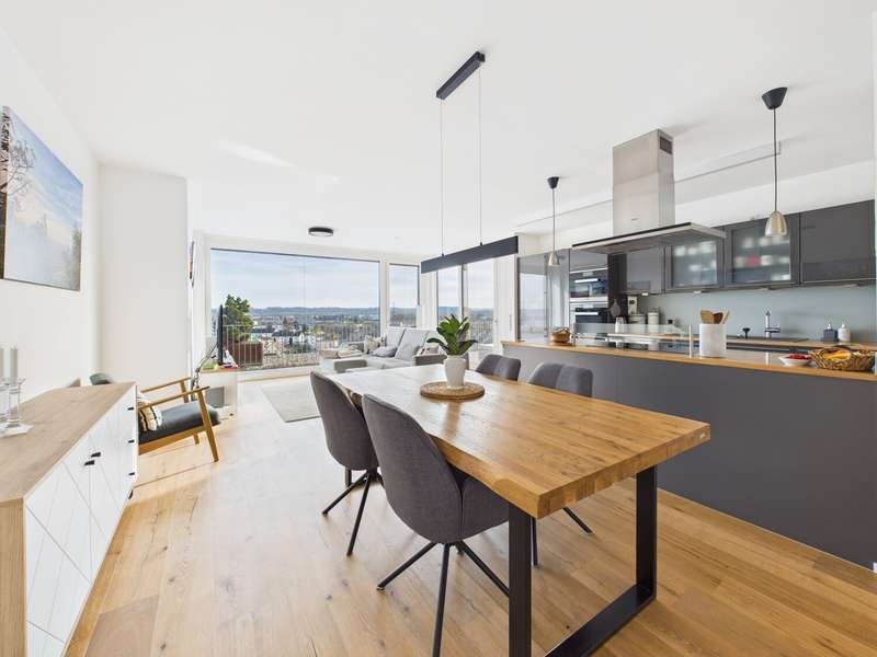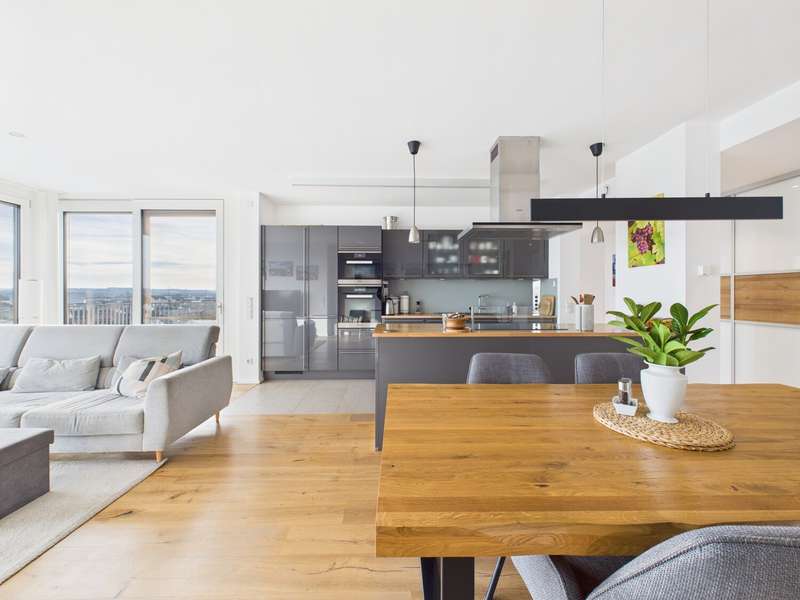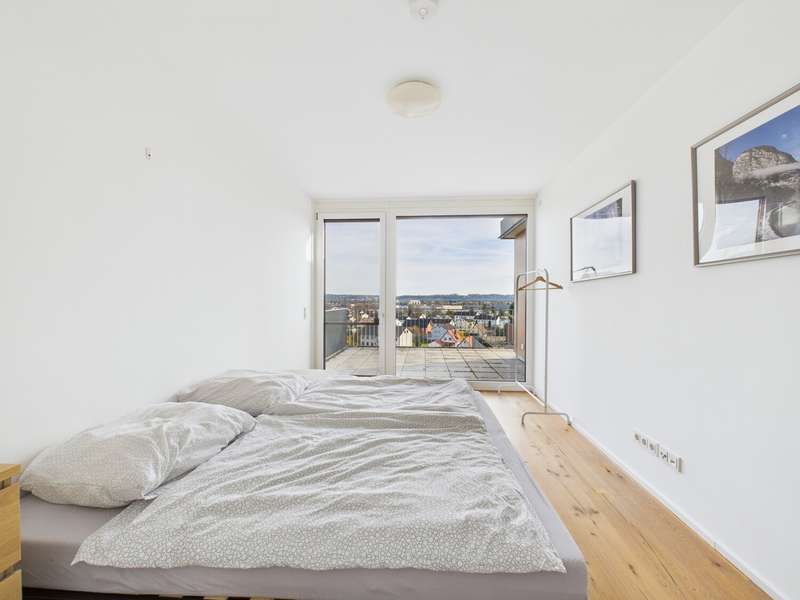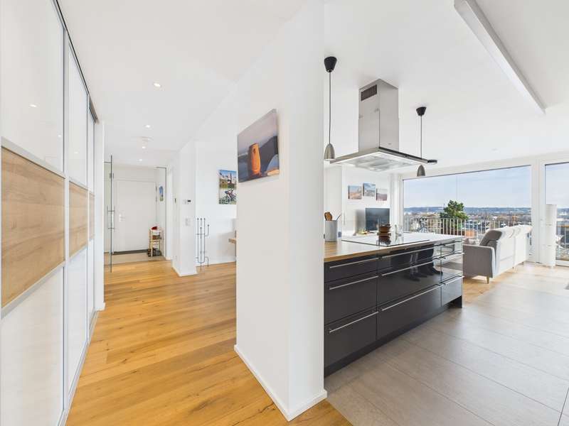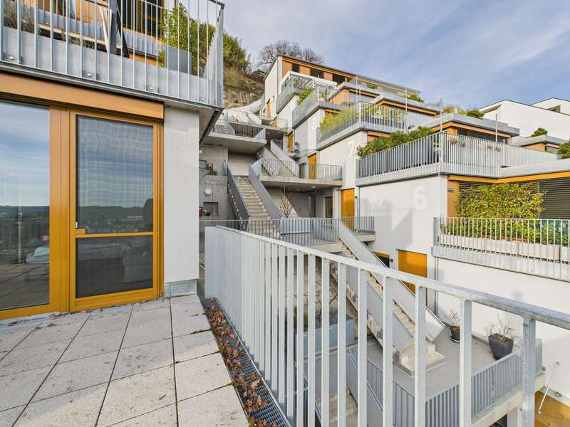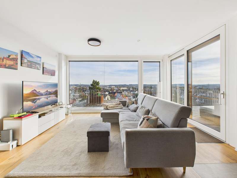In one of the most attractive residential complexes in Altdorf and Landshut, we are proud to present an apartment that you don't find every day. On the 6th floor of Rebenring 1, you will find a home that will immediately impress you with its spaciousness, high-quality fittings and exceptional quality of living. The apartment is currently still rented, but will be vacant at the beginning of the year and thus offers a rare opportunity for a property of this class. You can feel the special atmosphere as soon as you enter: lots of light, clear architecture, high-quality materials. The large wood/aluminium windows bring daylight deep into the living area and emphasize the open, harmonious feeling of space. Decentralized living room ventilation, underfloor heating and modern building services ensure a climate that is rarely found in this form. Everything looks high-quality, timeless and comfortable to live in over the long term. The centerpiece is undoubtedly the spacious roof terrace, which is divided into several areas and thus provides a little piece of quality of life every day. Whether a lounge, dining area, sunbathing spot or simply a quiet retreat above the rooftops of Landshut - this terrace opens up possibilities that are hard to find in apartments of this size. The entire complex is one of the most sought-after residential addresses in Altdorf: modern, well-kept, special and with a very pleasant neighborhood. Barrier-free access, a practical storage room, cellar compartment, two underground parking spaces and an outdoor parking space round off the offer and make the apartment a real highlight in terms of comfort. This apartment is not a standard offer. It is a high-quality, modern living space for people who value style, quality and a special residential location. A property that you don't just view - you experience. You can access the 360-degree digital tour via this link: https://tour.giraffe360.com/5df001f72a5347158bbf07f6cd981ddf