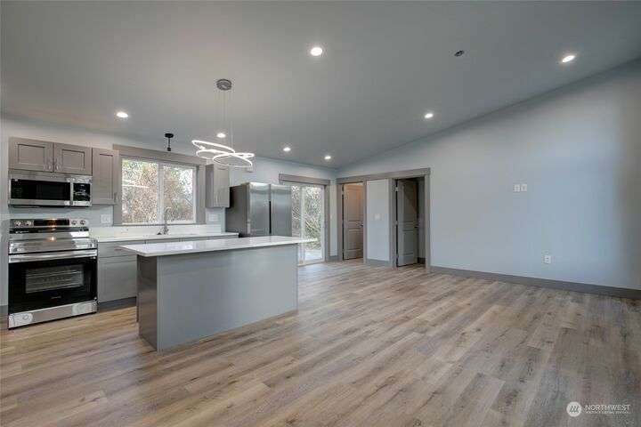 $5000.00 BUYER CREDIT Beautiful, new two-bedroom, one bath home now ready for its first owners! Cheery and inviting, 880 square feet of quality craftsmanship. Vaulted ceilings and large windows for lots of natural light! Vinyl plank flooring throughout, open concept living and ductless heat pump. Quartz countertops, stainless steel appliances, soft close cabinets and gorgeous trim work. Large laundry closet off of kitchen. Primary bedroom has walk-in closet. Covered front porch, as well as a large, covered deck and a patio off of the kitchen provide great spaces for outdoor entertaining. Close to Ocean Shores favorites such as Perkins Pond, Lake Minard, Oyhut Bay and Damon Point.
