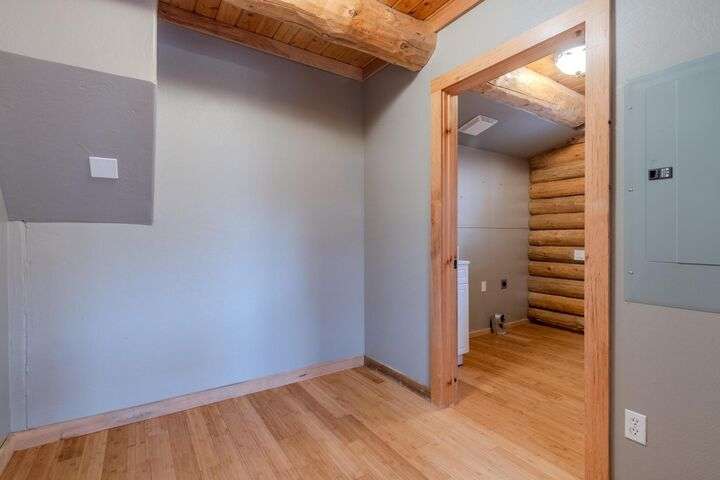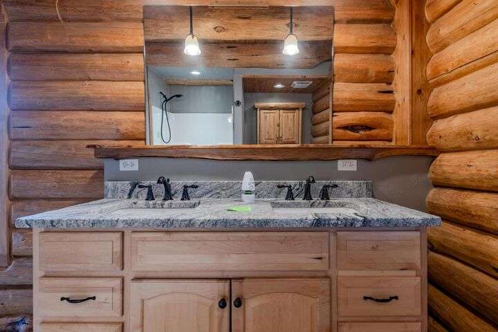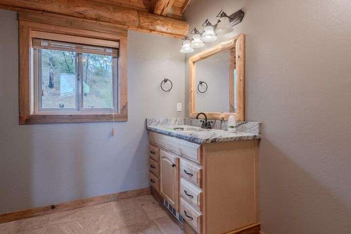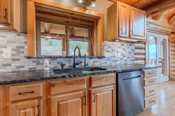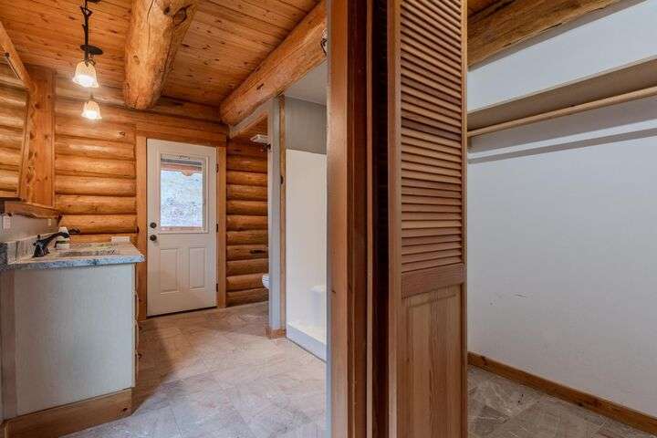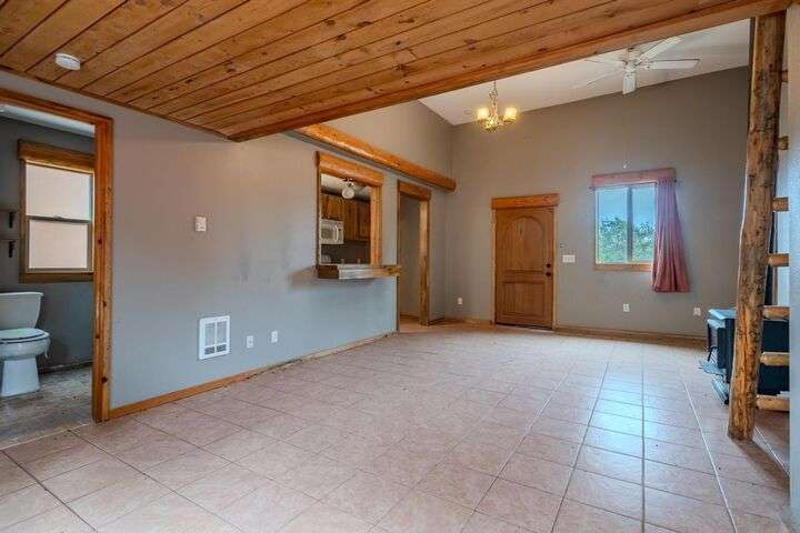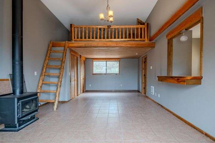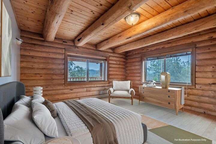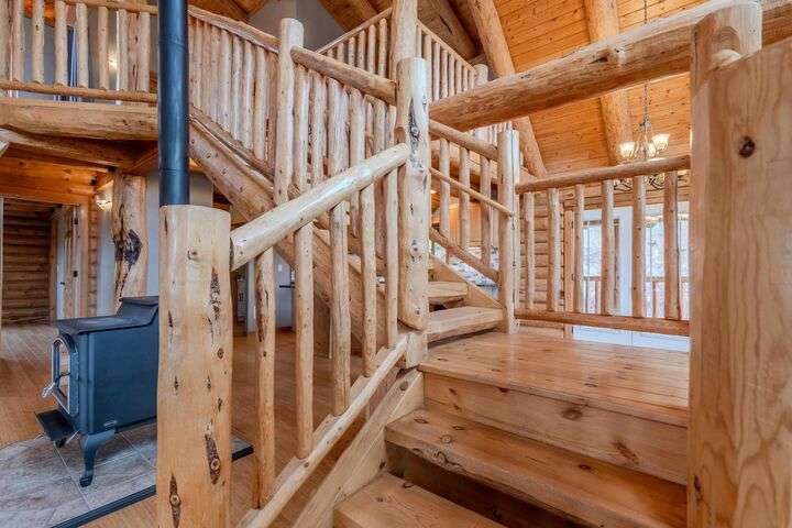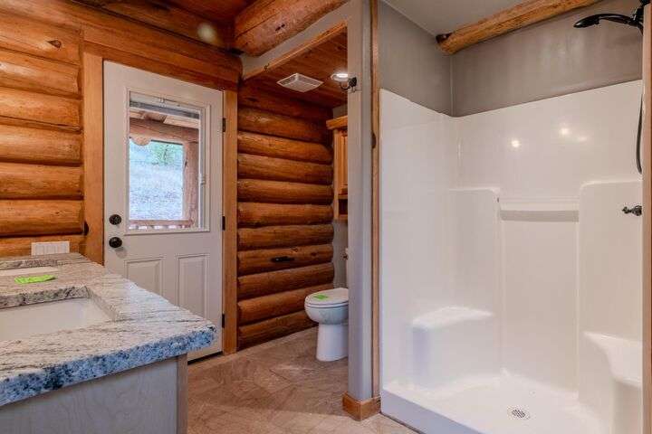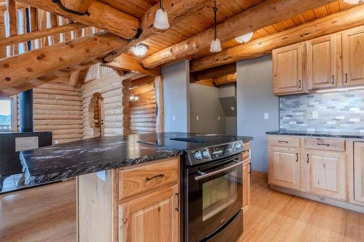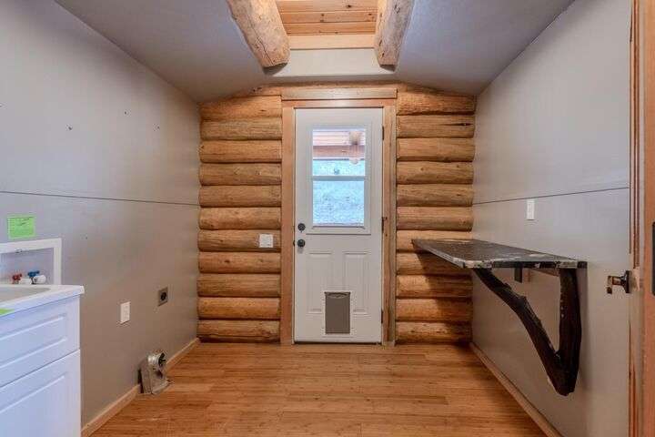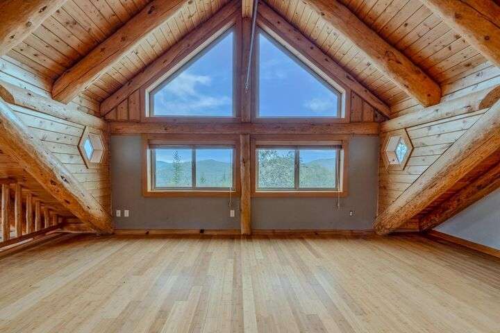 This stunning custom-built log home sits on nearly 40 timbered acres behind a gated entrance, offering the ultimate in secluded luxury living. The expansive open-beamed great room features soaring vaulted ceilings and amazing windows that frame breathtaking panoramic valley views. Cozy up to the certified wood stove on cool evenings, or enjoy your morning coffee on the wonderful, covered front or rear decks. The gourmet kitchen boasts beautiful granite countertops and a generous island perfect for entertaining, while a dedicated office area provides the ideal work-from-home space. Outside, discover endless possibilities with a large gardening area, a spacious 24x44 shop with guest quarters ideal for visitors, and ample parking. Bordering BLM land, this property provides direct access to unlimited outdoor recreation while maintaining complete privacy. Whether you're seeking a full-time retreat or weekend getaway, this exceptional log home delivers mountain living. AMAZING!