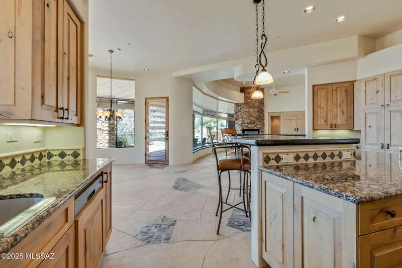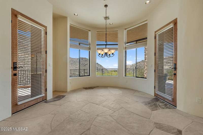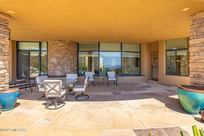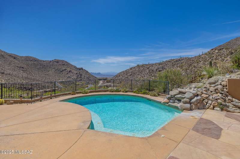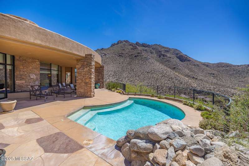 LUXURIOUS CUSTOM ESTATE designed by award-winning architect, Kevin Howard. This private estate sits high nestled against the Tortolita Mountains in the exclusive, guard gated community of Canyon Pass at Dove Mountain. Enjoy breathtaking panoramic views of the canyon, valley and mountains beyond... plus a sparkling, heated pool. Gated drive winds to a flagstone patio entrance with orbital water fountain. This 3,665 sq ft residence affords 4 bedrooms and 4 full baths plus den/office. Large gathering room greets you with soaring ceilings, wall-to-wall view windows, corner stacked stone fireplace and custom art/media center. Formal dining area with views lies off a gourmet kitchen offering large island with prep sink, granite slab countertops, stainless/black appliances, built-in workstation