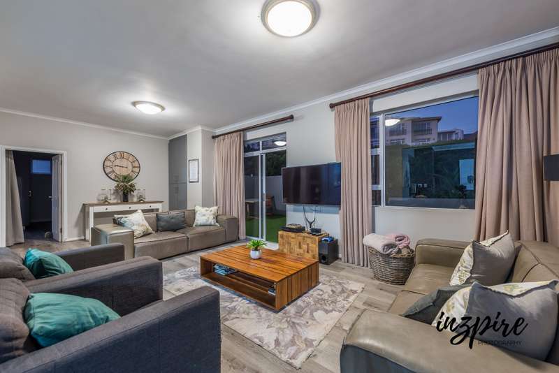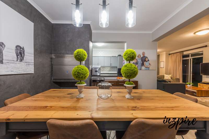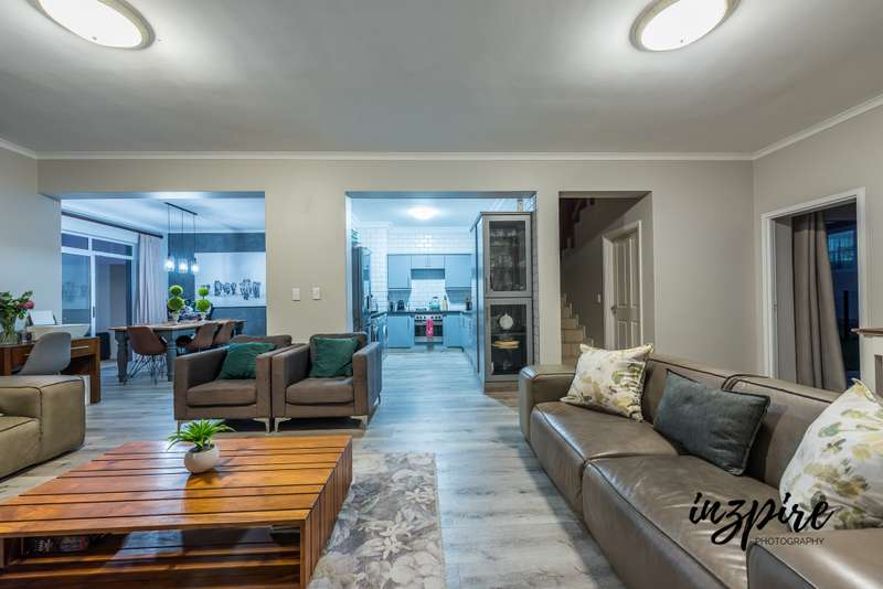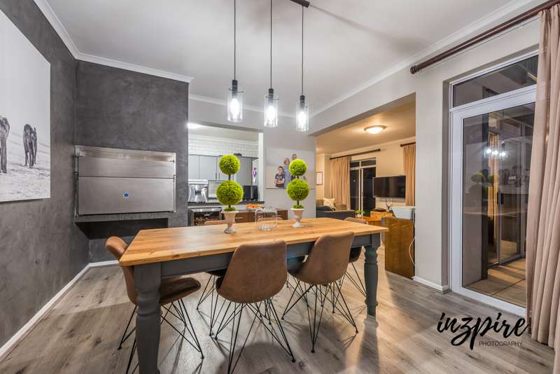 Elevated to capture endless sunshine and majestic views, the entire residence bathes in abundant light and warmth. The expansive residence sprawls across two levels, with comfortable living space within each level. The spacious living room flows into a family dining room with a standout modern light fixture and textured wall, the built-in braai/fireplace extends to a fabulous entertaining area complete with tiled patio. The gourmet kitchen is incorporated within the open-plan living and dining, and features glistening granite countertops, modern subway tiles and elegant grey cabinetry. Luxurious accommodation comprises of four generous, light-filled carpeted bedrooms inclusive of built-in wardrobes and en suite bathrooms. Offering the very best in entertaining, the front balcony showcases the impressive views, and a second area at the rear is enclosed. The grounds are immaculate, and are fully fenced with a large lawn, providing plenty for space for families with pets. The double garage provides secure housing for multiple vehicles, along with a storeroom. Additional off-street parking is provided within the driveway. Offering sophisticated style, and sun-drenched family living, coupled with sensational views and fabulous outdoor entertaining, this remarkable home in the heart of tranquil Fynbos provides an enviable quality of life at a prestigious Pinnacle Point Golf Estate address. PROPERTY FEATURES: DOWNSTAIRS: • Dining room with built-in braai/fireplace and glass sliding doors that opens to the generous patio. • Living room, spacious with extra storage. • Kitchen: - Elegant grey cabinetry - White subway tiles - Modern design and layout - Granite bench tops with adequate workspace - Laundry connections • Guest bedroom with modern light fixture, airy and bright king size bedroom, build in cupboards and en suite bathroom with vanity, toilet and shower. • Guest bathroom with toilet and vanity. • Access through quest bedroom to fenced in garden. • Storeroom with access from the garden. UPSTAIRS: • Master bedroom with airy and bright king size bedroom, build in cupboards and full en suite bathroom with vanity, bath and shower. • Two additional en suite bedrooms with build in cupboards. Large windows to enjoy a beautiful view. SPECIAL FEATURES: - Street access to the double garage. - One automated garage door, one manual. - 600w Inverter included. - Courtyard with instant lawn. - Remarkable light fixtures. - Ample parking. - Storeroom. ESTATE FEATURES: • 24 hour security including CCTV cameras and guard house. • Award winning golf course and restaurant. • La Vita Spa – indoor heated swimming pool, jacuzzi, sauna, beauty and nail salon with hair studio. • Gym, tennis court and driving range.